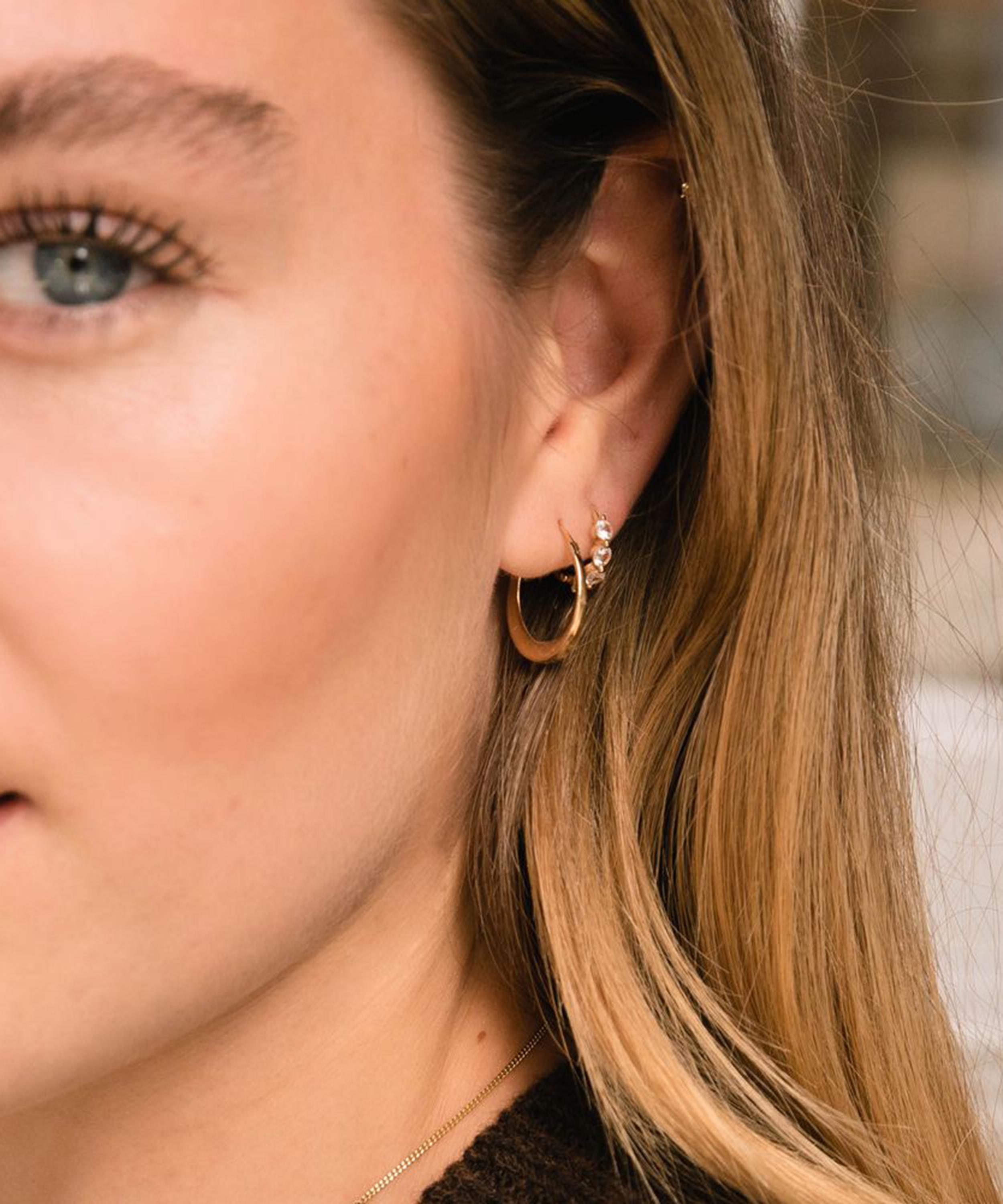 Capturing the true essence of Dinny Hall's design philosophy, every piece in the Signature collection embodies a fusion of sculptural simplicity, timelessness and quiet luxury. Characterised by a slim, tapering silhouette, each of these small click hoop earrings is handcrafted from recycled 9 carat gold - a strong, demi-fine metal that is 41.7% pure gold and will never scratch or lose its colour when handled with care. Designed to slot seamlessly into your existing jewellery collection, try layering them with several larger hoops for a sleek, graduated effect.