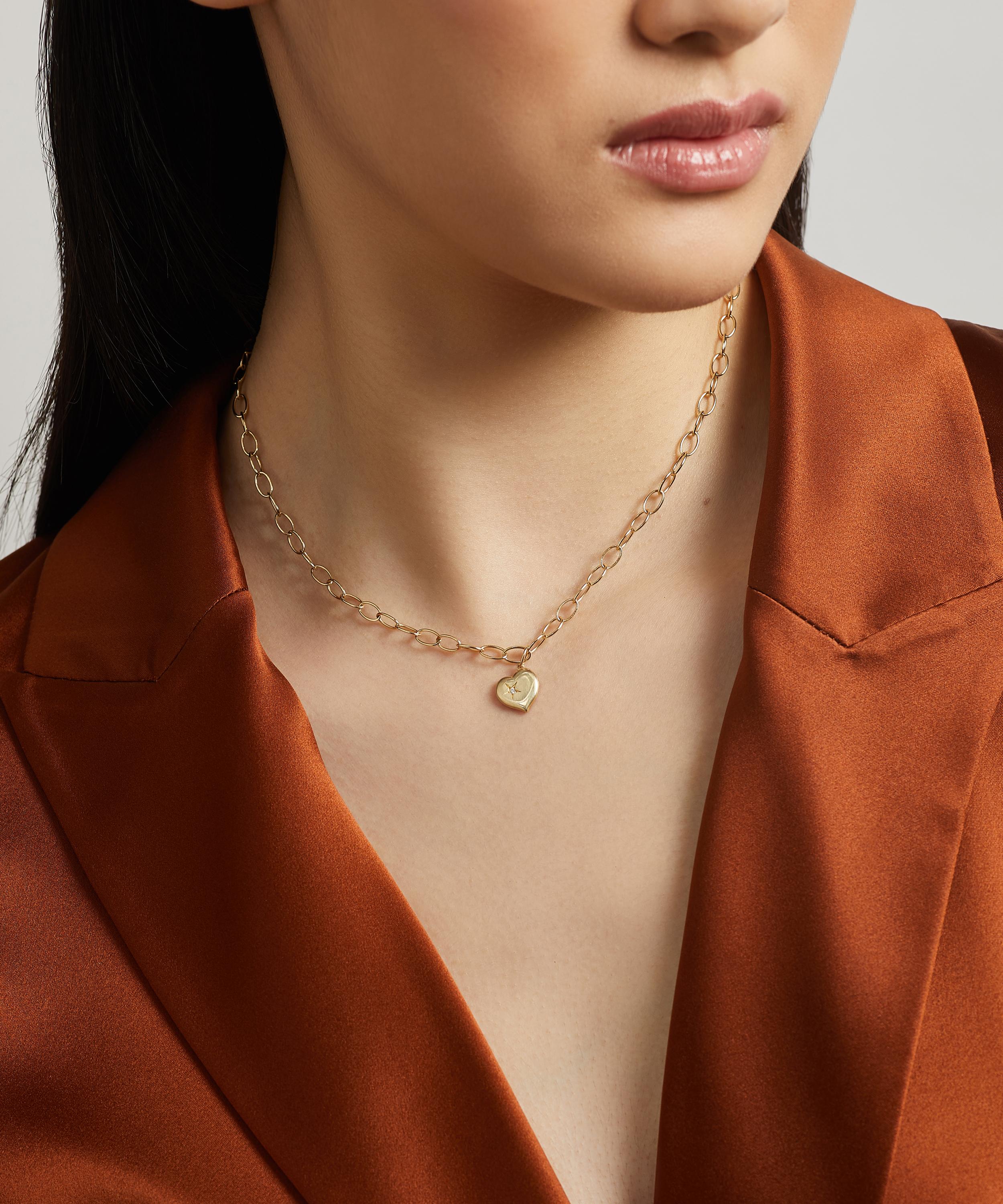 Perfect for gifting, spread the love and treat someone you care about, or yourself, to this pendant charm from Liberty. Offering endless styling options, this pendant is crafted from 9ct solid gold, featuring a heart-shaped charm adorned with a star-set diamond. Complete with a delicate bail clasp, pair it with one of our enchanting chains for a charming and simple edit.