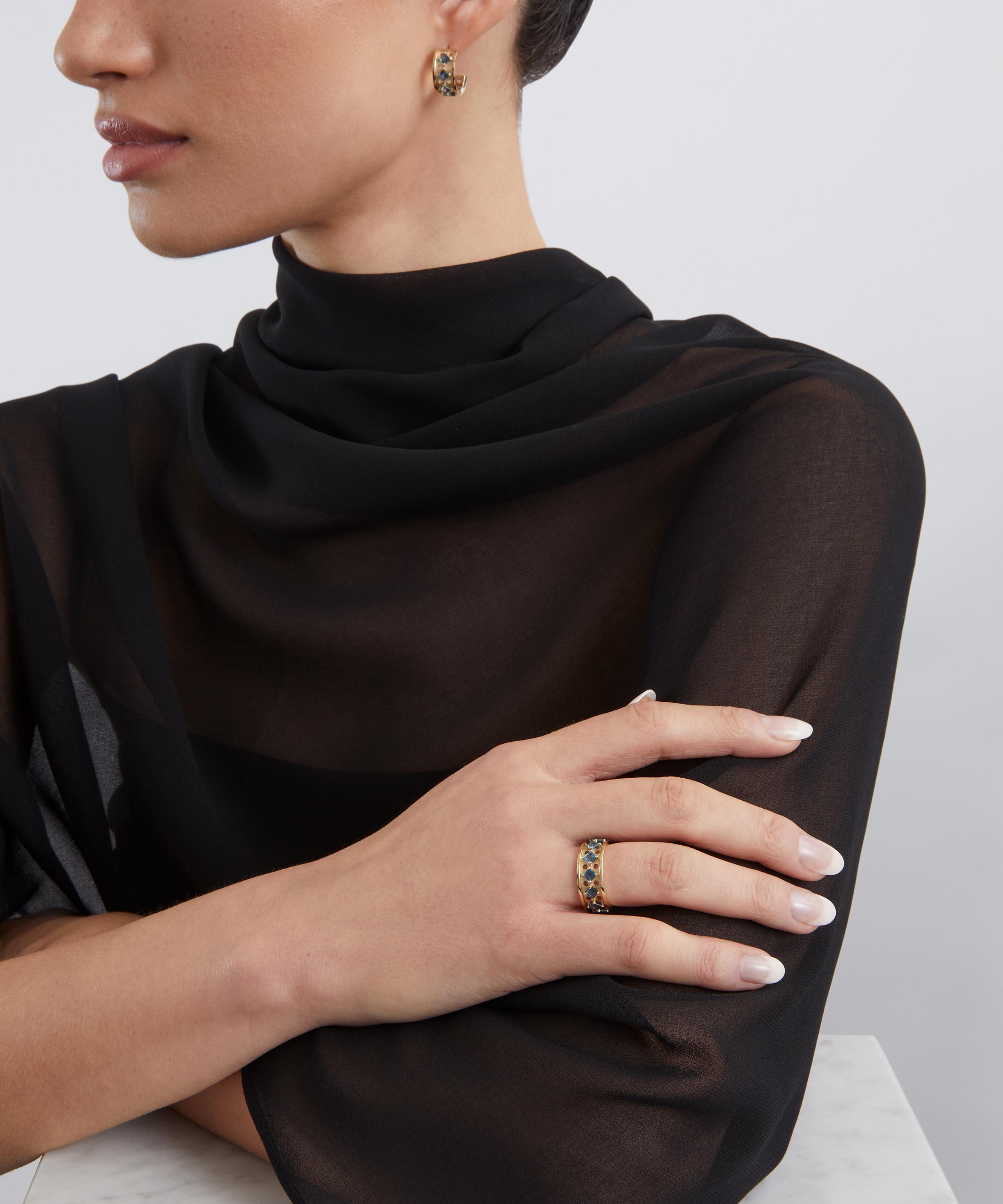 Handmade in Italy from solid 9ct gold, jewel-toned blue topaz stones are intricately set among ornate cut-out detailing – echoing the craftmanship and romance of vintage hand-worked trims. Timeless yet contemporary, this versatile design moves effortlessly between everyday wear and special occasions. An heirloom in the making, pair it with the coordinating Trims Blue Topaz Hoop Earrings or mix and match with the other rings in the collection for added impact.