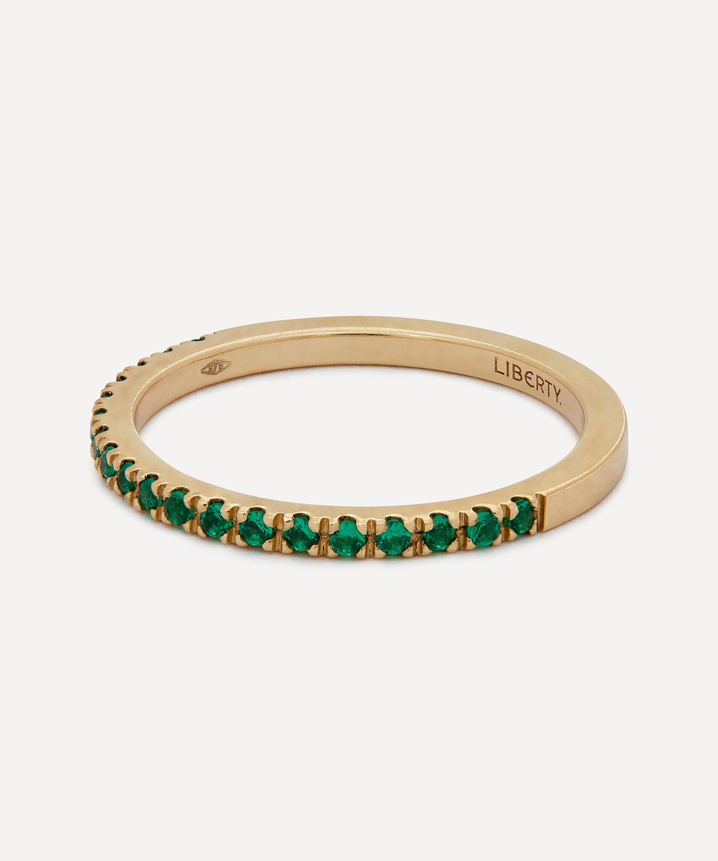 Elevate your everyday jewellery curation with the Rainbow ring from Liberty, beautifully crafted by hand in Italy from 9 carat gold and set with glittering lab-grown tsavorite stones.