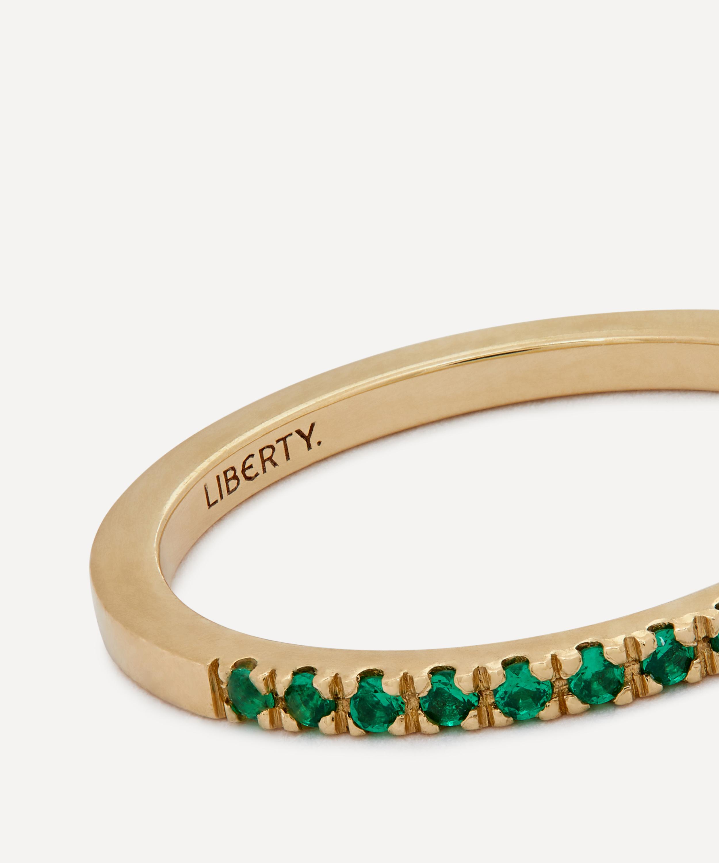 Encrusted around the band with vibrant lab-grown tsavorite stones, this versatile ring features a high-polish finish and is engraved on the inside with our branded Liberty logo. Each ring is made in a small batch, crafted by hand in Italy – a modern heirloom that pays tribute to Liberty’s collector spirit.