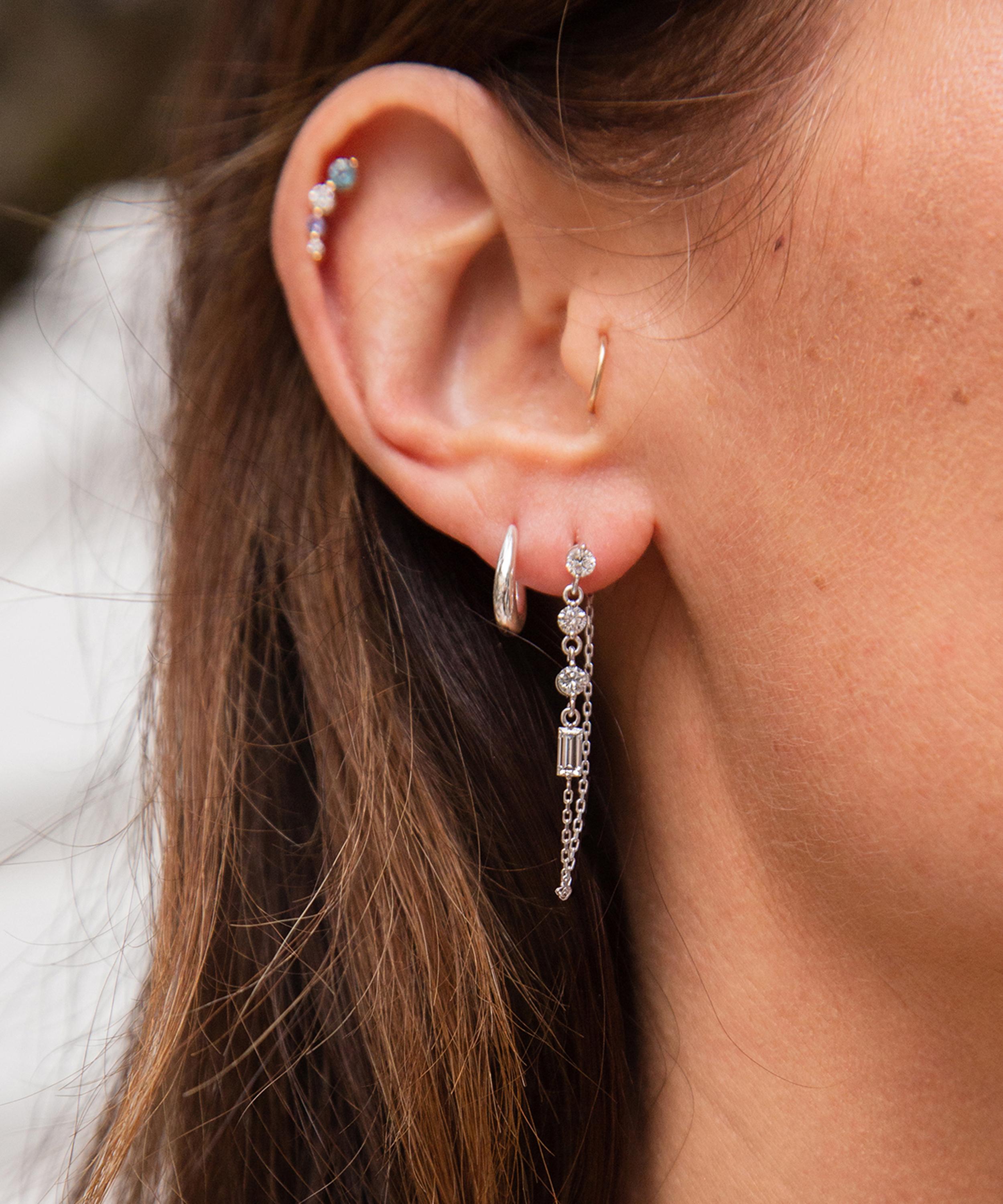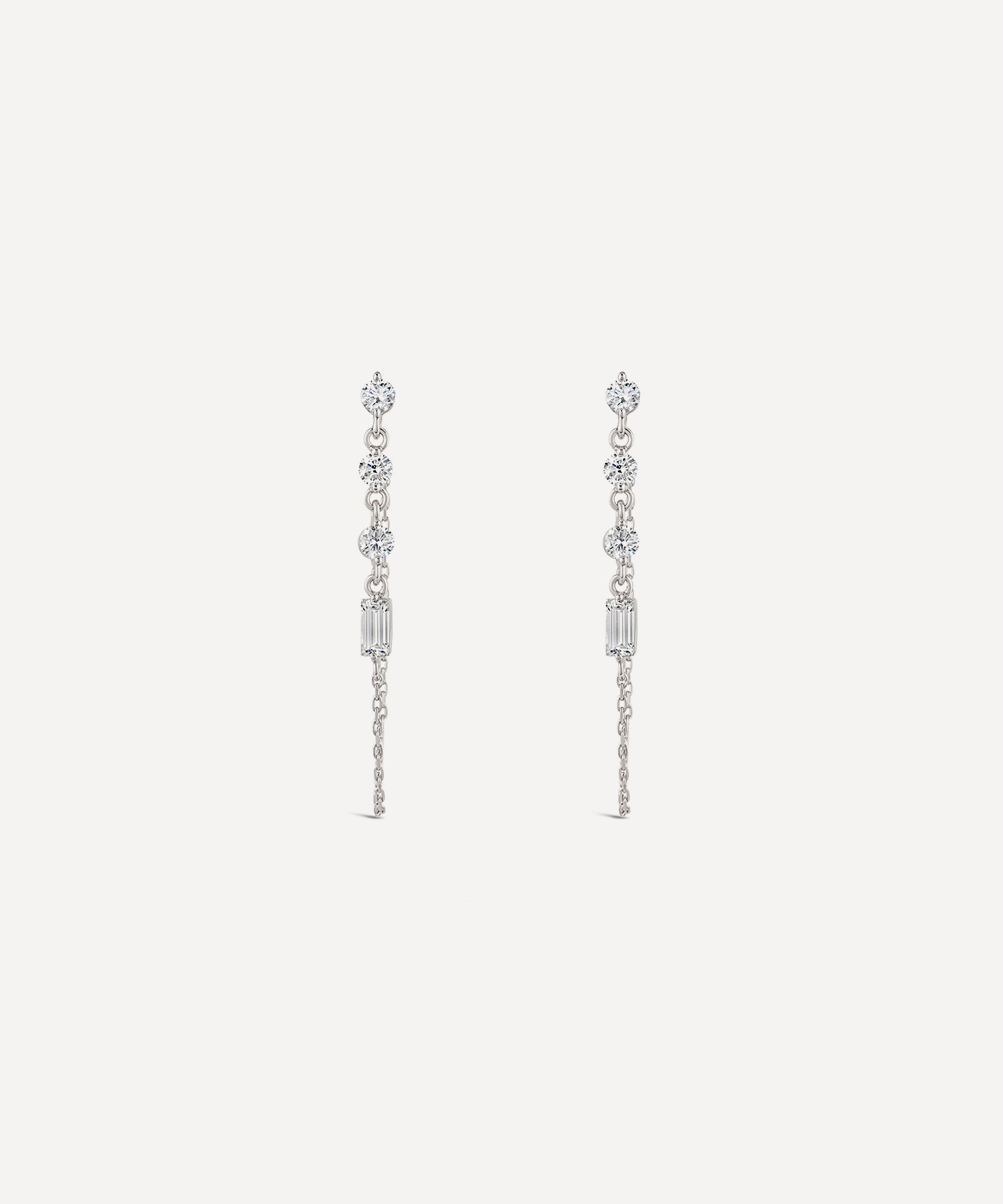A play on the rhyme 'sugar and spice and all things nice', every piece in Dinny Hall's Shuga collection is dusted with a sprinkling of precious diamonds, coloured gems, or lustrous pearls. Crafted from solid 9ct white gold, these earrings feature a delicate chain drop adorned with mix-cut white created diamonds. Gift them to a loved one as a thoughtful keepsake or incorporate this pair into your own everyday stack.