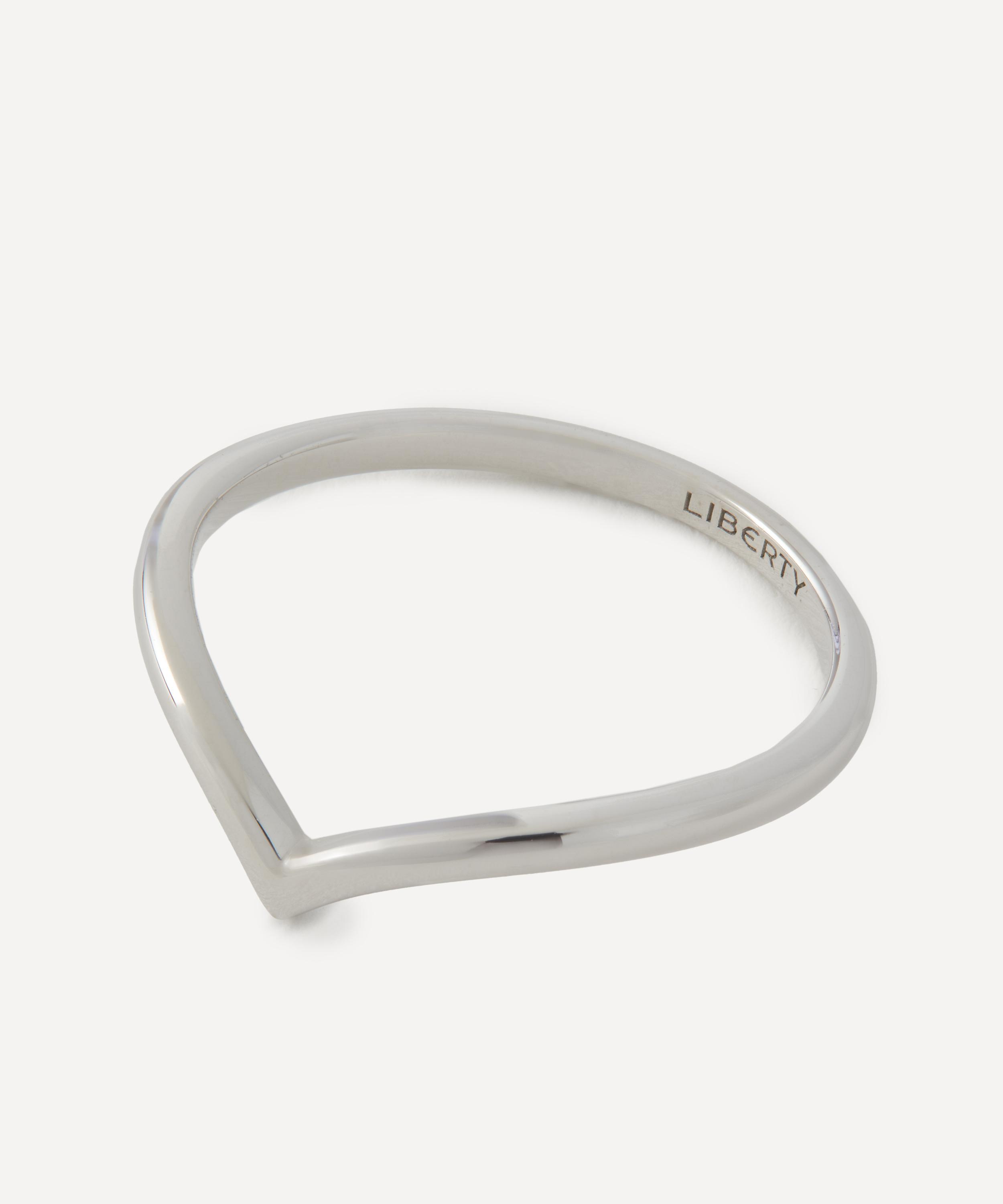 Exquisitely crafted from solid 9ct white gold, this striking piece features a linear, V-shaped silhouette in a polished finish that offers an endless array of styling options. A modern heirloom that pays tribute to Liberty’s collector spirit, it can be worn alone as an understated addition to your everyday line-up or stacked with your chosen Liberty rings for a fully personalised curation.
