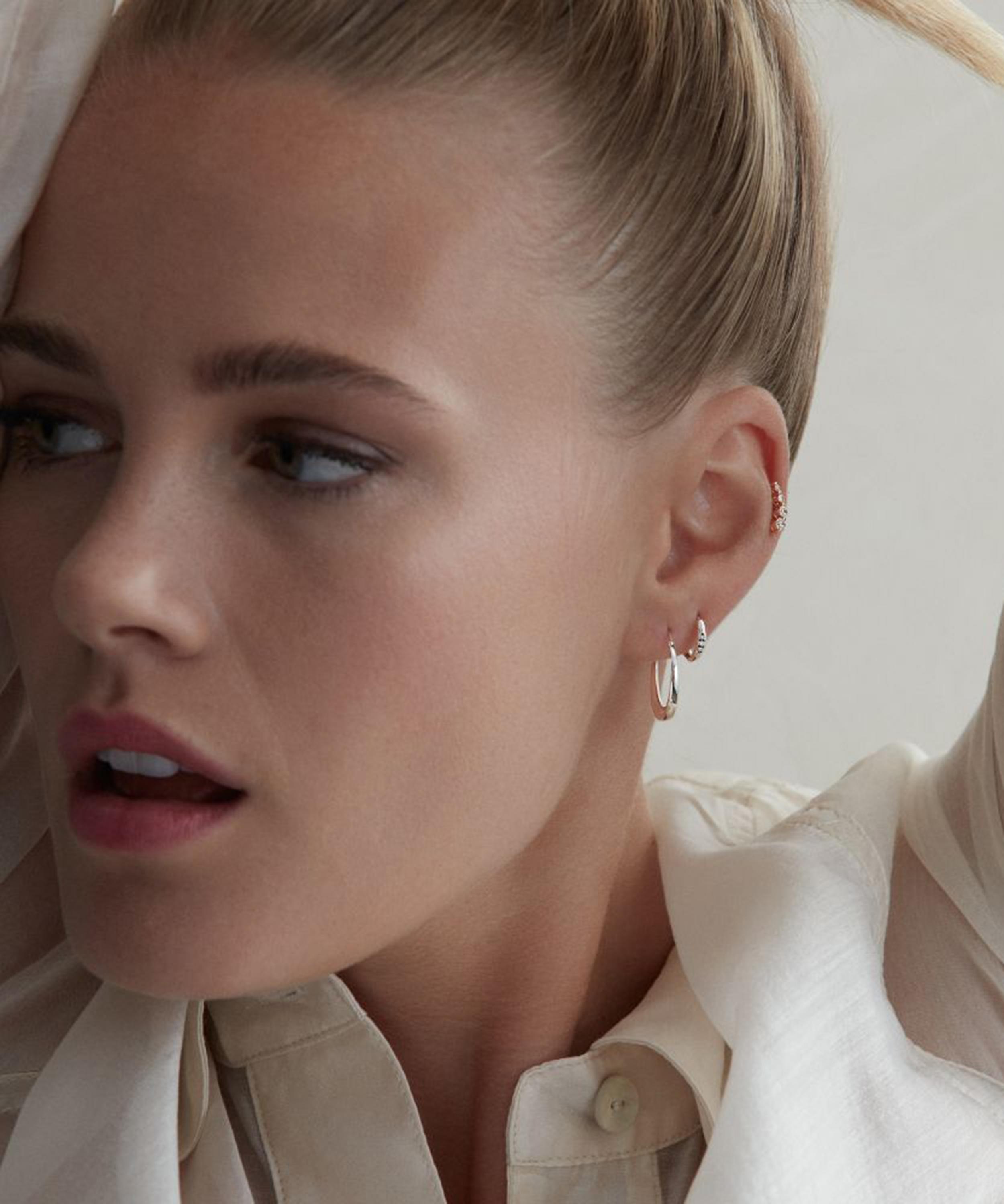 Handmade in solid 9ct white gold, each hoop features a sleek silhouette defined by a perfectly weighted tapering circle in a polished finish. Effortlessly blending refinement and wearability, they’re the perfect jewellery box staple, ideal for elevating any look, day or night.