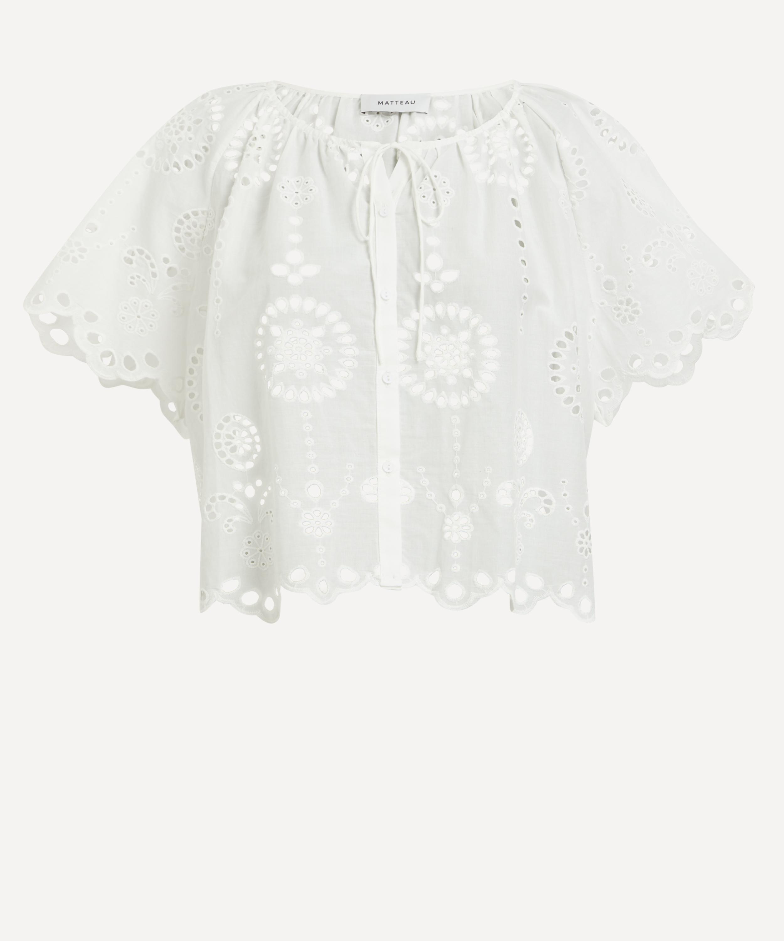 Simple and considered, the Broderie Blouse from Matteau delivers the perfect blend of relaxed elegance.