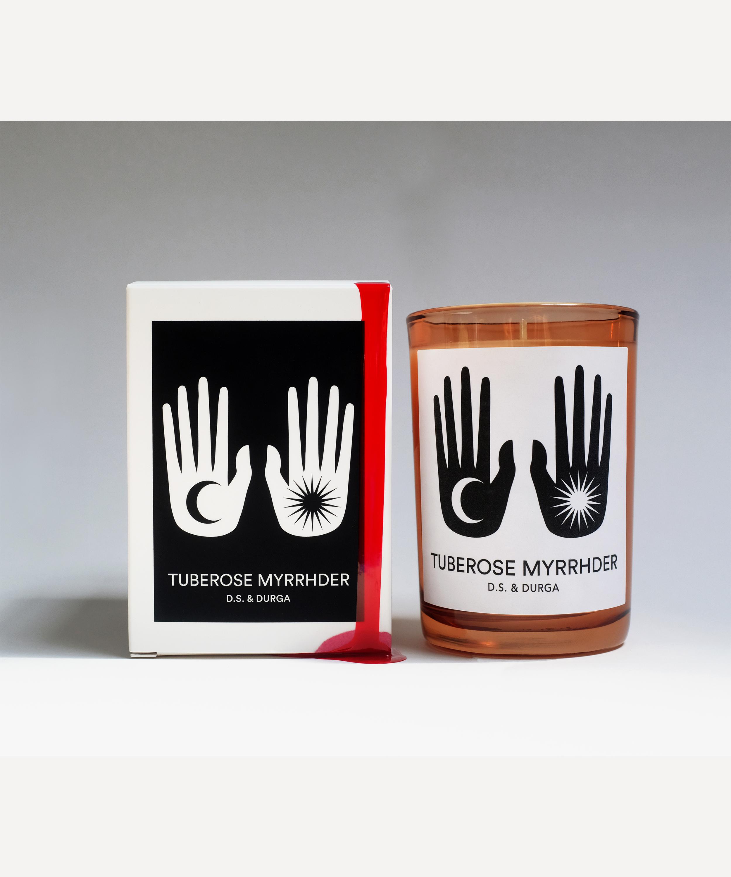 D.S. & Durga's Tuberose Myrrhder scented candle is a sensual fantasy, extracted from shadowy tuberose and spiced with myrrh for an intimate, earthy, floral fragrance.