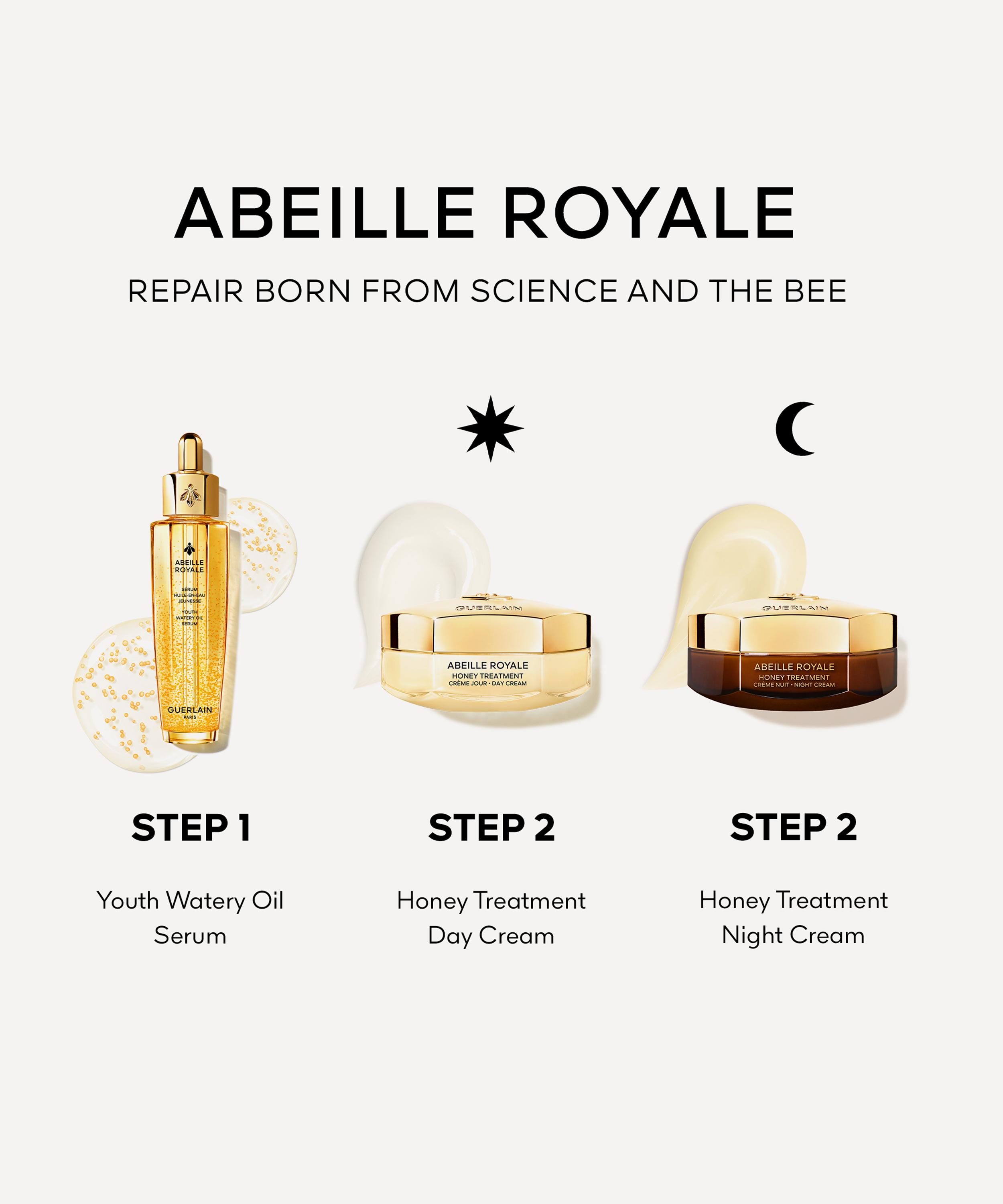 - Includes: Abeille Royale Youth Watery Oil Serum 50ml, Abeille Royale Honey Treatment Day Cream 15ml, and Abeille Royale Honey Treatment Night Cream 15ml