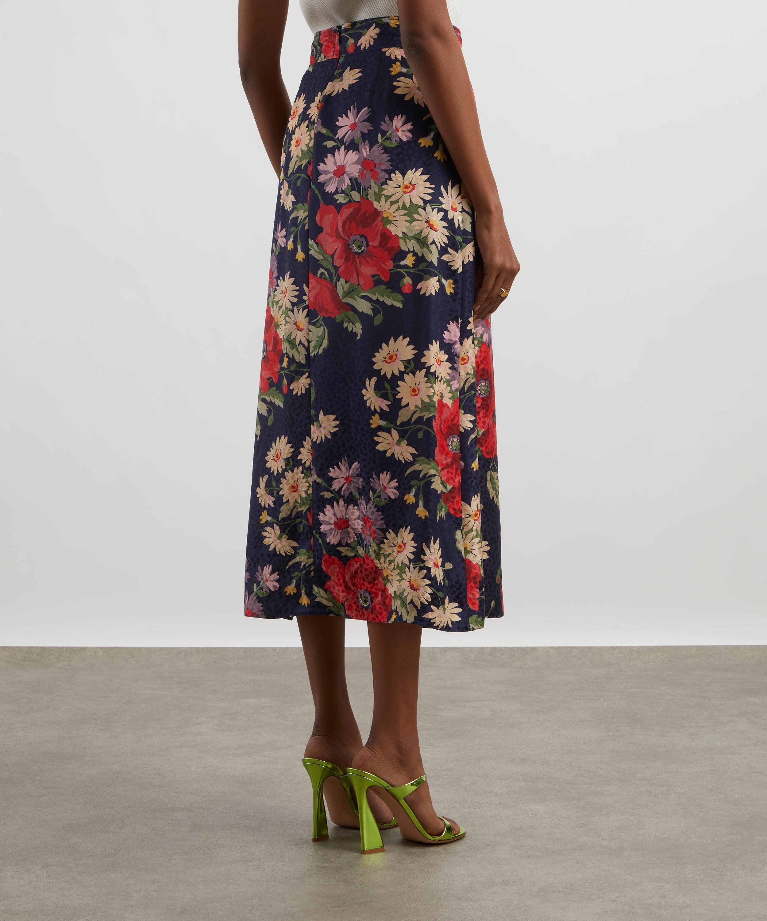Cut from Taunton Jacquard silk, this A-line skirt is tailored to fit and flatter all body shapes with its clean, contemporary design and faux wrap detail at the front. Elegant and easy to wear, its sleek fabrication lends this skirt a beautiful drape that enhances the garment’s sweeping midi length. Adorned with our beautiful Abelia Bouquet print, it’s made to be matched with a coordinating Liberty shirt.