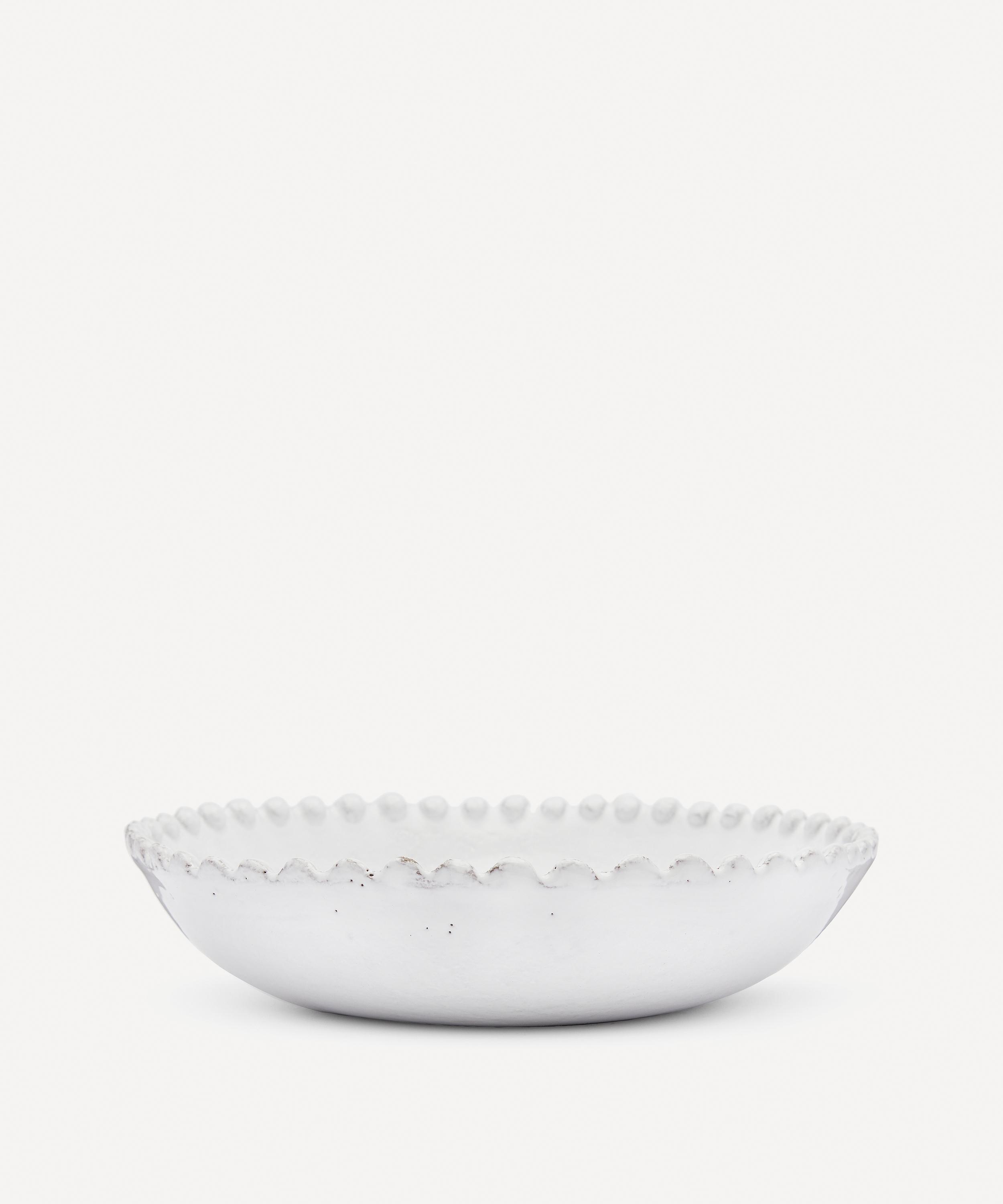 Votary of pre-industrial fabrication, Astier de Villatte is celebrated for being the one and only studio in Paris to hold and harbour the traditions of artisanal ceramic production. Restoring the ancestral systems of moulding and stamping, the Adélaïde soup bowl is made using handcrafting techniques from the Middle Ages which involve moulding a handmade sheet of clay, double firing the ‘biscuit’ piece and glazing the product in white enamel – a lengthy process that involves a drying time of up to one month. Characterised by subtle indentations and a knobbly rim, the soup bowl is engraved with the brand’s signature crest - depicting an interlacing A & V - alongside the initials of one of the 40 master artisans who created it. Each handmade piece tells a beautiful story, it romances and imparts a sense of nostalgia into its owner. Arrange with other glazed bowls and plates in the collection to breathe an air of authenticity into your dining collection.