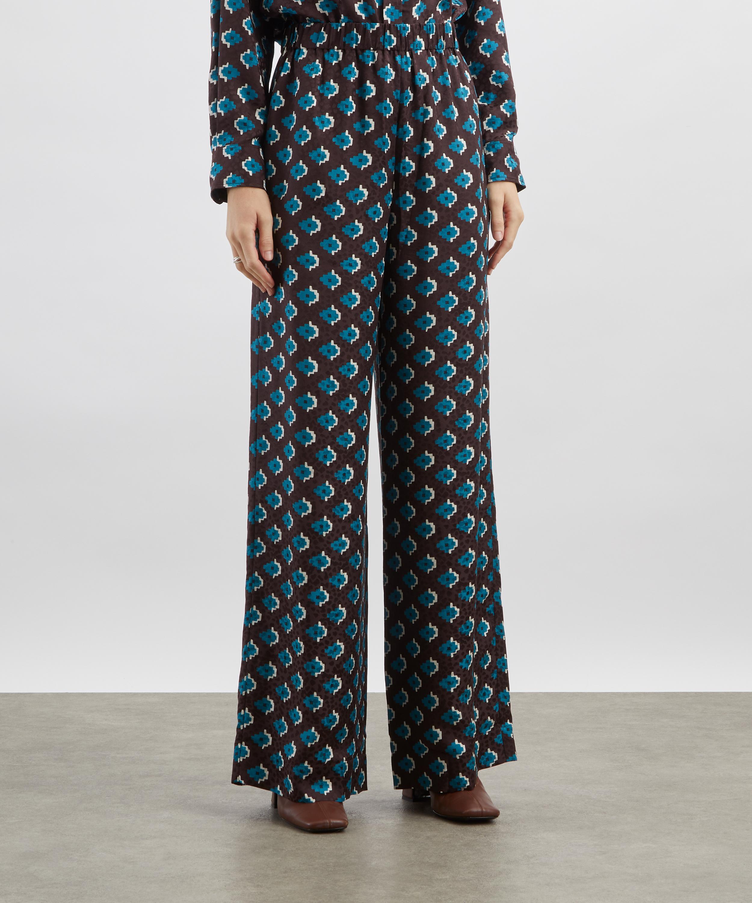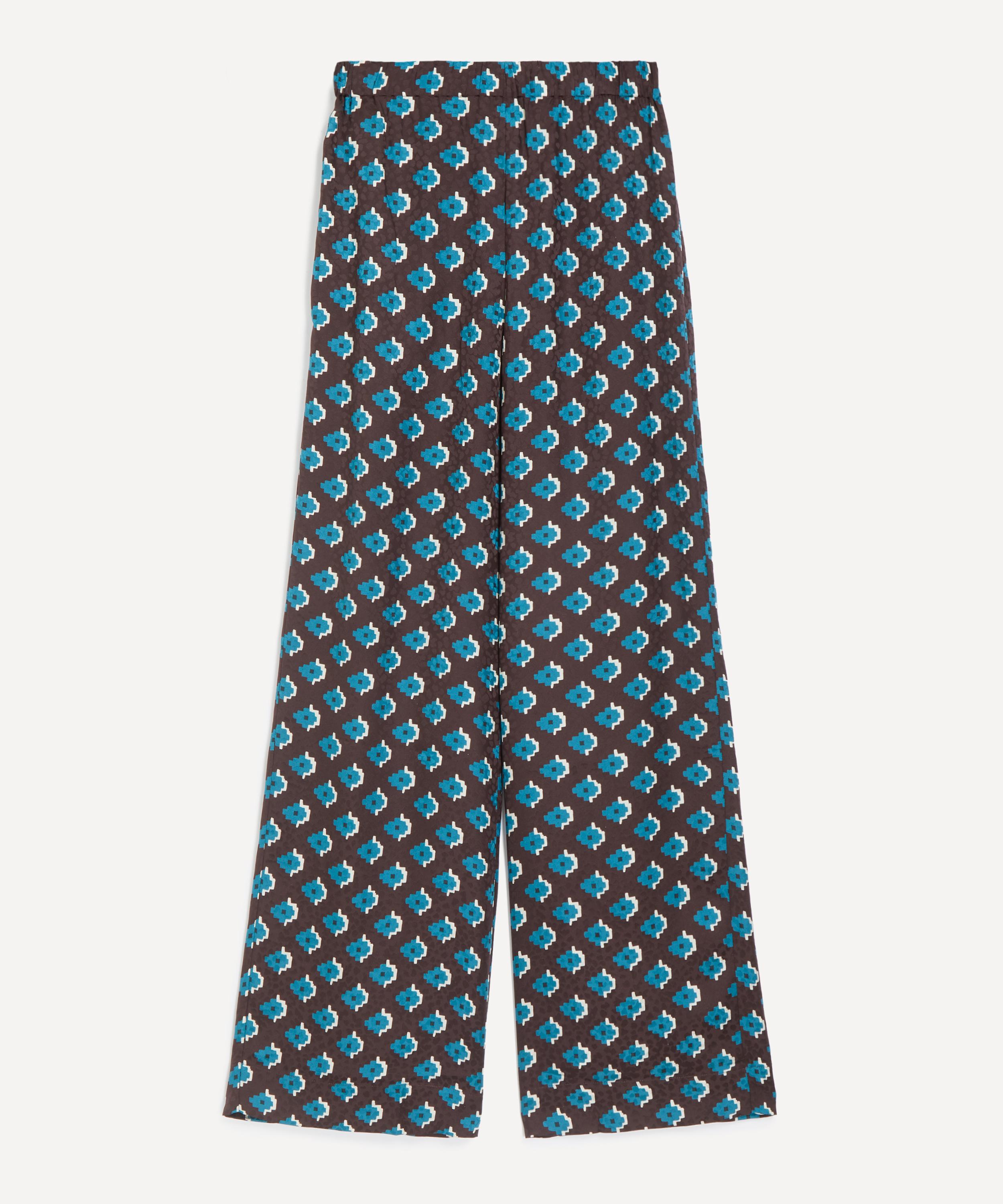Crafted from fluid silk jacquard, the Adamas Palazzo Trousers feature a breezy wide-leg silhouette that drapes beautifully and flatters the form. A gathered waistband and discreet side seam pockets enhance their effortless ease - perfectly paired with the matching Relaxed Shirt for a polished ensemble.