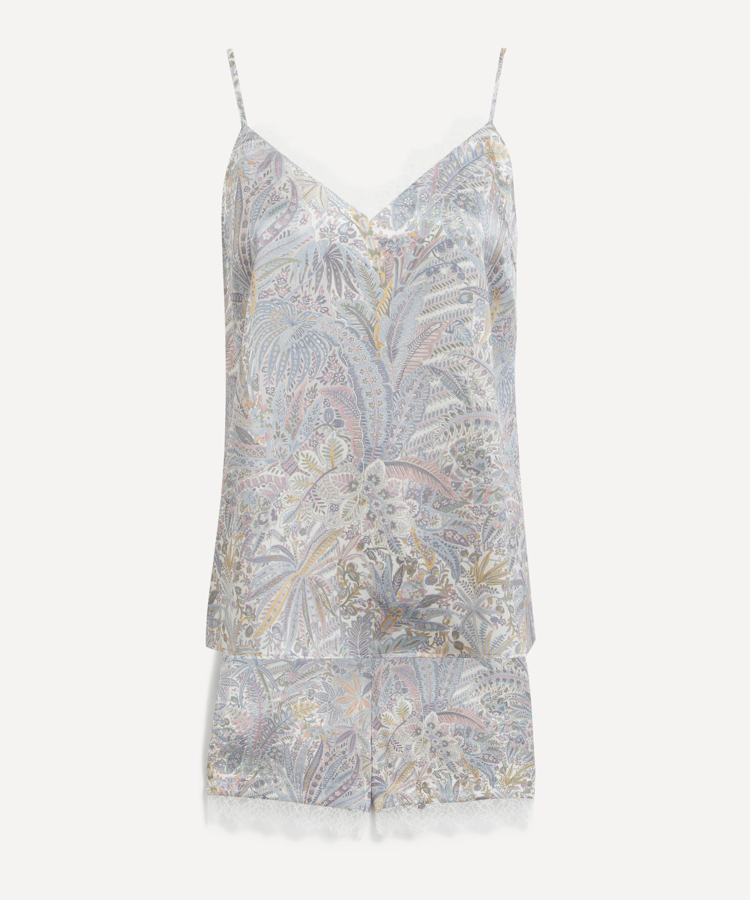 Gracefully tailored in silk-satin, Liberty’s lace-trimmed Adelphi Voyage Cami Set redefines loungewear with timeless elegance.