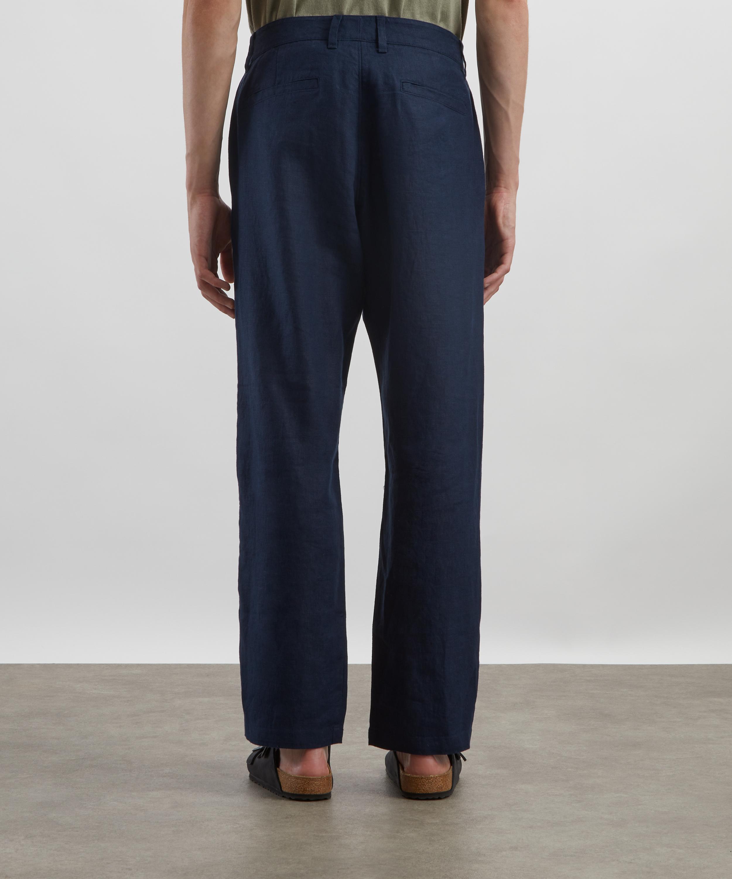 Copenhagen-based label NN07 reinterprets classic tailoring with a modern edge in the Aden Straight-Leg Linen Trousers.