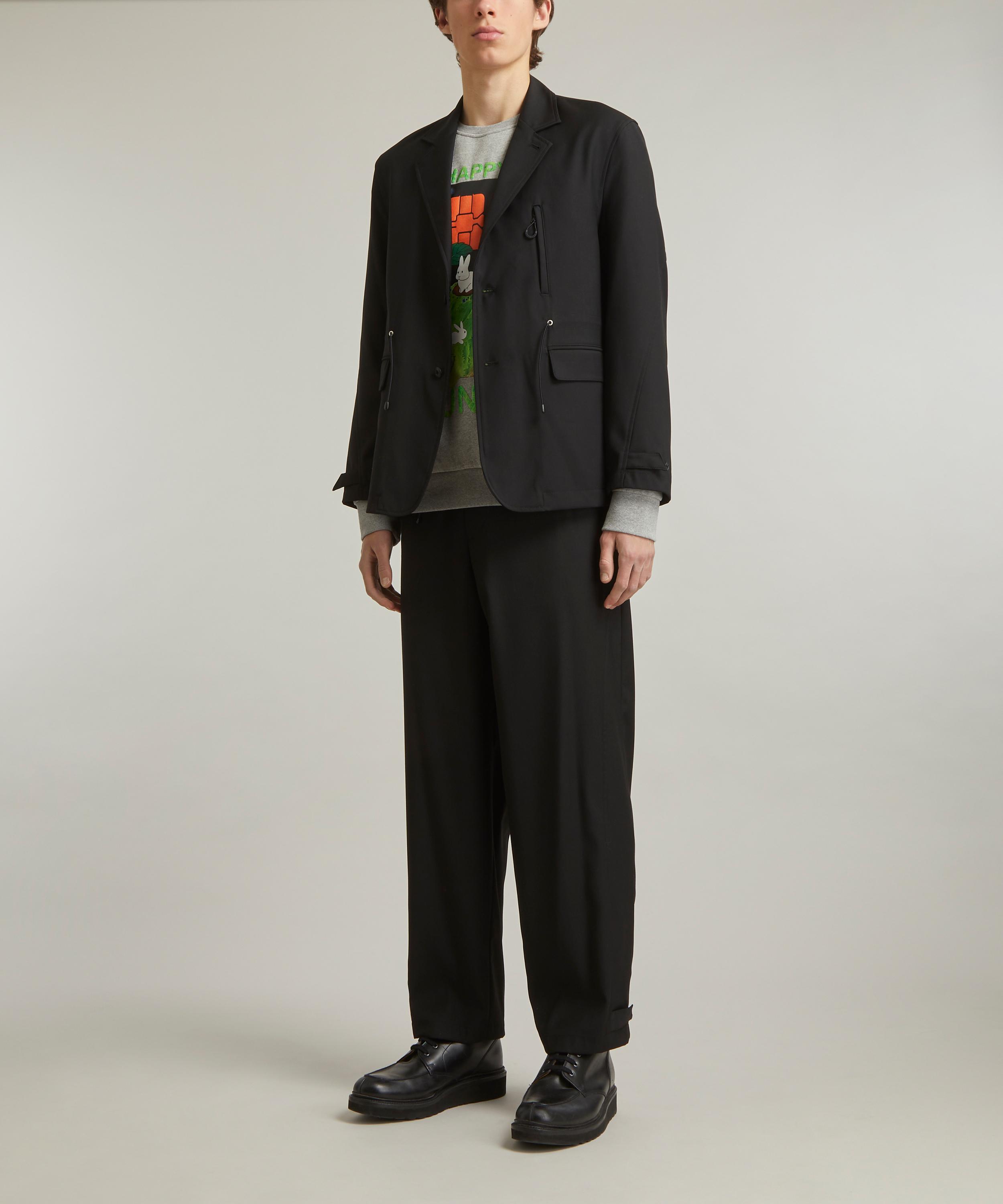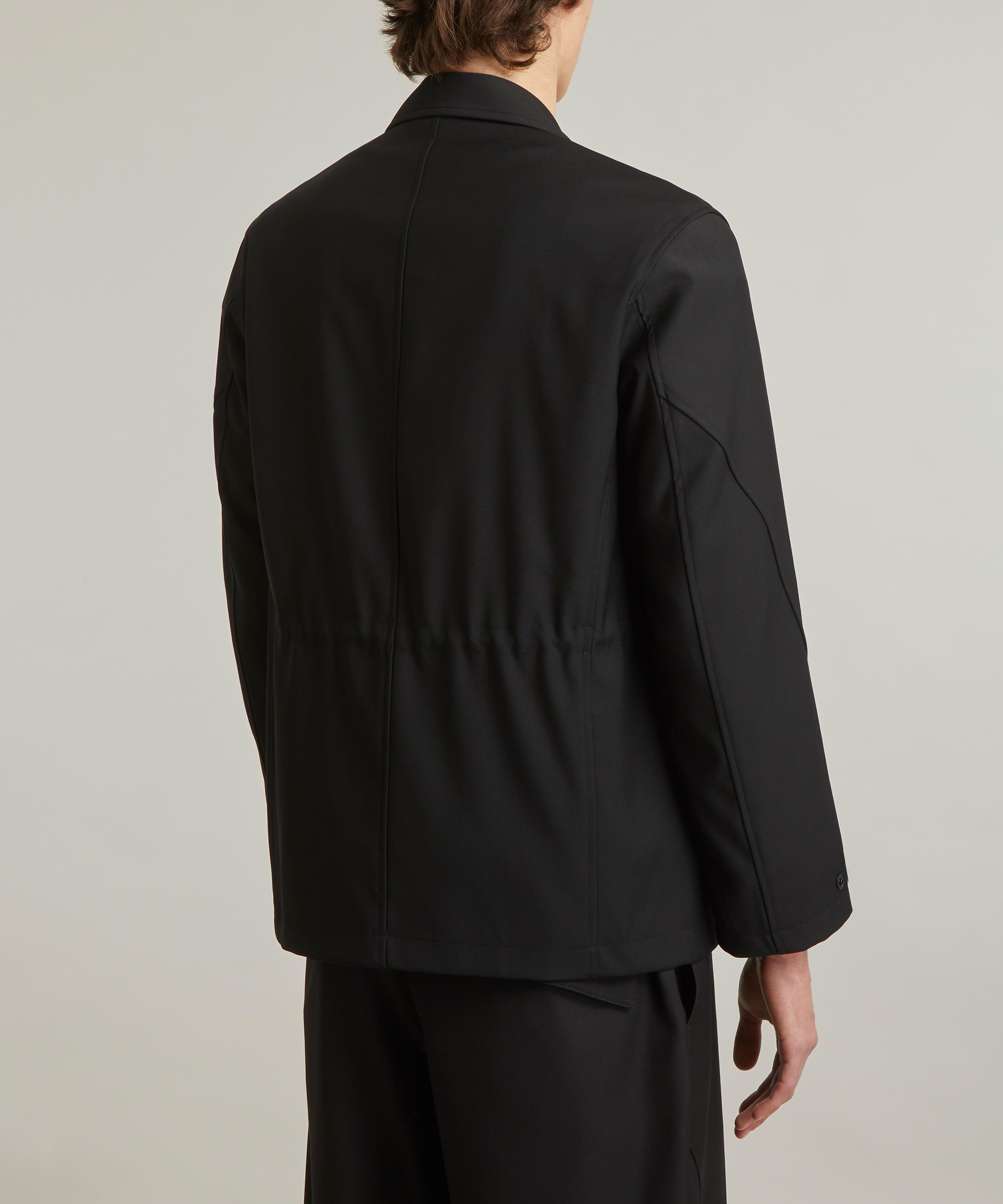An elevated take on classic military uniforms with its elasticated drawstring waist, and its multiple zip and flap pockets, this tailored jacket maintains a level of formality with its notched lapel, button closure and full satin lining.