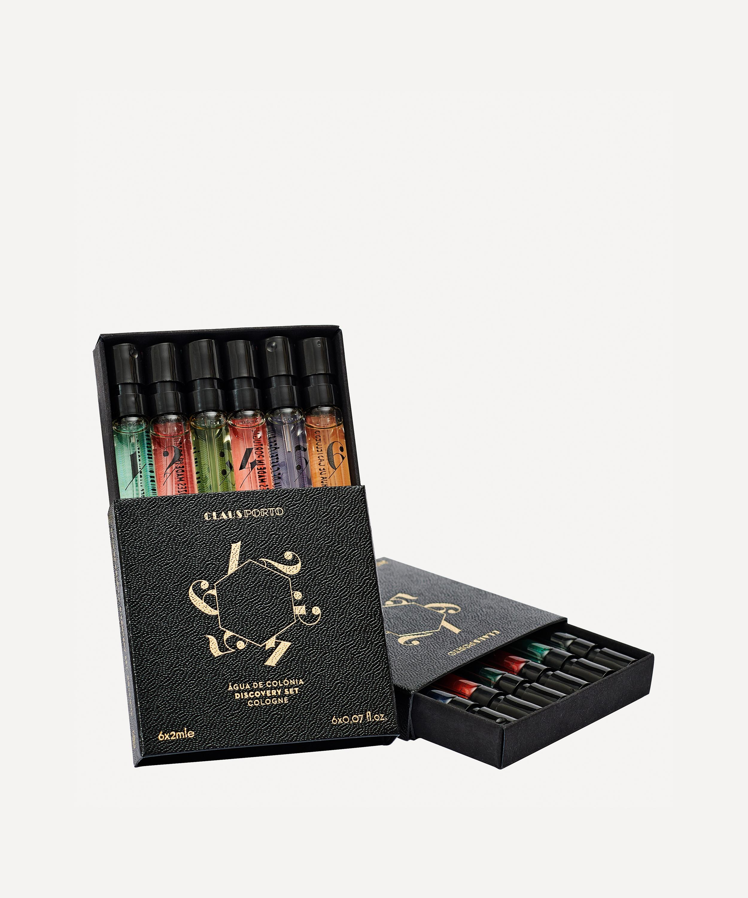 - Fragrance discovery set contains: Agua de Colonia Vetiver 2ml, Agua de Colonia Geranium 2ml, Agua de Colonia Fougère 2ml, Agua de Colonia Clementina 2ml, Agua de Colonia Porto 2ml, Agua de Colonia Flores 2ml