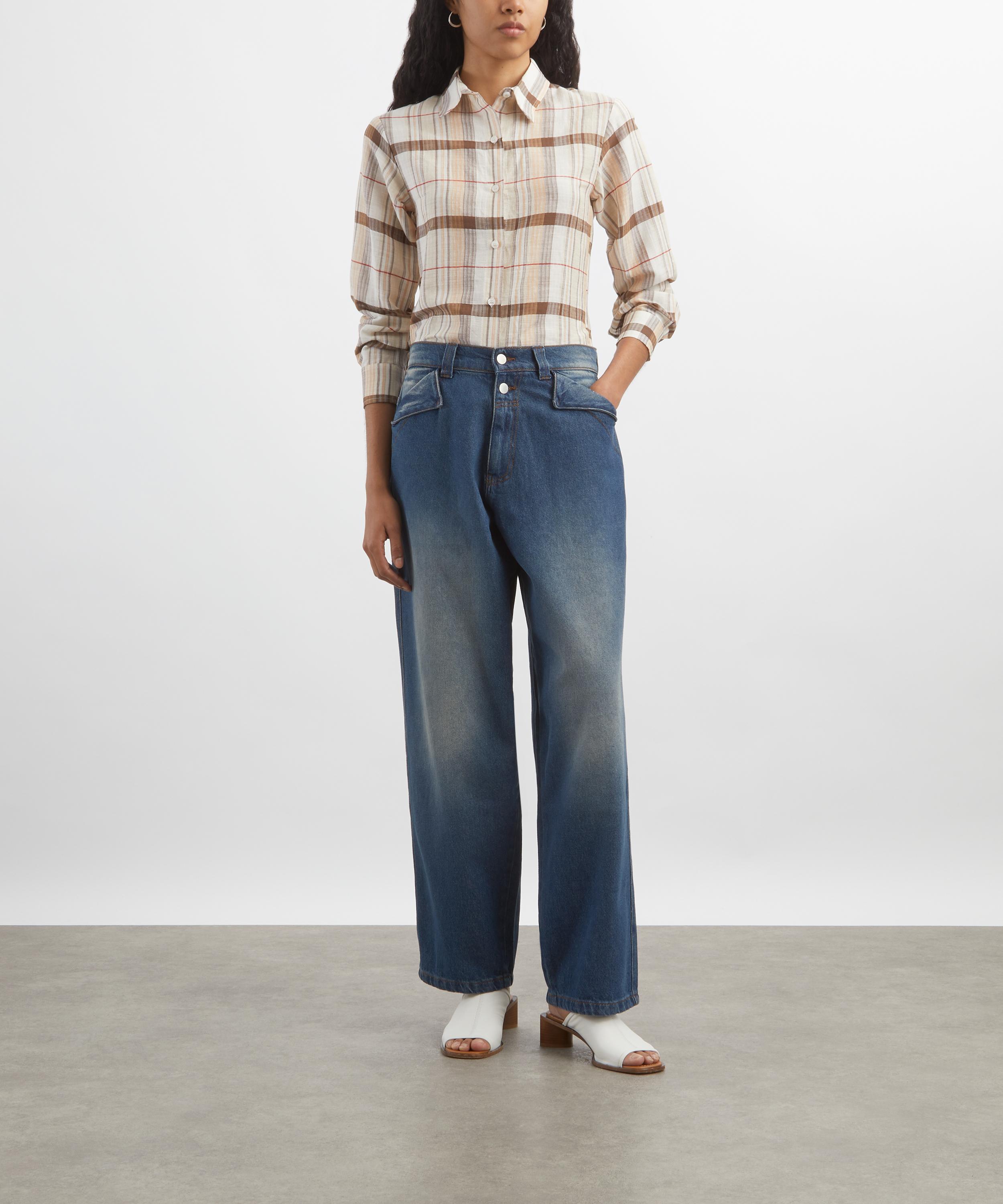 Crafted from cotton adorned with a brown check, this shirt is cut to a fitted silhouette complete with a classic collar, long sleeves, and a button fastening.