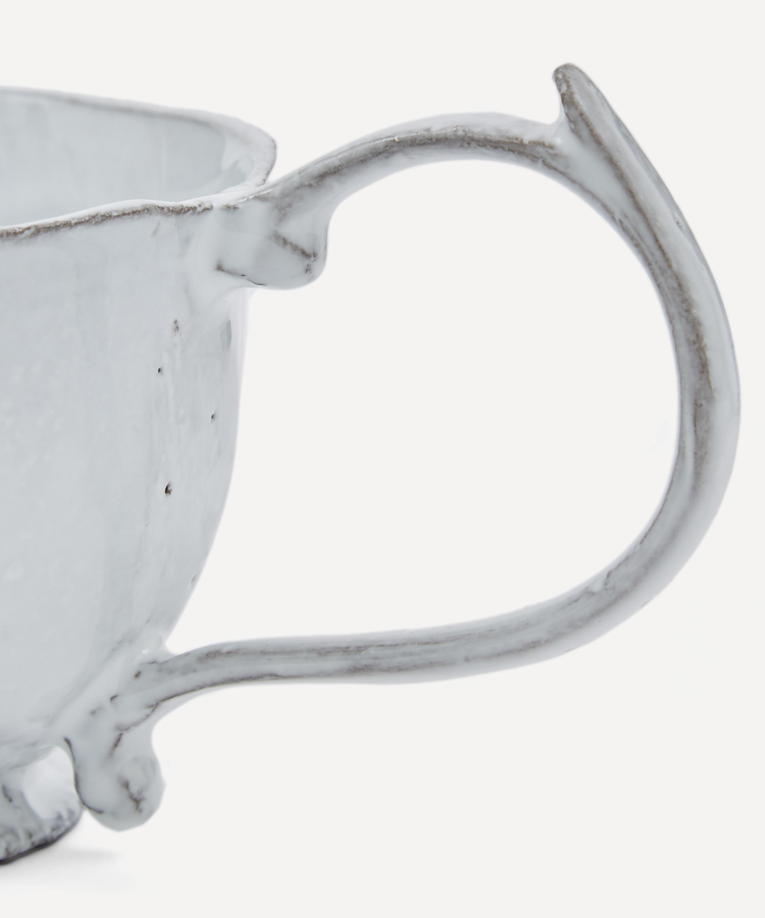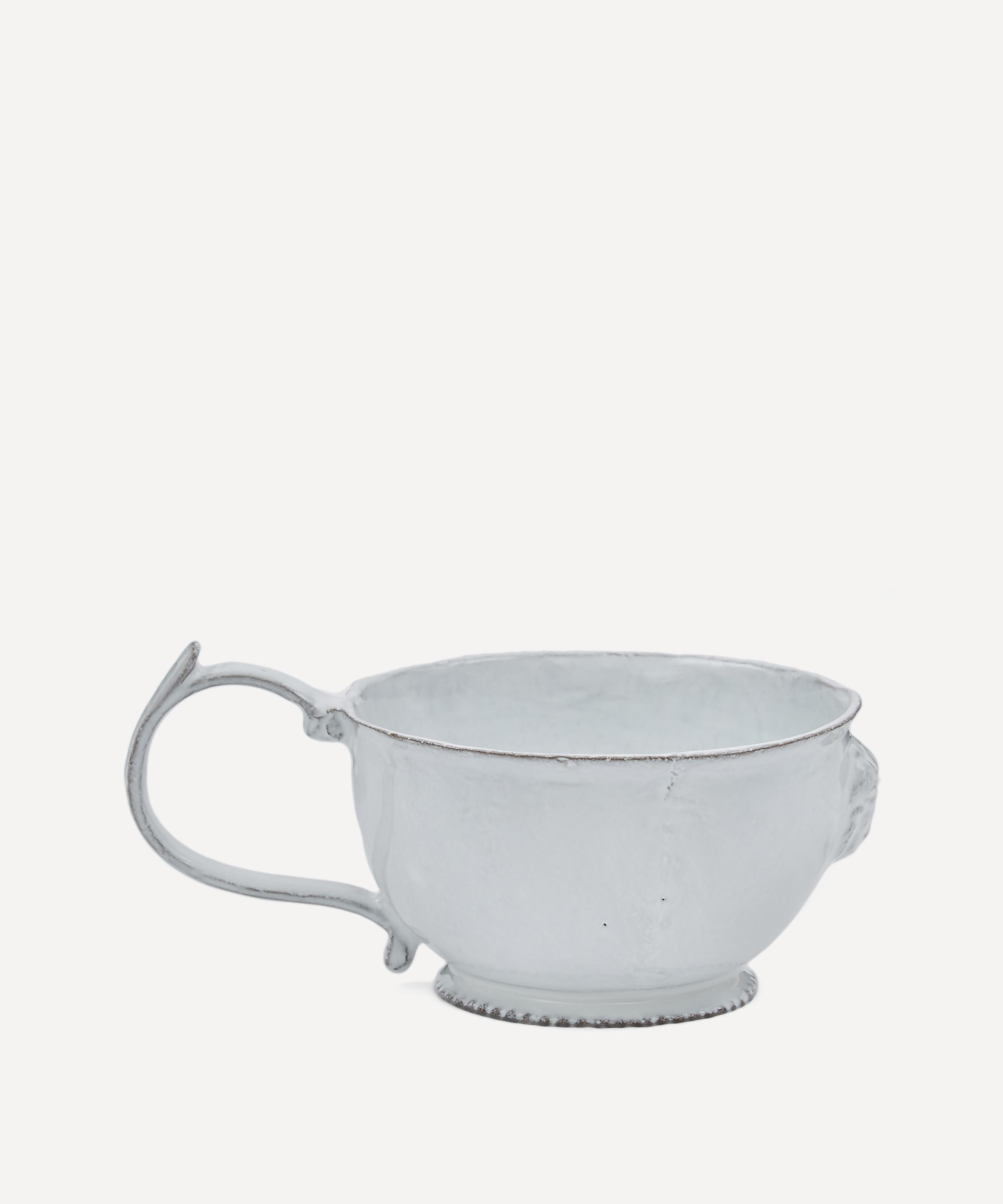 Votary of pre-industrial fabrication, Astier de Villatte is celebrated for being the one and only studio in Paris to hold and harbour the traditions of artisanal ceramic production. Restoring the ancestral systems of moulding and stamping, the Alexandre chocolate cup is made using techniques from the Middle Ages which involve moulding a sheet of handmade clay, double firing the ‘biscuit’ piece and glazing the product in white enamel – a lengthy process that requires a drying time of up to one month. Characterised by exposed clay, a dotted base and a lavishly curved handle, the chocolate cup is engraved with the brand’s signature crest - depicting an interlacing A & V - alongside the initials of one of the 40 master artisans who created it. Each handmade piece tells a beautiful story, it romances and imparts a sense of nostalgia into its owner. Arrange with other mugs in the collection to breathe an air of authenticity into your afternoon tea setting.