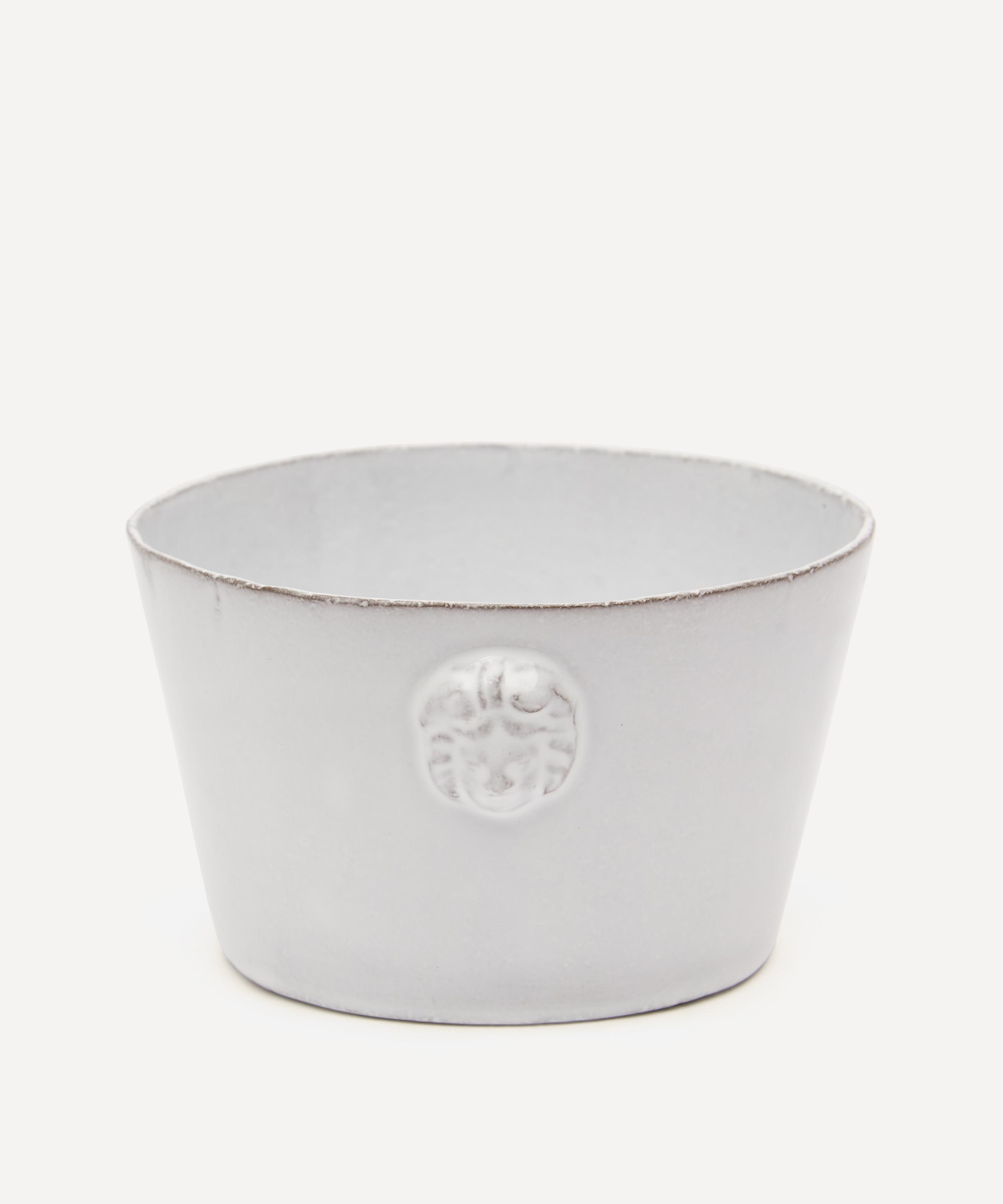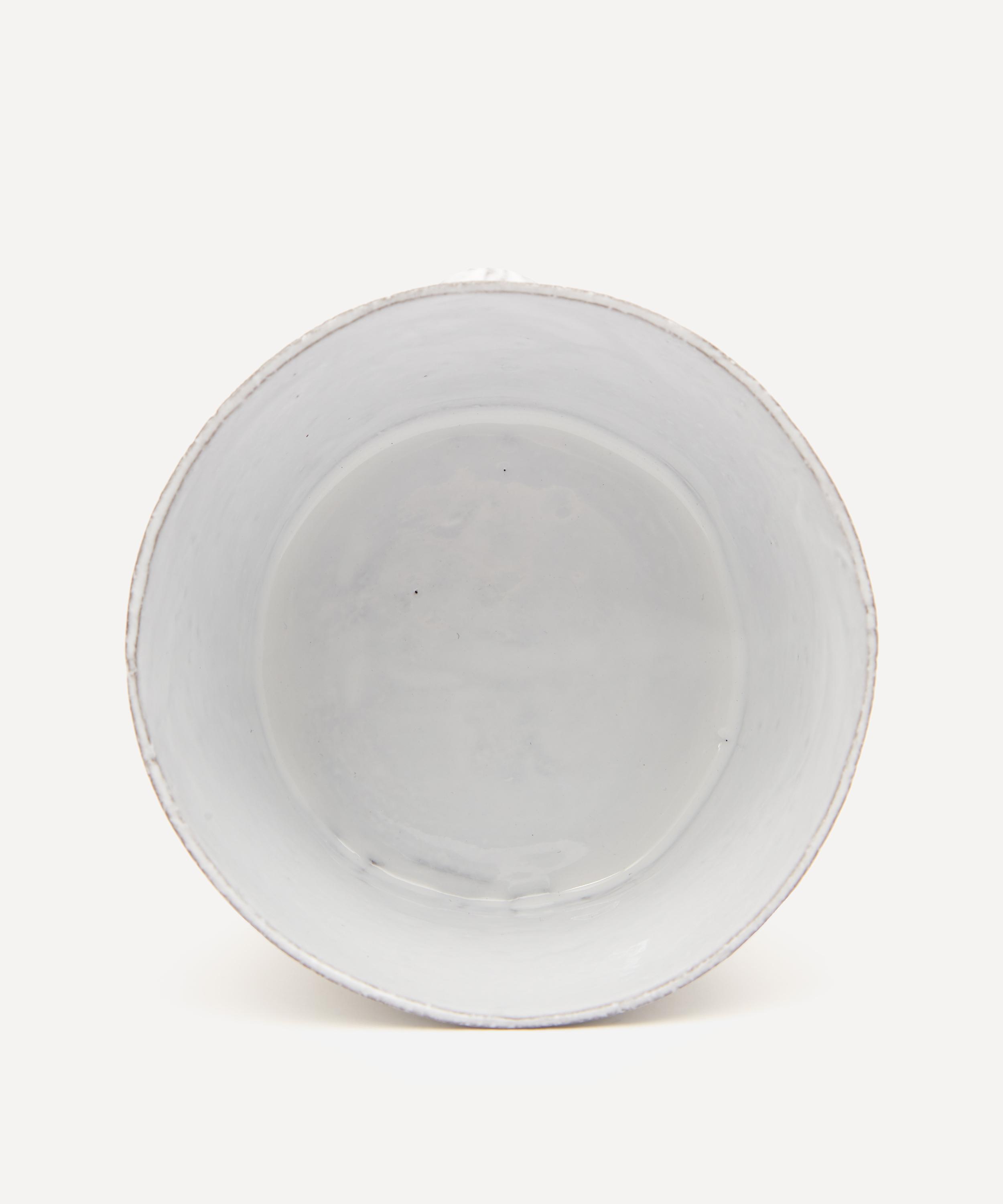 Votary of pre-industrial fabrication, Astier de Villatte is celebrated for being the one and only studio in Paris to hold and harbour the traditions of artisanal ceramic production. Restoring the ancestral systems of moulding and stamping, the Alexandre fruit bowl is made using handcrafting techniques from the Middle Ages which involve moulding a handmade sheet of clay, double firing the ‘biscuit’ piece and glazing the product in white enamel – a lengthy process that involves a drying time of up to one month. Characterised by a short, bucket-style silhouette, the fruit bowl is engraved with the brand’s signature crest - depicting an interlacing A & V - alongside the initials of one of the 40 master artisans who created it. Each handmade piece tells a beautiful story, it romances and imparts a sense of nostalgia into its owner. Arrange with other serveware in the collection to breathe an air of authenticity into your dining collection.