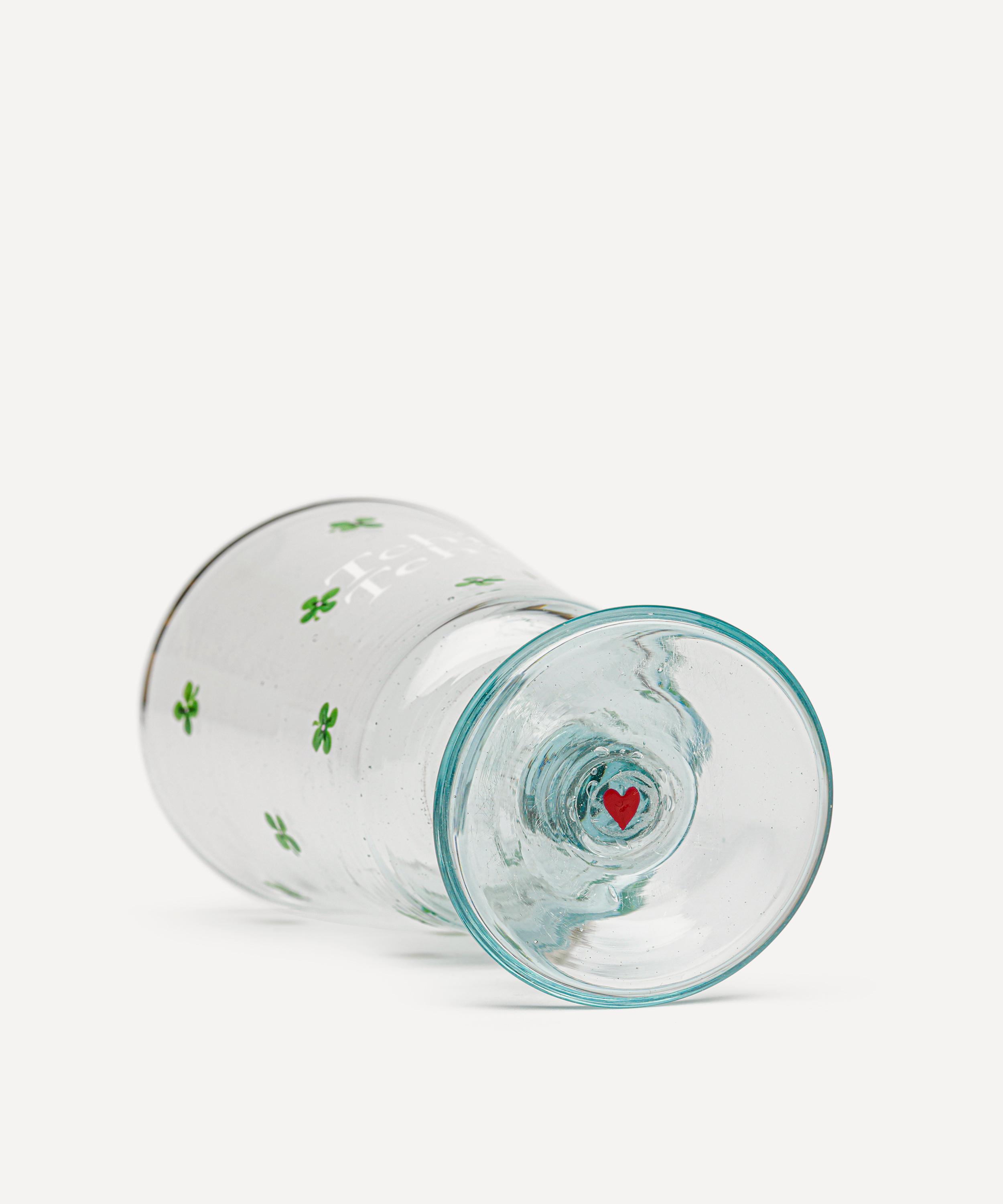 Designed by the brand’s eponymous founder with charming finesse, this light-hearted wine glass has been expertly crafted with the classic technique of mouth blowing, before being hand-painted with an idiosyncratic illustrated four-leaf clover pattern that delicately wraps the silhouette – presenting a beautiful finish that will perfectly complement your hosting tablescape.