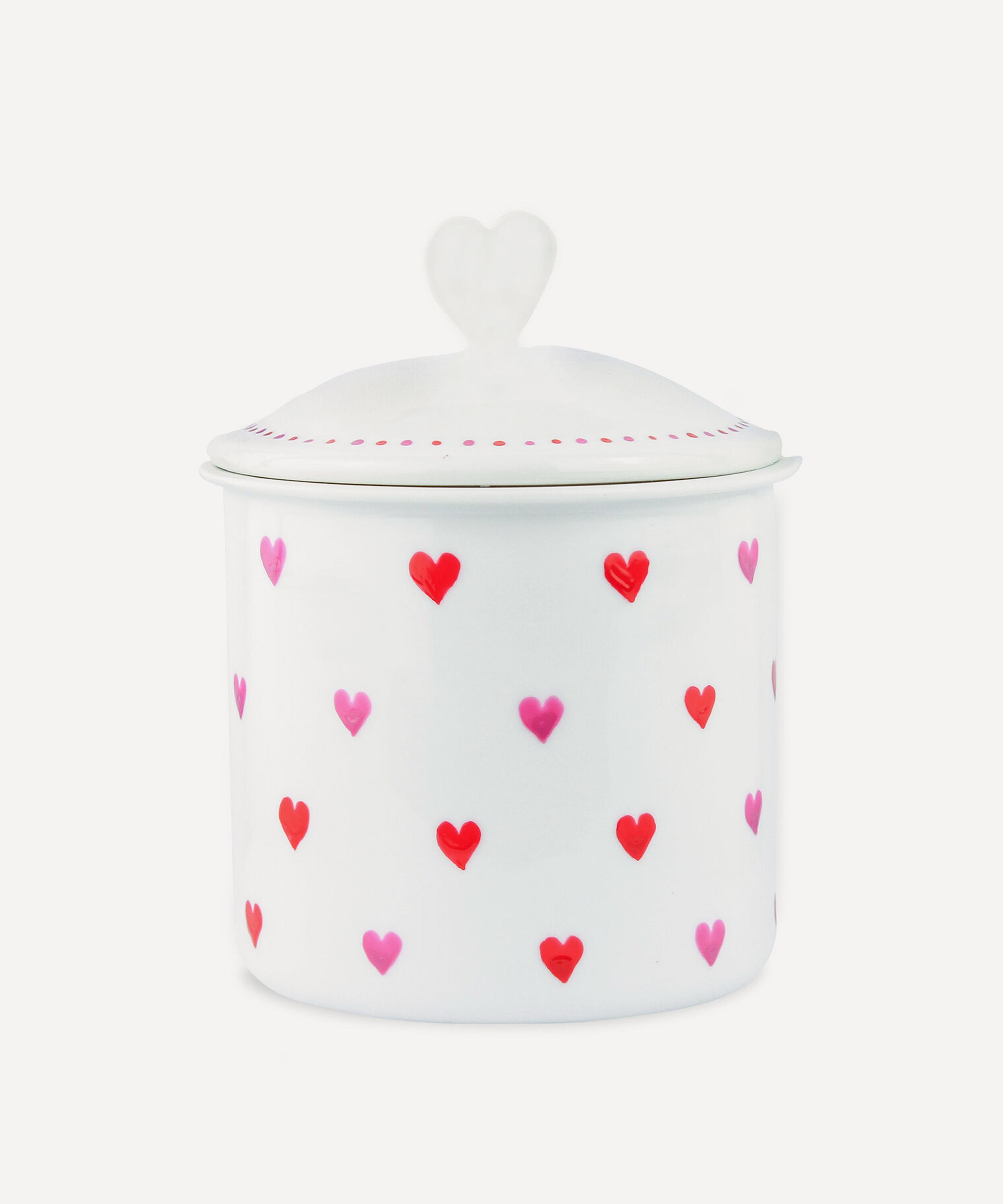Presenting the eponymous founder’s whimsical style and charming finesse, this playful storeage jar has been made by hand using the ancestral know-how of plaster molds before being hand-painted with an idiosyncratic illustrated two-tone love heart pattern that delicately wraps the silhouette – affixed in the brand’s workshop in Paris before finally being fired on site. A beautiful piece that will perfectly complement elegant interiors, it is complete with a round lid and a love-heart handle, lending a romantic finish.