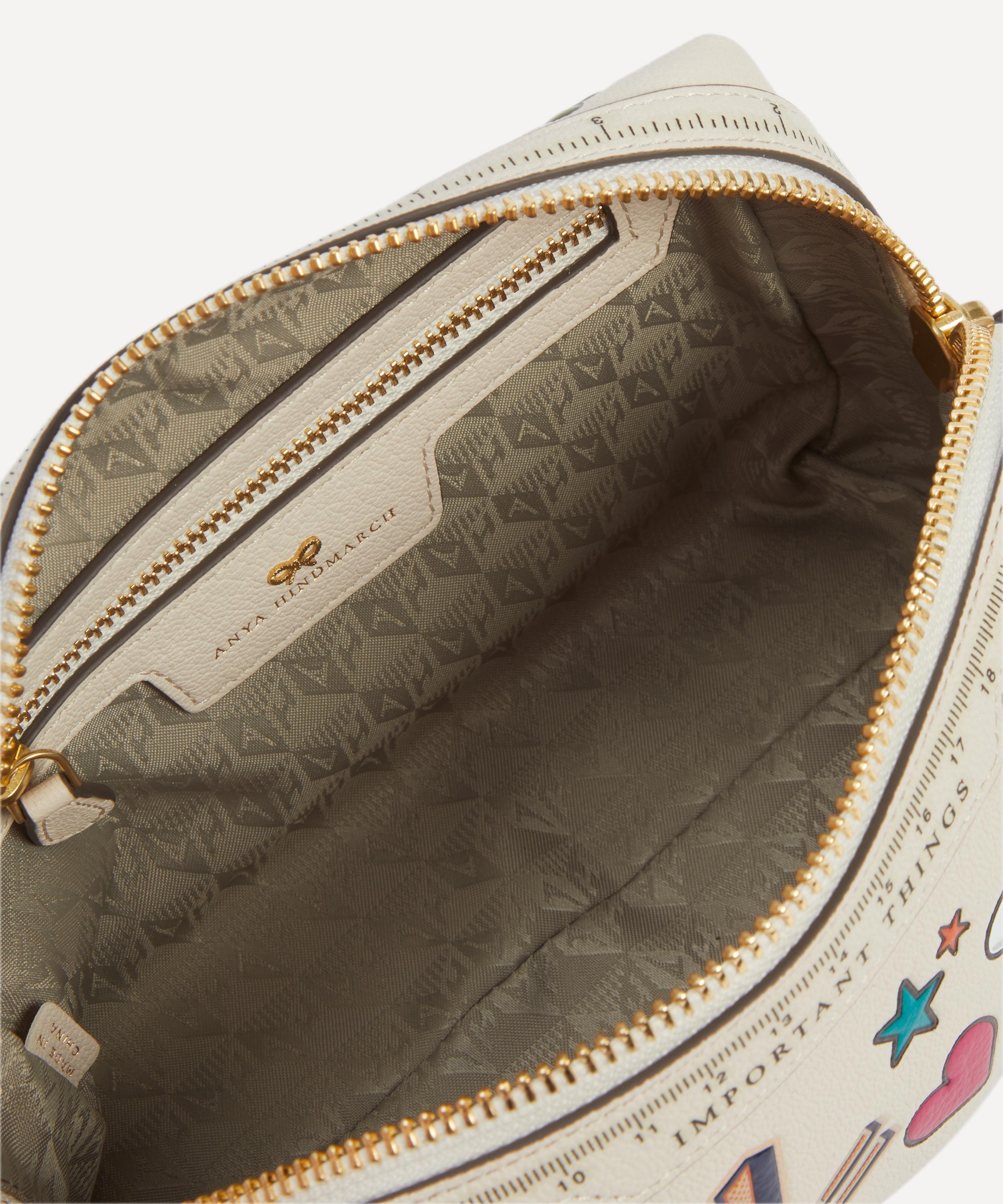 Inspired by the designer’s famous obsession with labelling, this staple is crafted from shiny Capra leather stamped with the brand’s iconic sticker detailing, a top zip closure, embossed branding and a handy inner pocket. With space for your phone, glasses and other valuables, it’s designed to keep all your essentials close to hand.About Anya Hindmarch