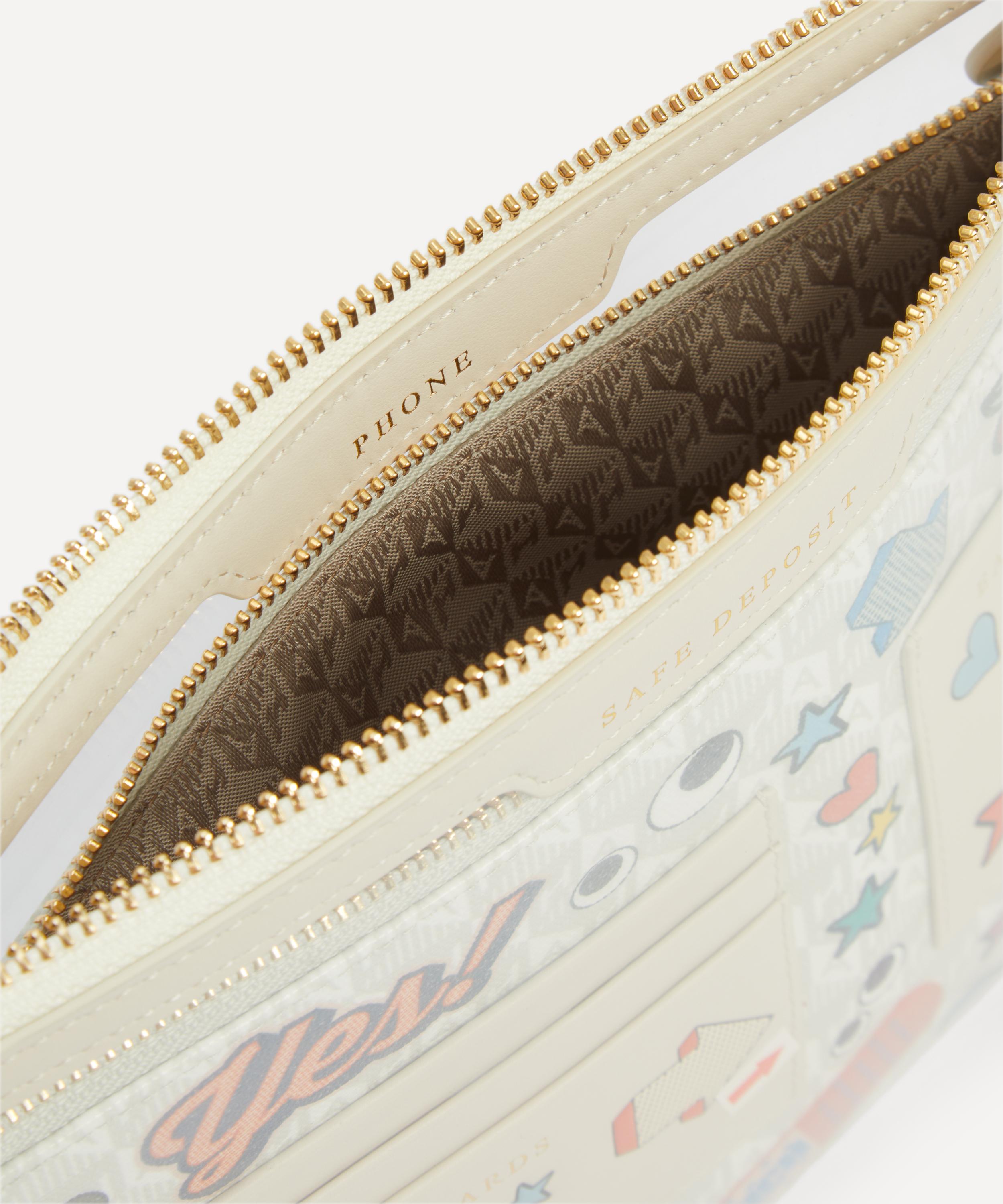 Inspired by the designer’s famous obsession with labelling, this staple is crafted from coasted canvas with the brand’s iconic sticker detailing, a top zip closure, embossed branding and handy specific-use pockets. With space for your cards, earphones and other valuables, it’s designed to keep all your essentials close to hand.About Anya Hindmarch