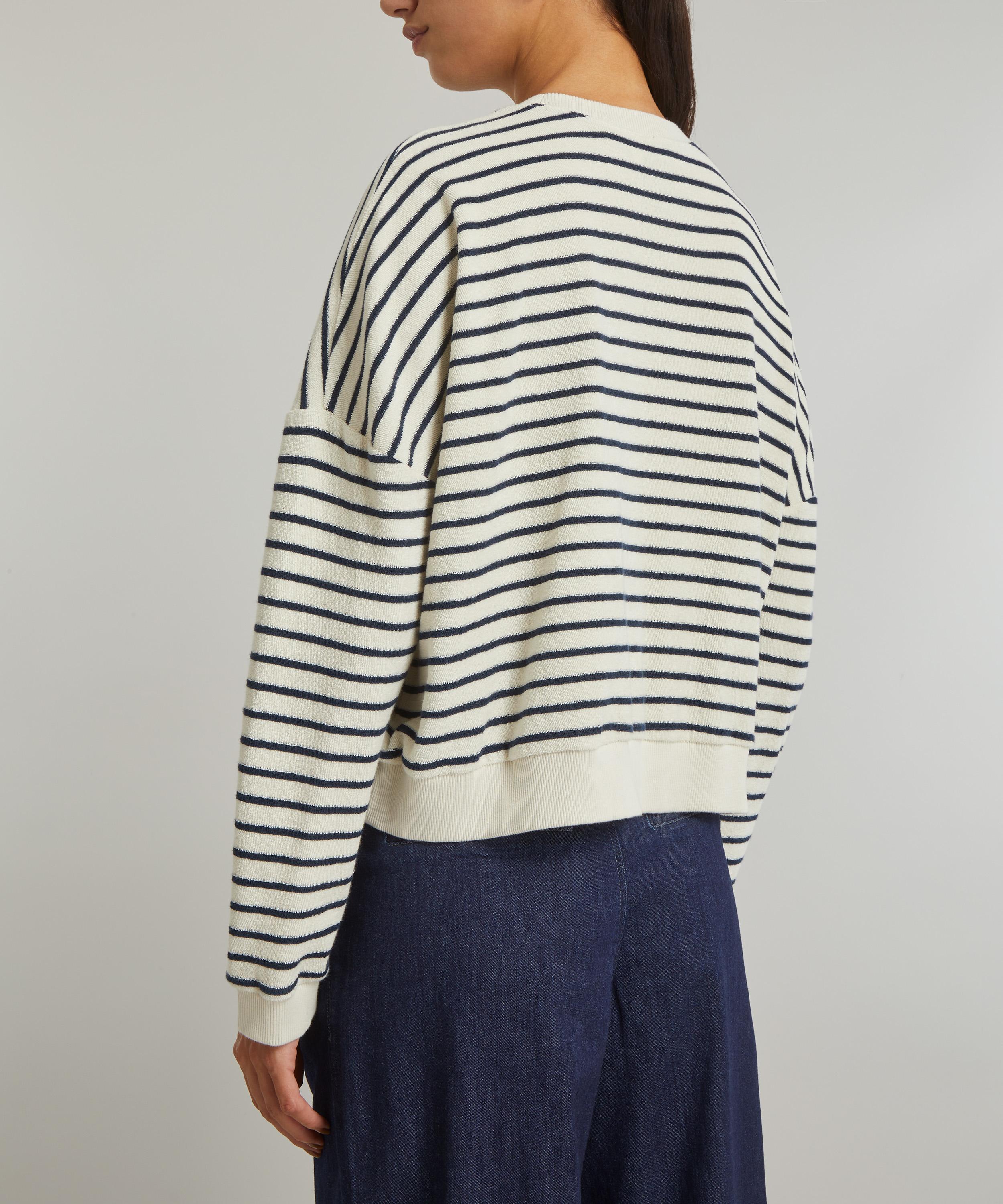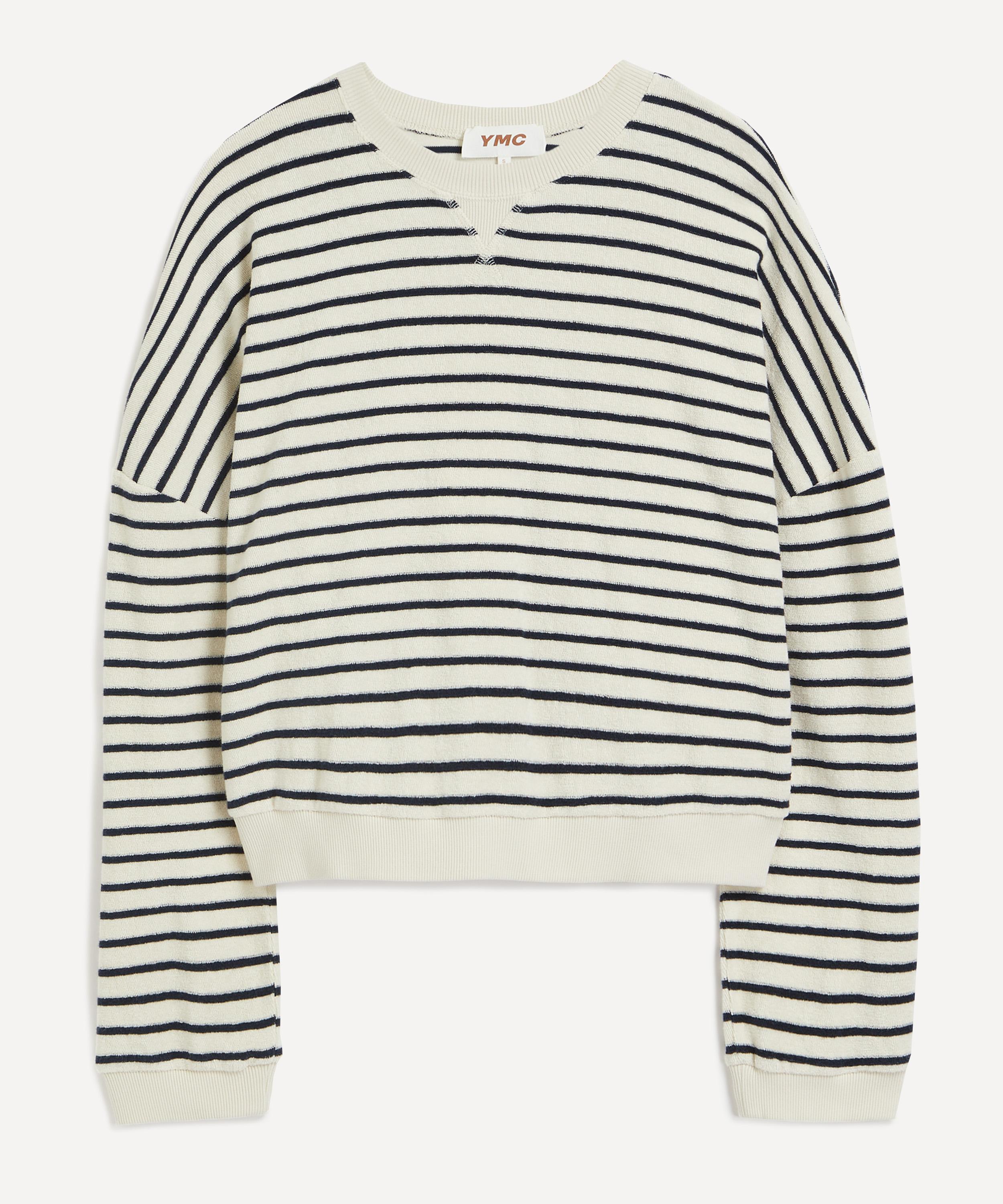 YMC’s Almost Grown sweatshirt is a casual staple, informed by the label’s utilitarian aesthetic. Inspired by vintage styles, this classic old-school sweatshirt is cut from loopback cotton for a relaxed fit with dropped shoulders and a slouchy silhouette that’s detailed with a Breton stripe design throughout.