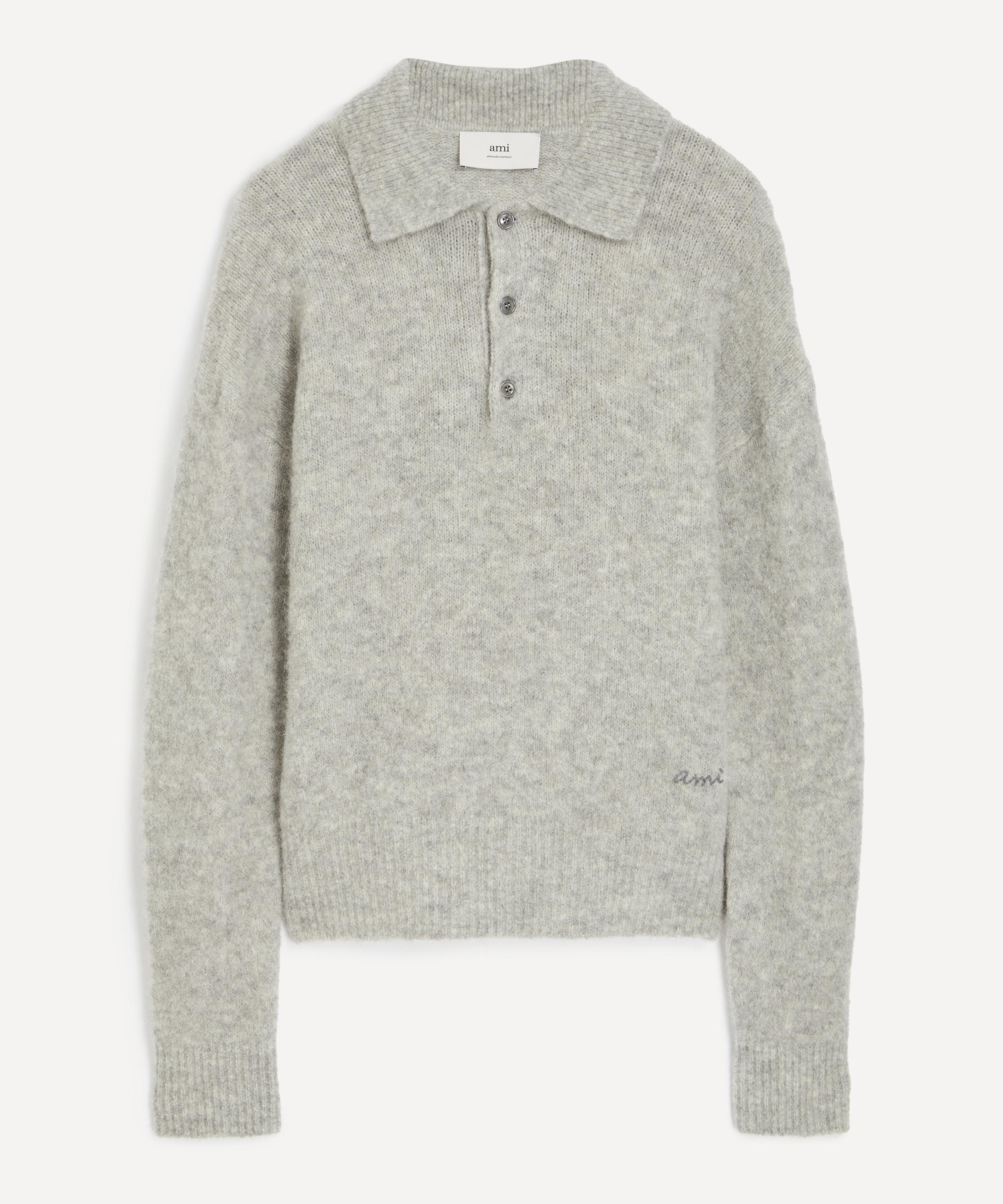 Ami’s knit polo sweater is the perfect layer as temperatures begin to dip.