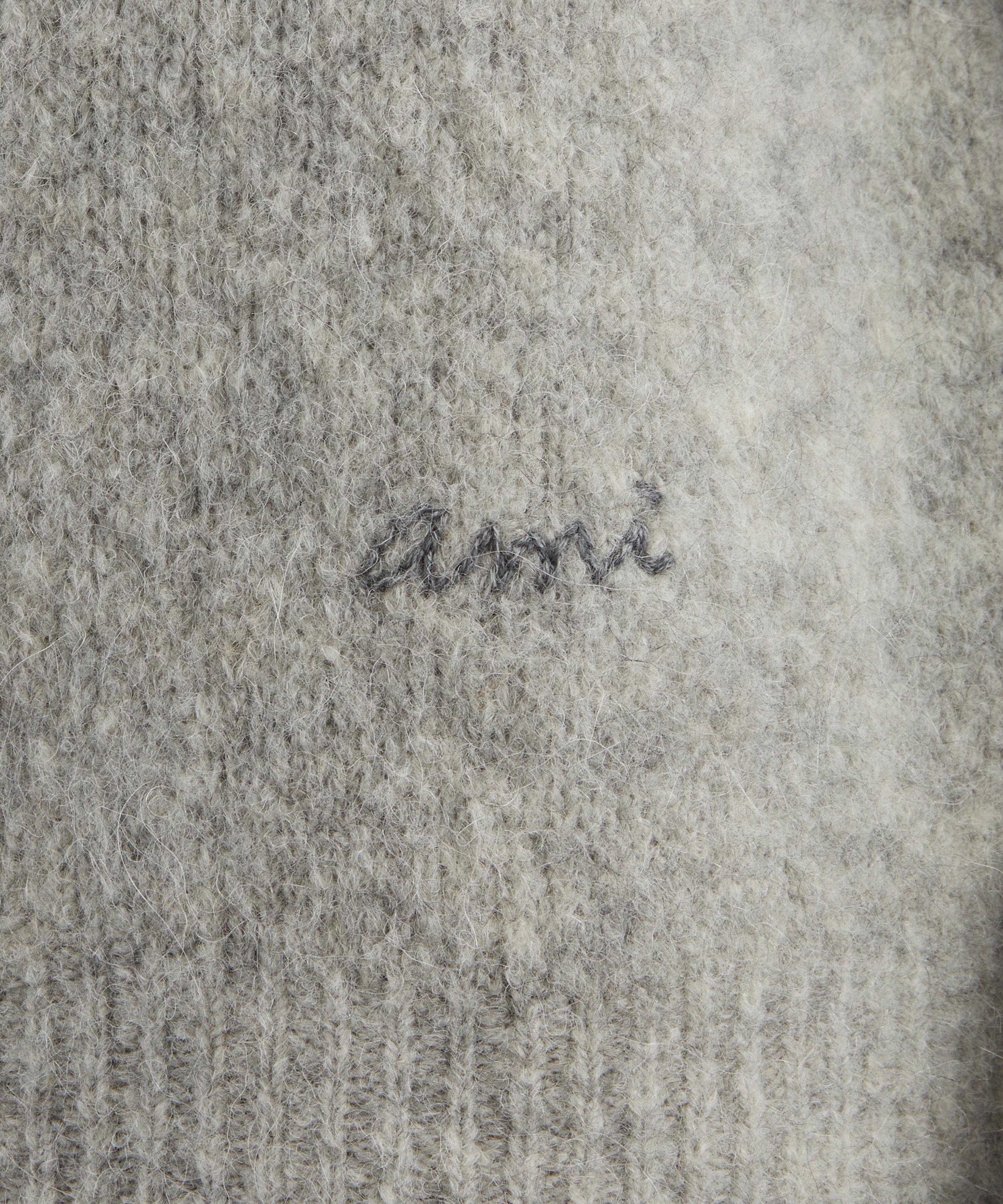 Crafted from a soft wool and alpaca blend, it features a spread collar, button placket, and long sleeves finished with ribbed trims. A discreet embroidered detail at the hem offers a refined finishing touch.