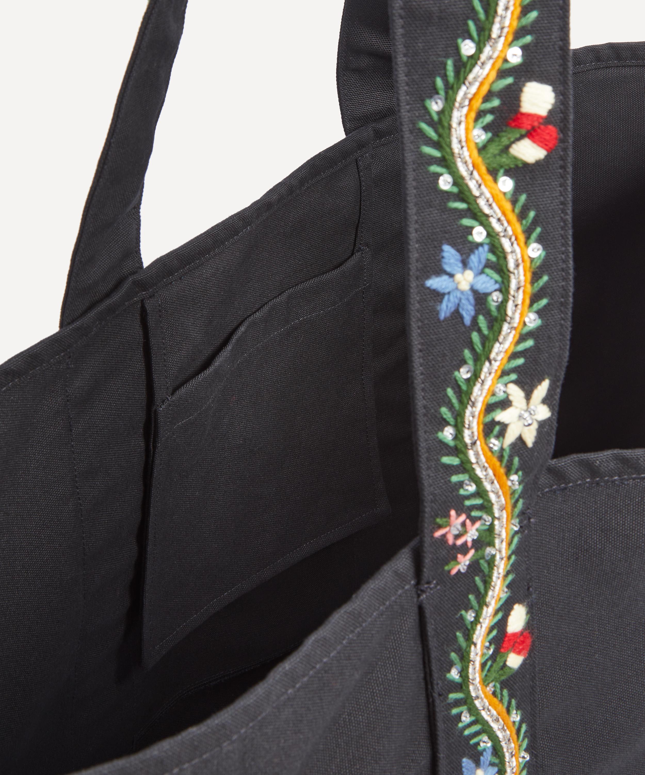 A nod to the label’s love of vintage craftwork techniques, BODE’s Alpineflower tote bag is a charming addition to your accessories line-up. It’s shaped from soft cotton yarns and defined by delicate floral embroidery – inspired by the twining, wildflower-and-vine on an Austrian straw hat from the 1930s. Fitted with shoulder straps, an open top and an internal patch pocket, the bag is hallmarked with vivid logo embroidery.