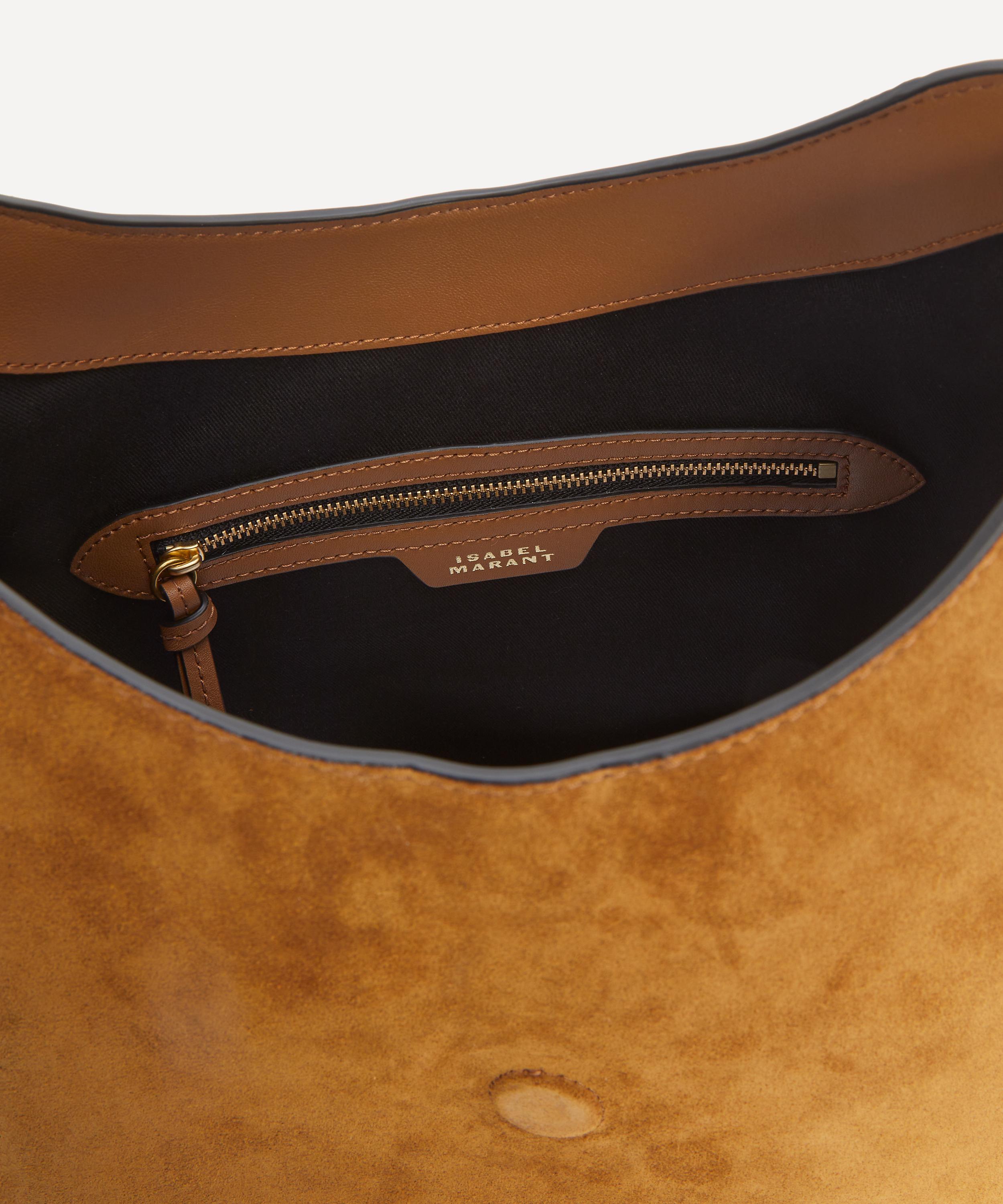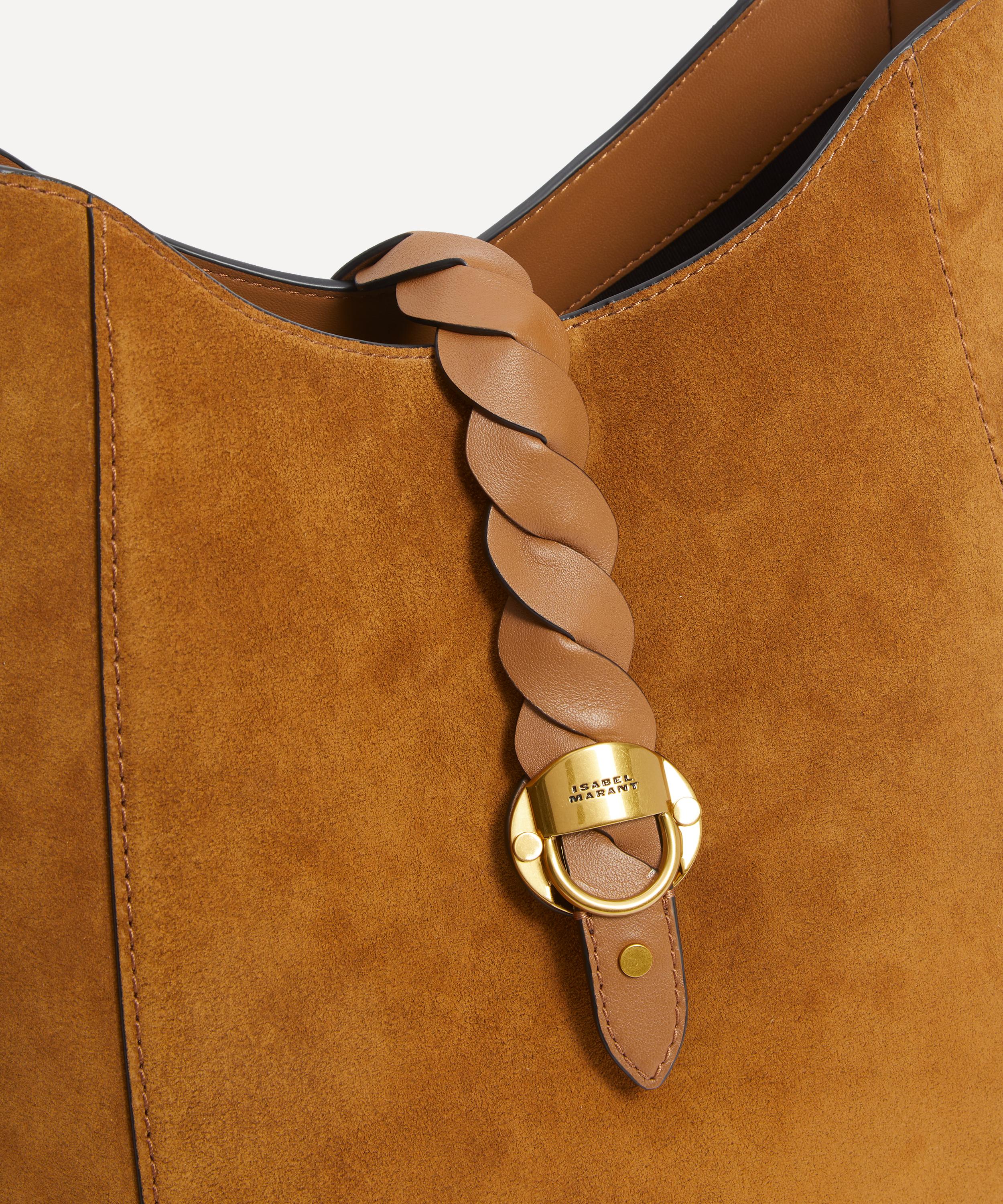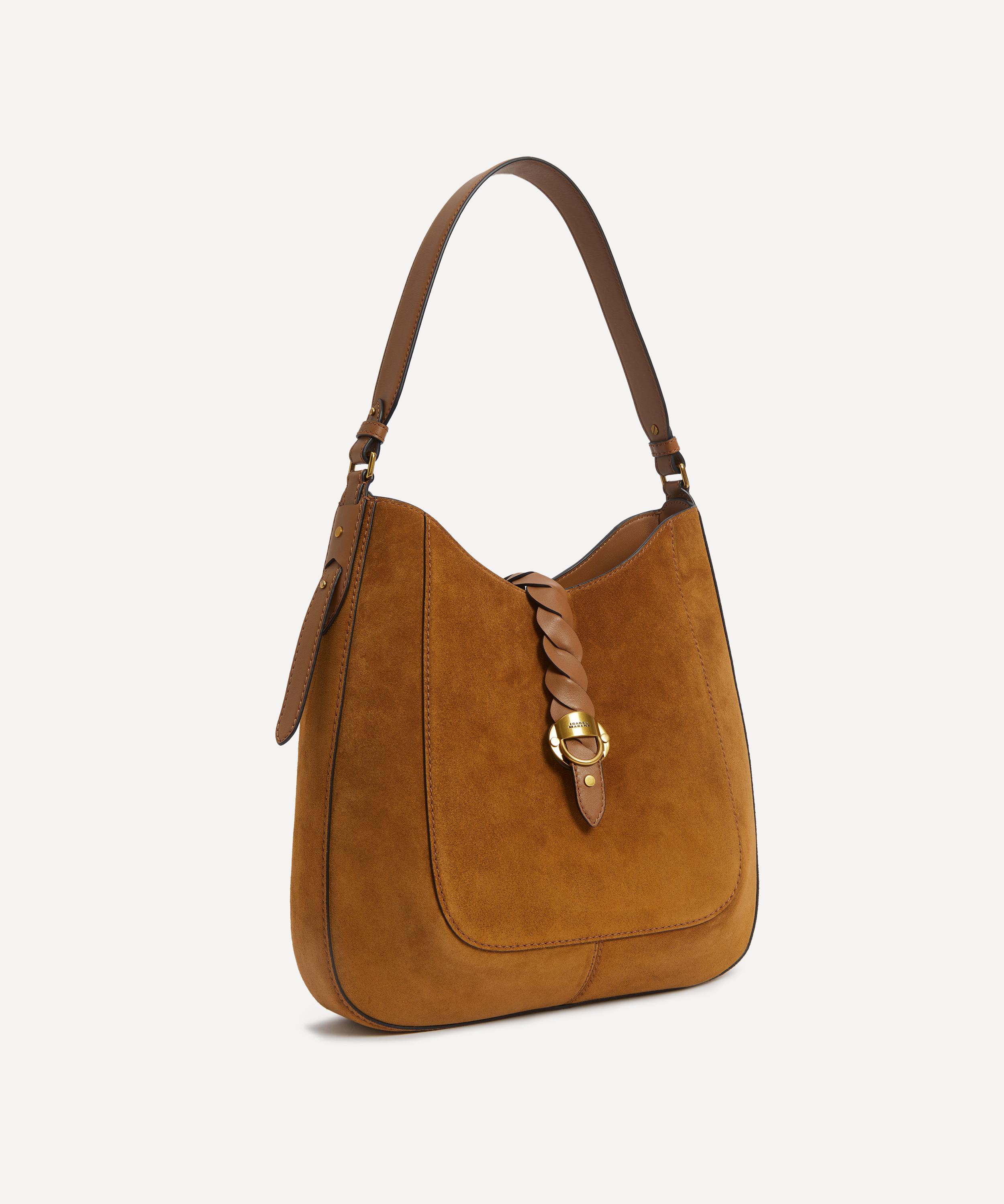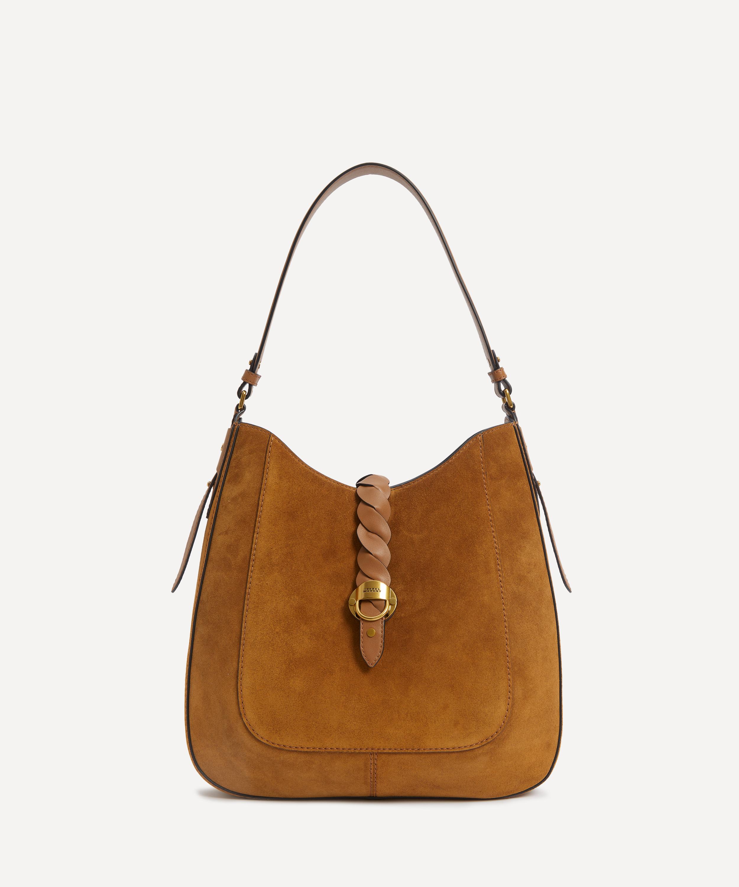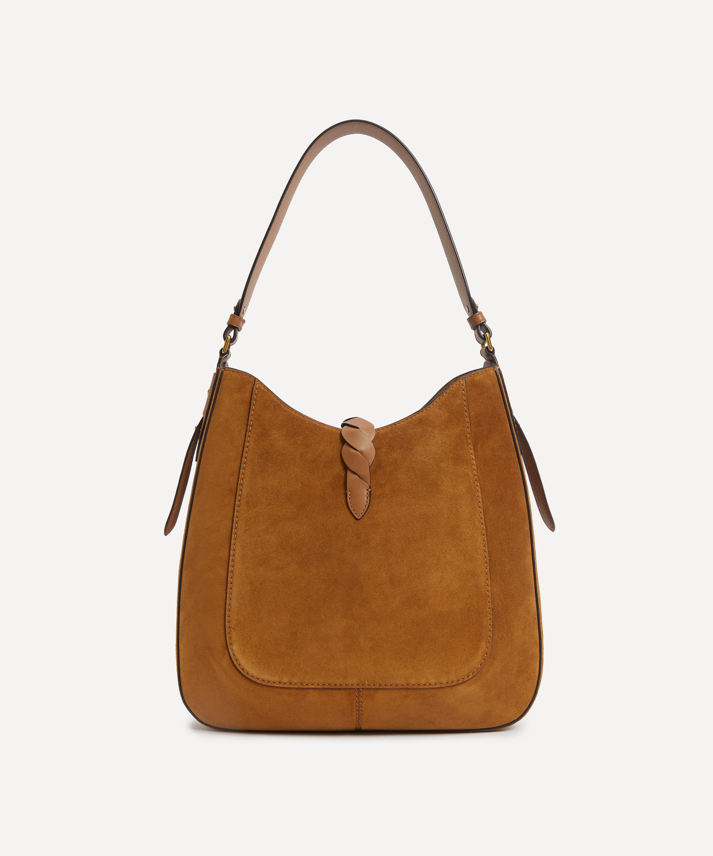 Poised to elevate your everyday edit with a dose of understated, bohemian-inspired luxury, this soft shoulder bag has been fashioned from suede leather, equipped with an internal zipped pocket and spacious main compartment. Complete with a charming interlaced leather tab that adorns the front, a single shoulder strap and an engraved metal clasp, it boasts a timeless addition to your handbag arsenal.