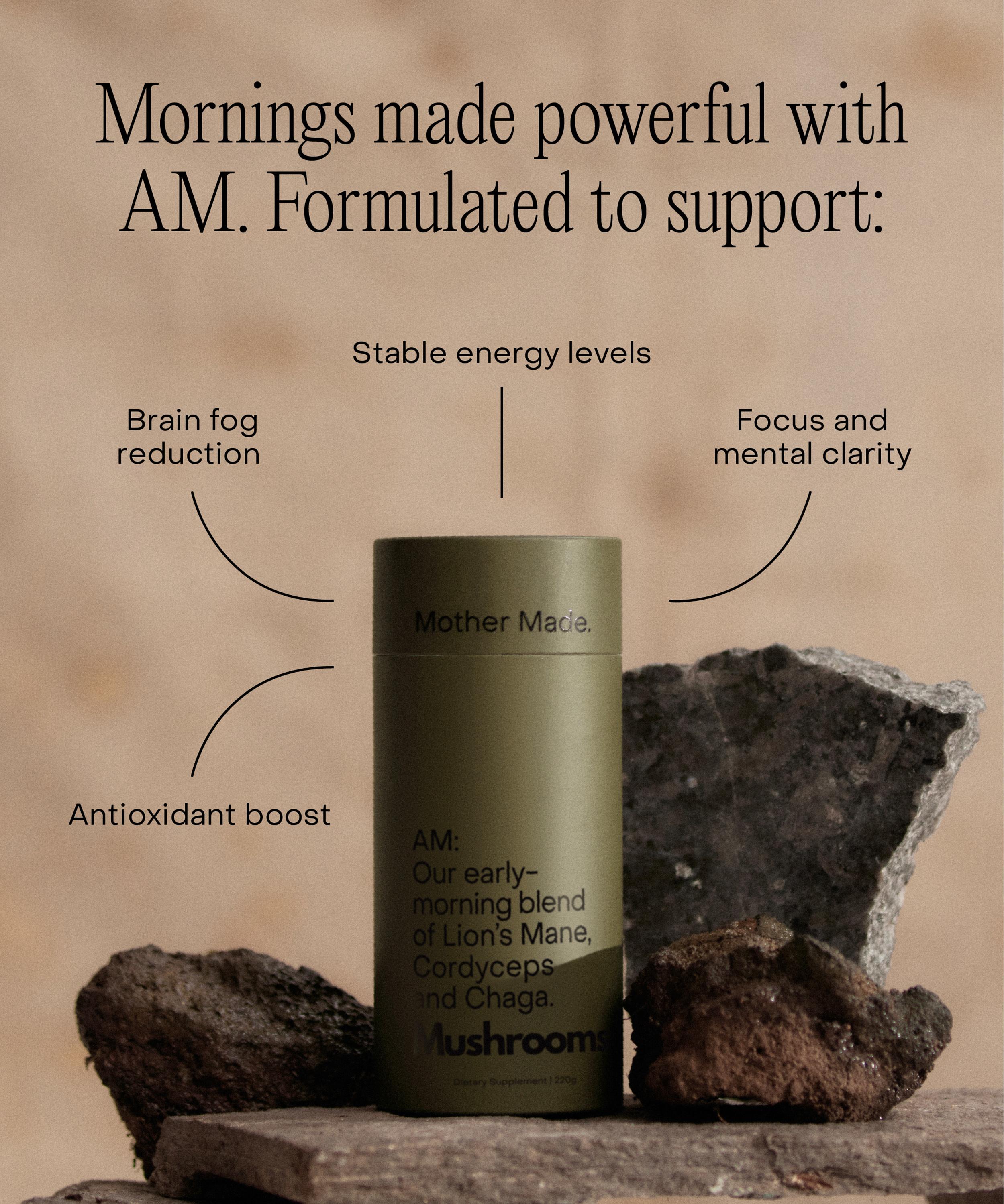 The AM Blend from Mother Made is a powerhouse daily supplement that combines the benefits of three superfoods to support your mood and memory.