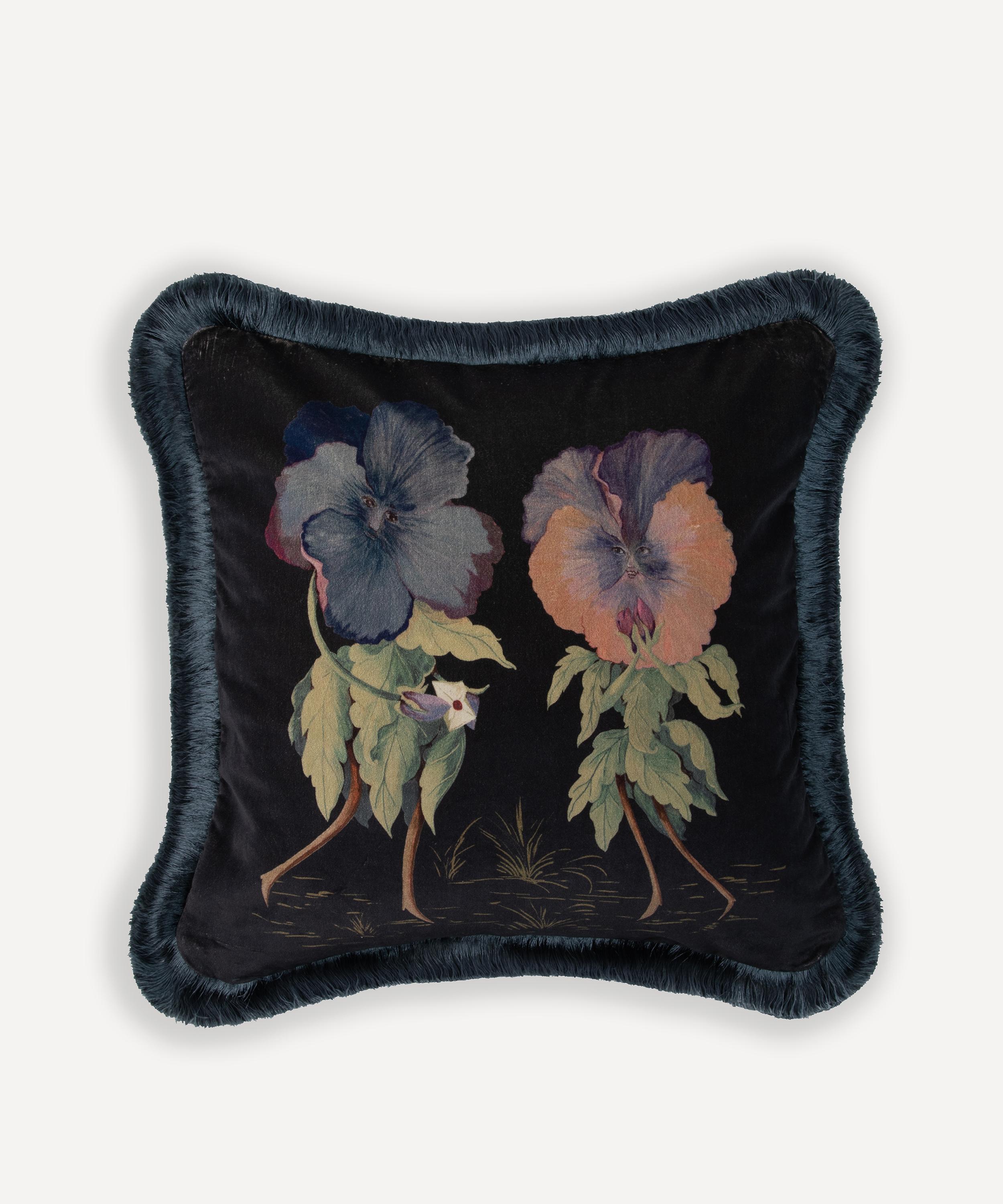Amatoria Pansies Medium Cotton Velvet Fringed Cushion