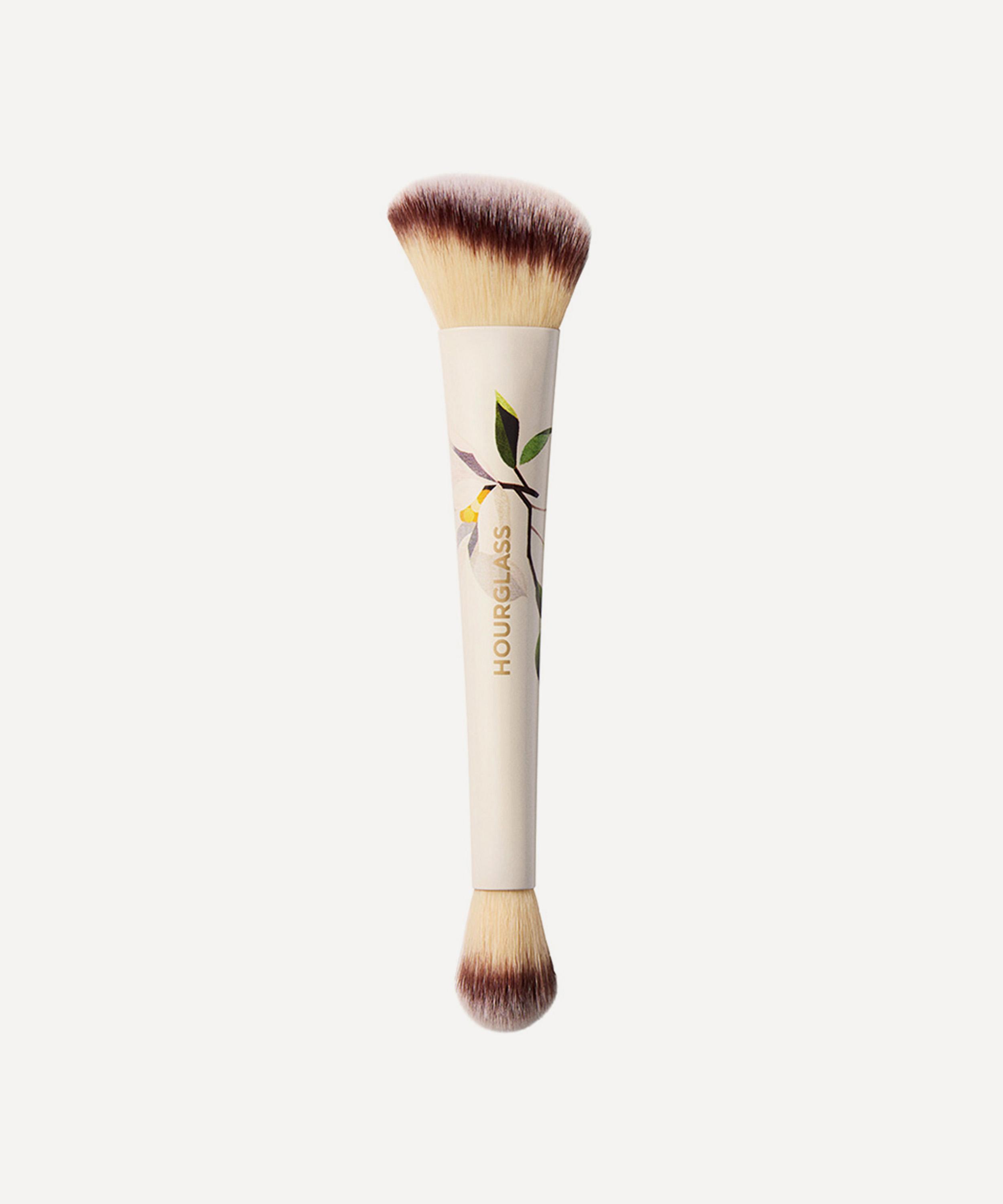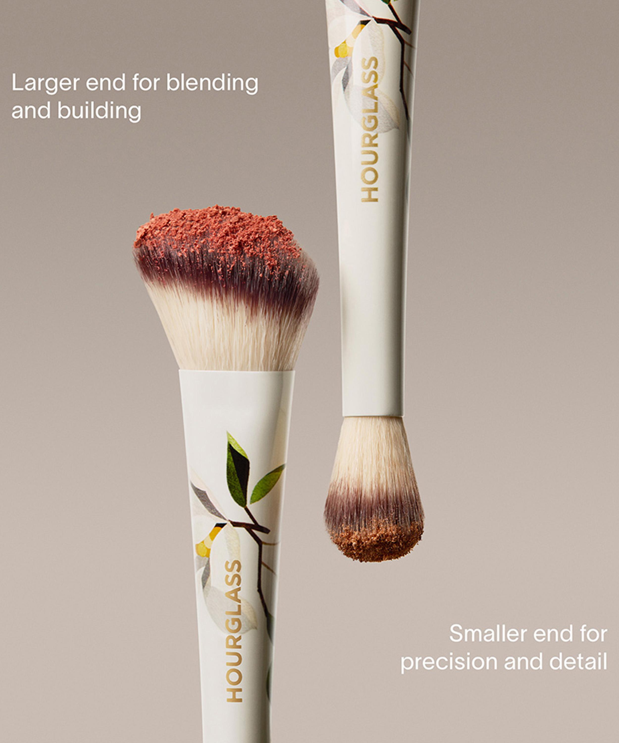 Complement your makeup kit with the Ambient Lighting Edit Brush II, a limited-edition, double-ended brush by Hourglass designed for flawless makeup application. Featuring two versatile heads – a slanted end for blush and a domed end for highlighter – this exclusive brush is crafted with ultra-soft synthetic bristles for a luxurious feel. Adorned with magnolia flower artwork by Ukrainian tattoo artist Sasha Unisex, it makes the perfect festive addition to any beauty collection, offering effortless precision and style.