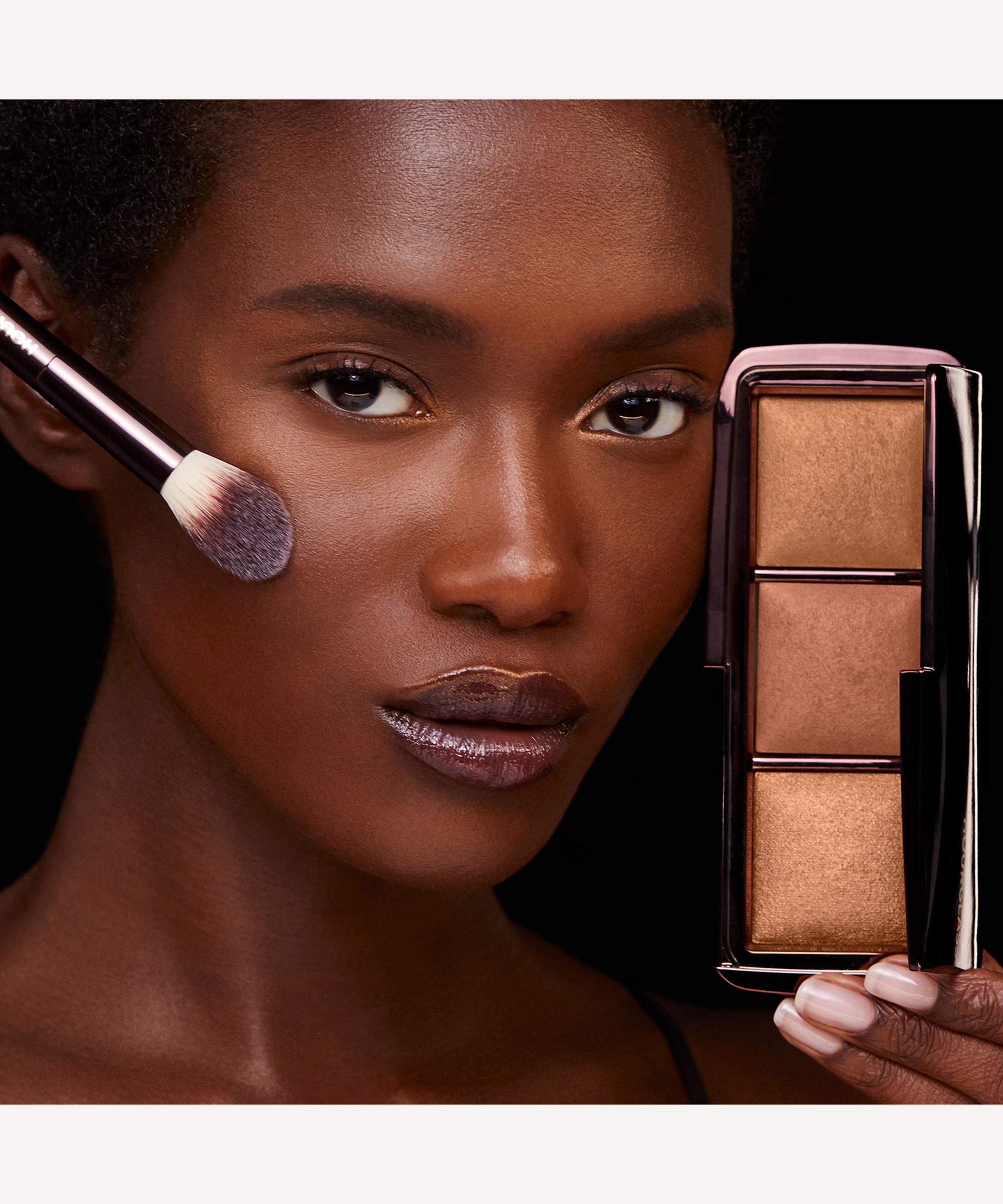 Dust Dim Light all over the complexion but focus on the centre of the face to soften imperfections. Add Radiant Light as a contour under the cheekbones, on the temples and on either side of the bridge of the nose. Finish off with a light dusting of Incandescent Light on the tops of the cheekbones, under the brow, on the centre of the eyelids, the bridge of the nose and the cupid’s bow to brighten the complexion. For deeper skin tones, test the product on your skin and make adjustments by adding Radiant Light for more warmth.