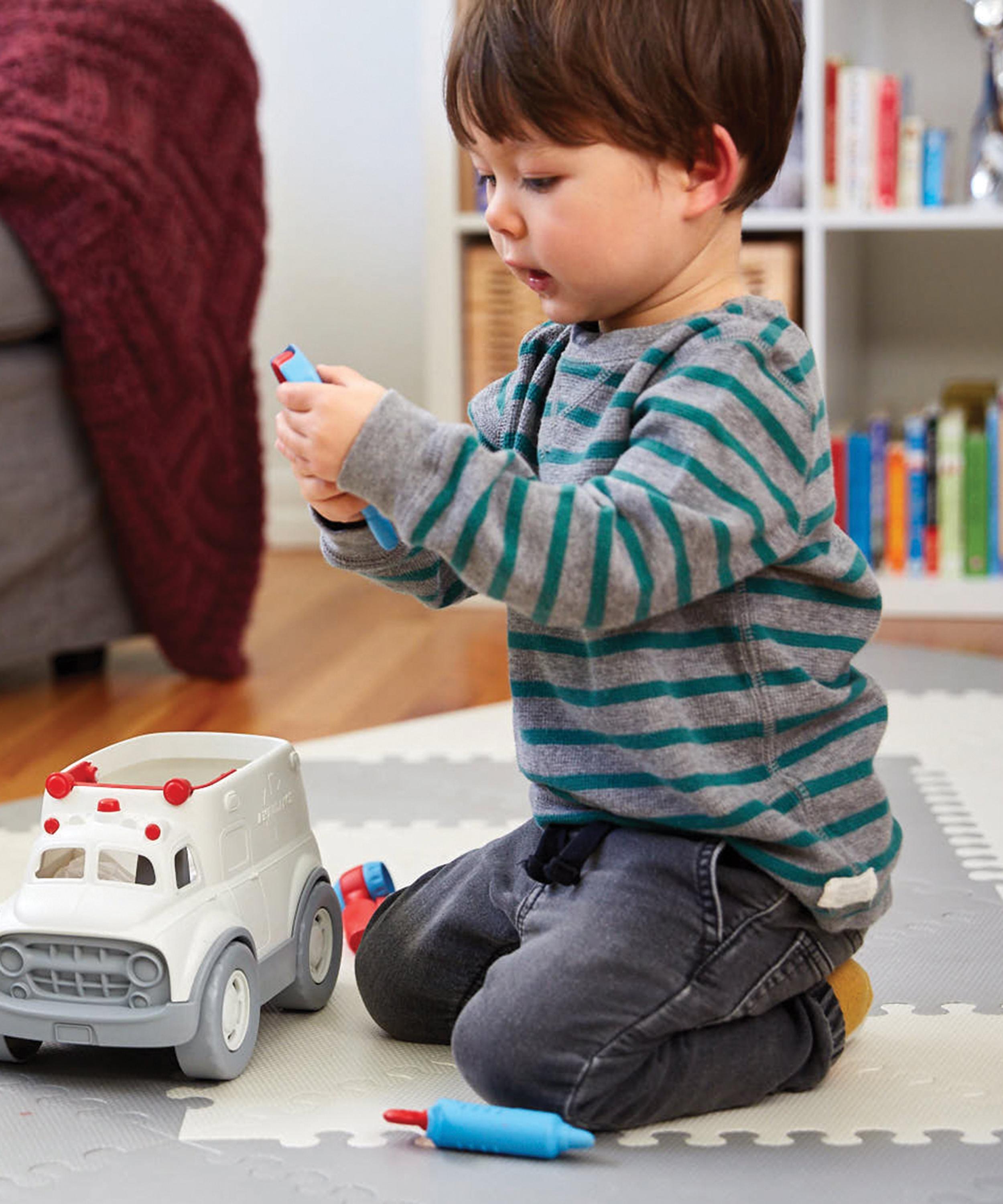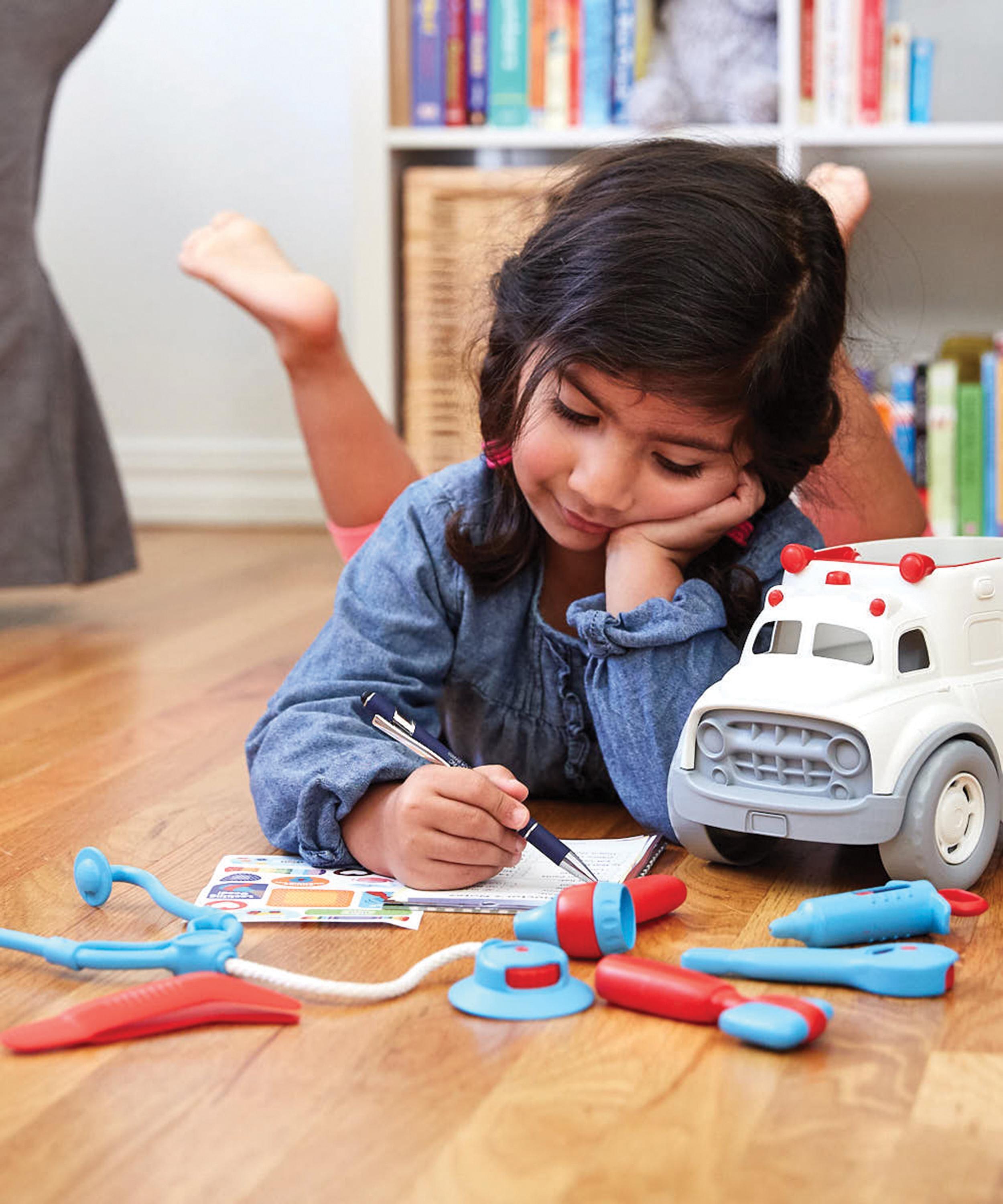 Green Toys’ Ambulance and Doctor’s Kit toy lets children nurse their teddies and dolls back to health.