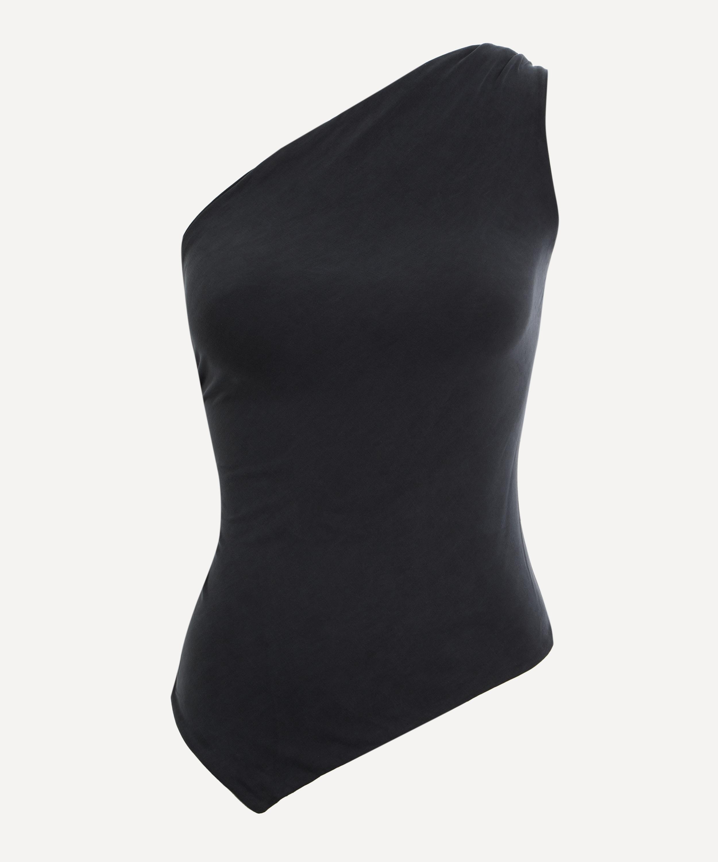 The Amelia One-Shoulder Graphite Top is part of Peachy Den’s exclusive collaboration with Amelia Dimoldenberg.