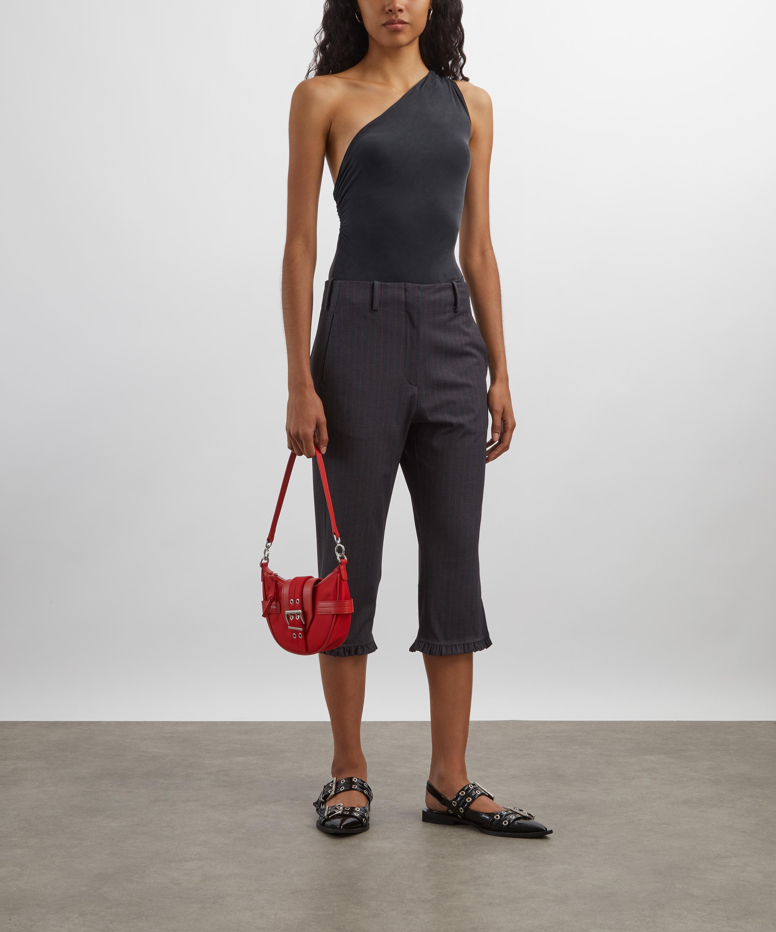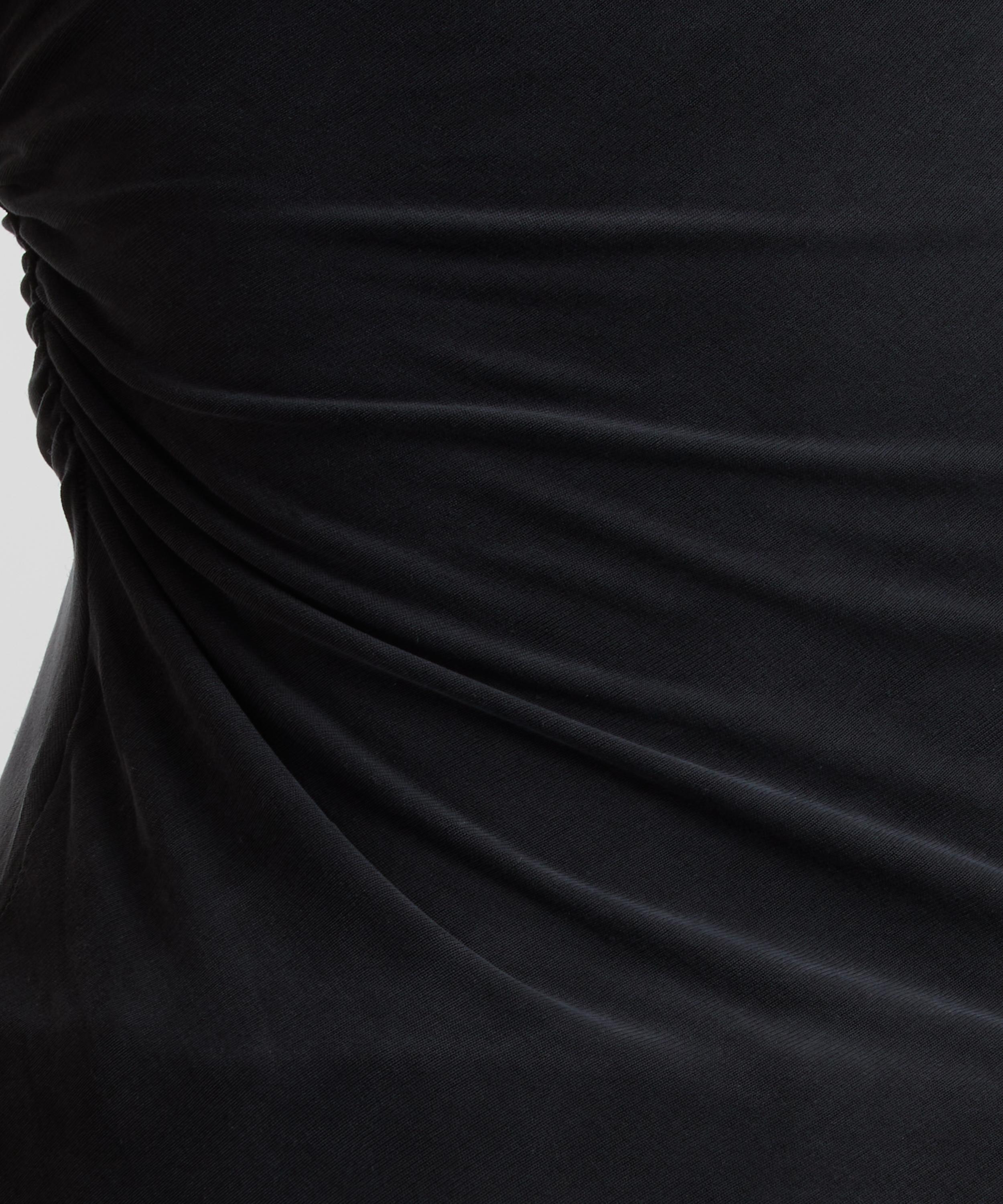 In a rich charcoal hue, the One-Shoulder Top is a flirty and playful statement piece, designed with a twisted single-shoulder strap, subtle ruching along the sides, and an asymmetric hem for a flattering silhouette.