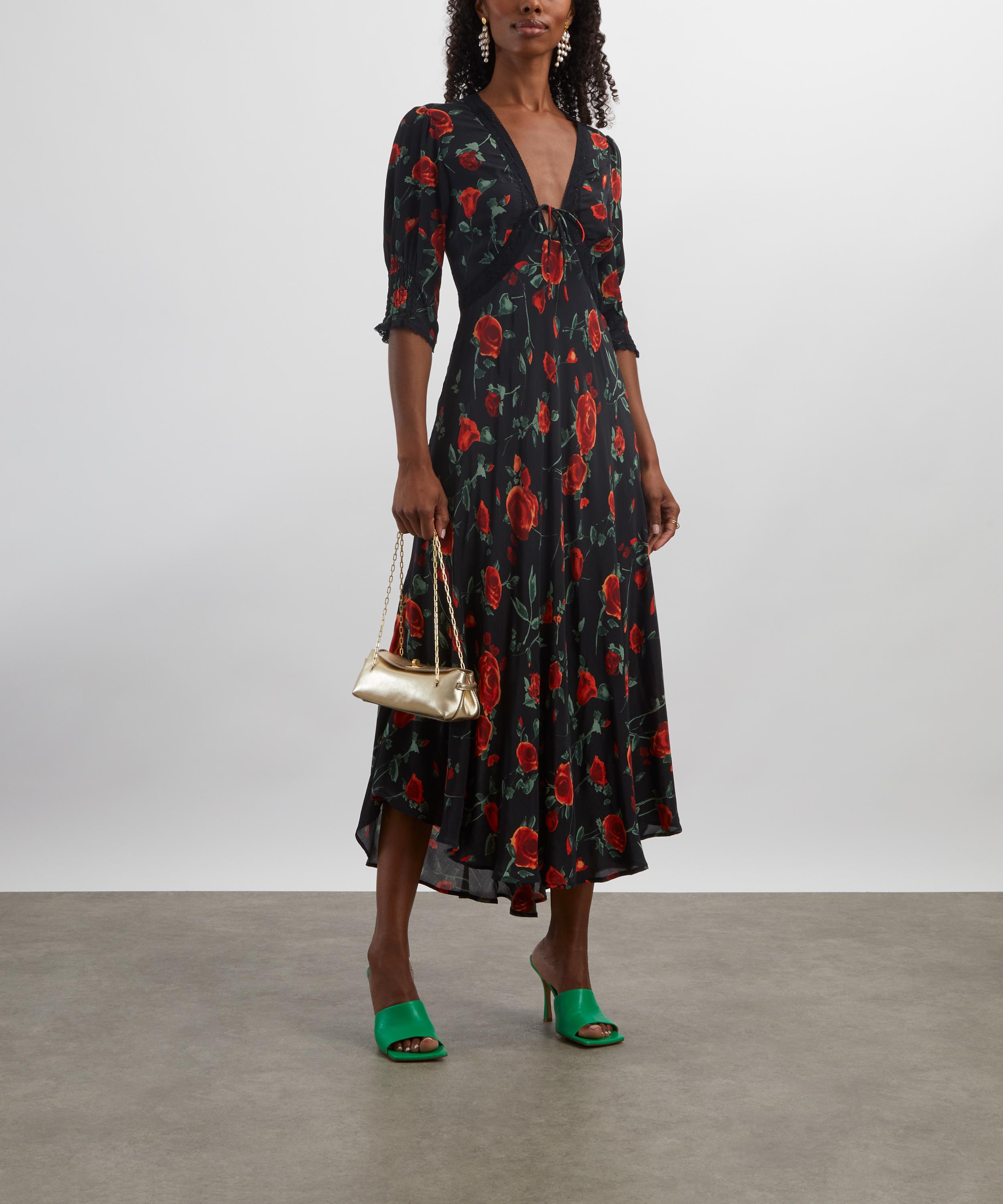 RIXO’s Amina Claudia Rose Midi Dress infuses your new season edit with a little retro elegance.