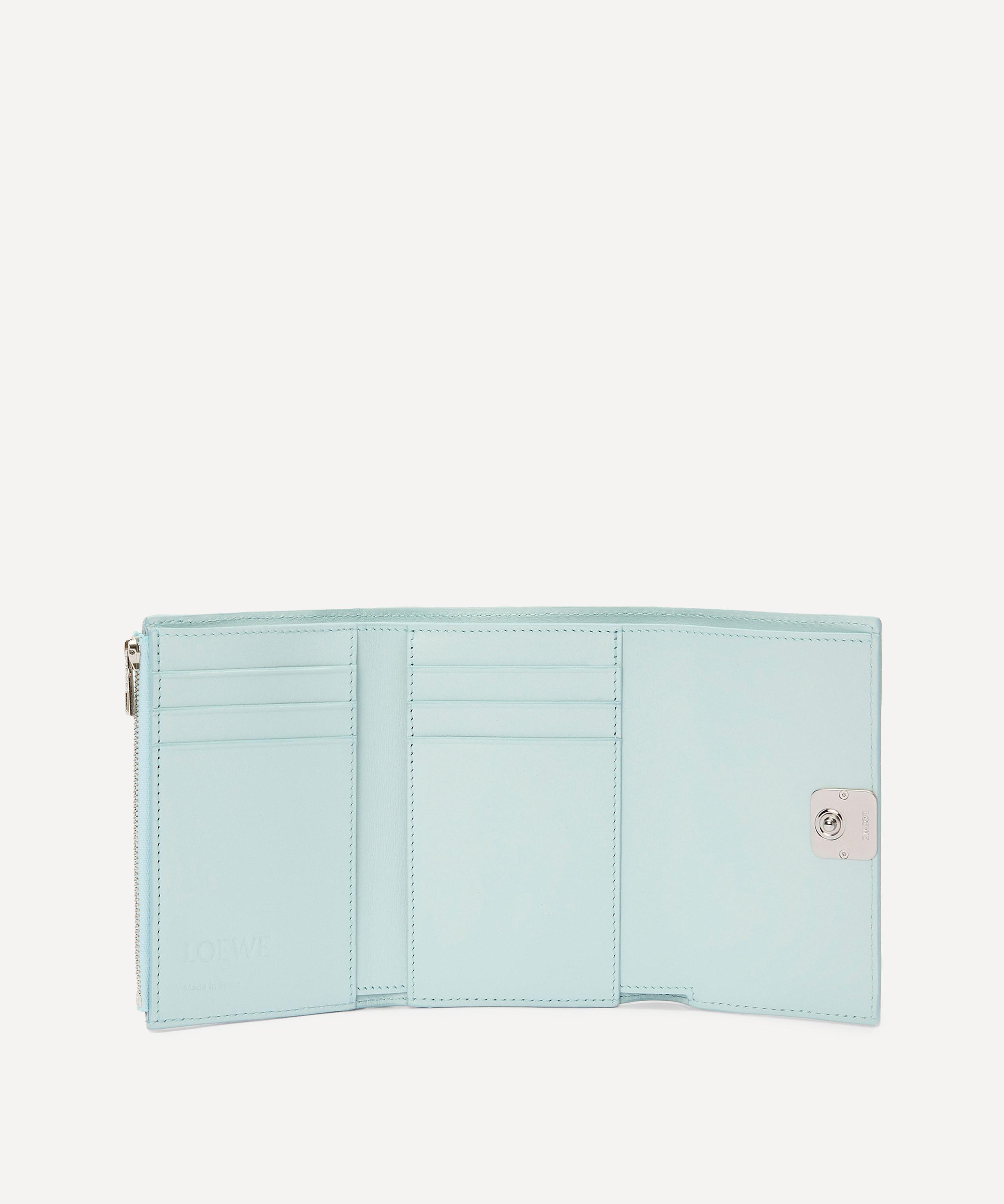 Cut from pebble grain calfskin leather, this compact wallet showcases a classic tri-fold design with six card slots, a large pocket and one zipped coin compartment. Complete with an Anagram snap-button closure, it's perfect for slipping into a handbag or jacket pocket to keep cards, coins and notes organised in signature Loewe style.