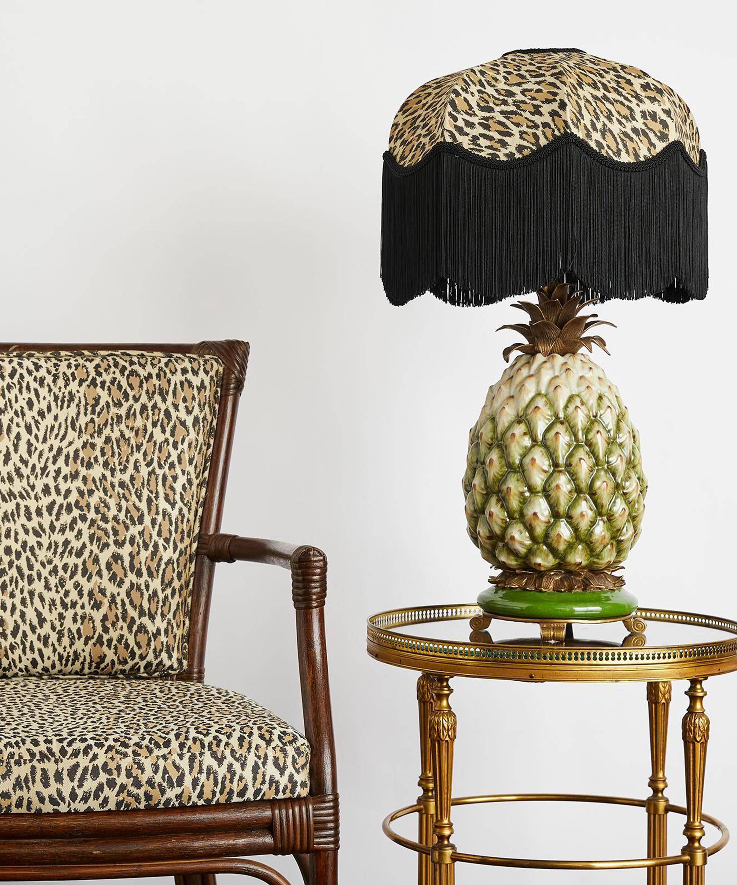 The brand’s modern, offbeat outlook is captured in the distinctive porcelain pineapple design – pineapples were once hung in doorways as a symbol of goodwill and friendship. Style the lamp with House of Hackney’s signature animal-print lampshades and cushions to bring a warm, opulent glow with a playful edge into your home.