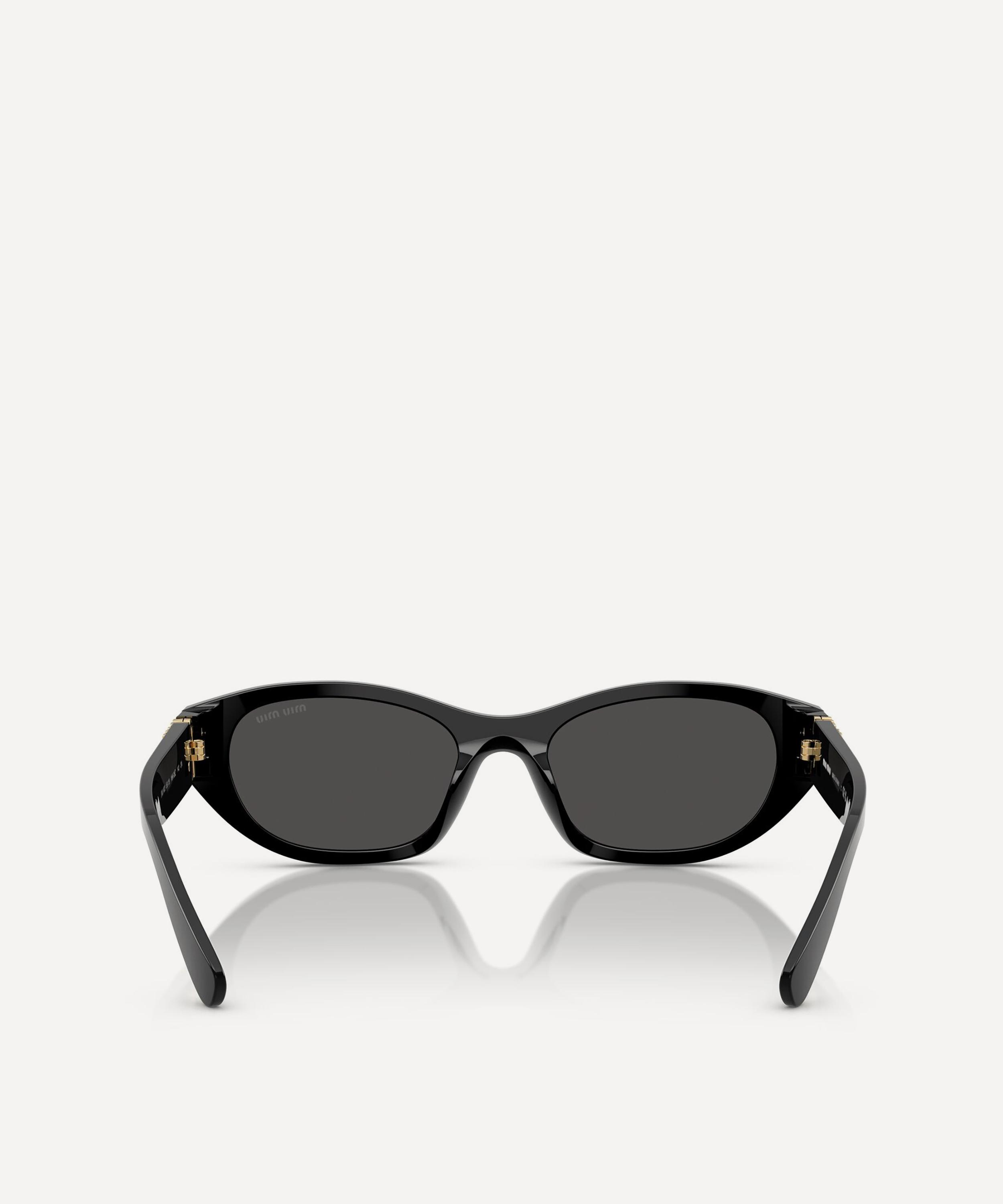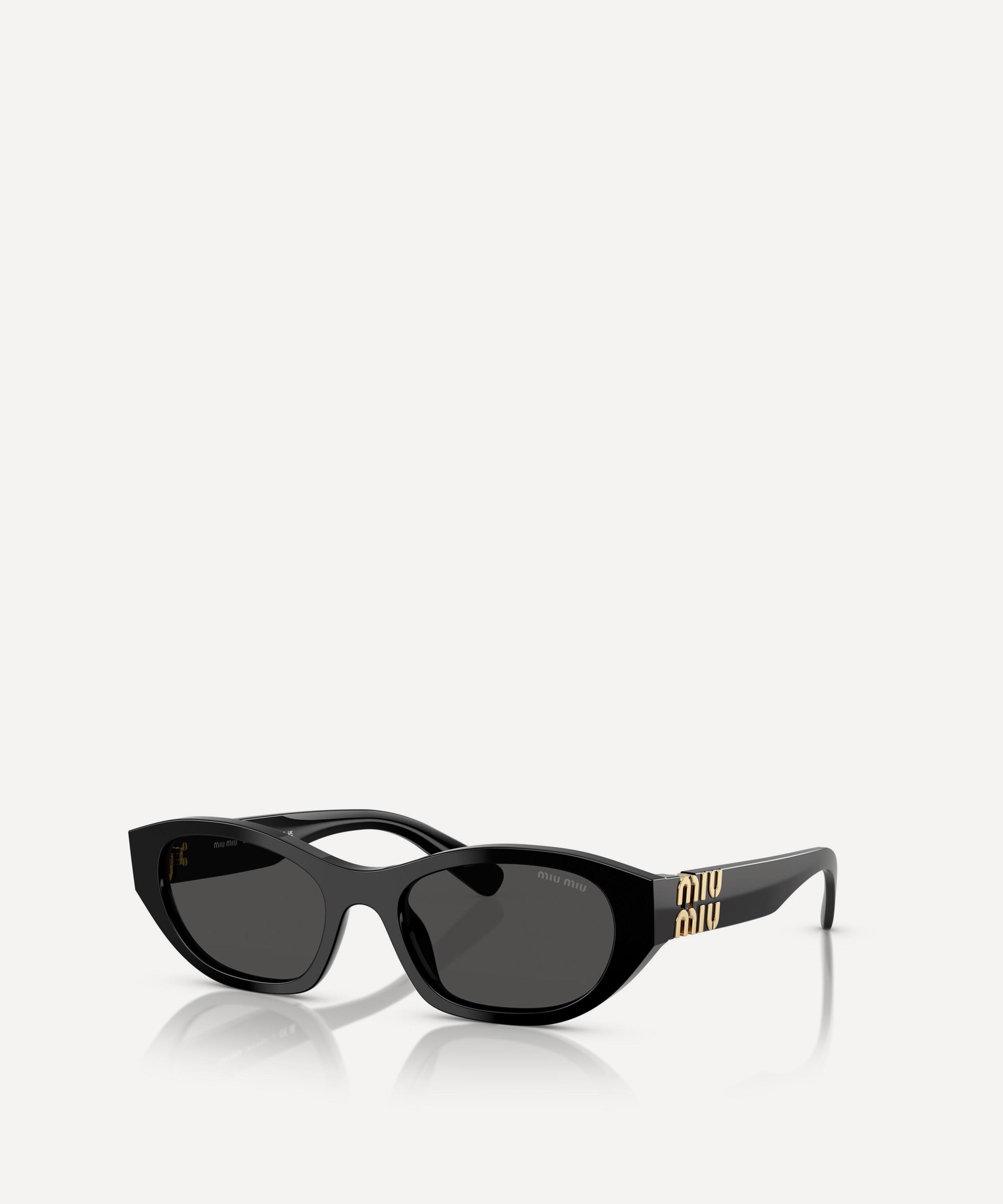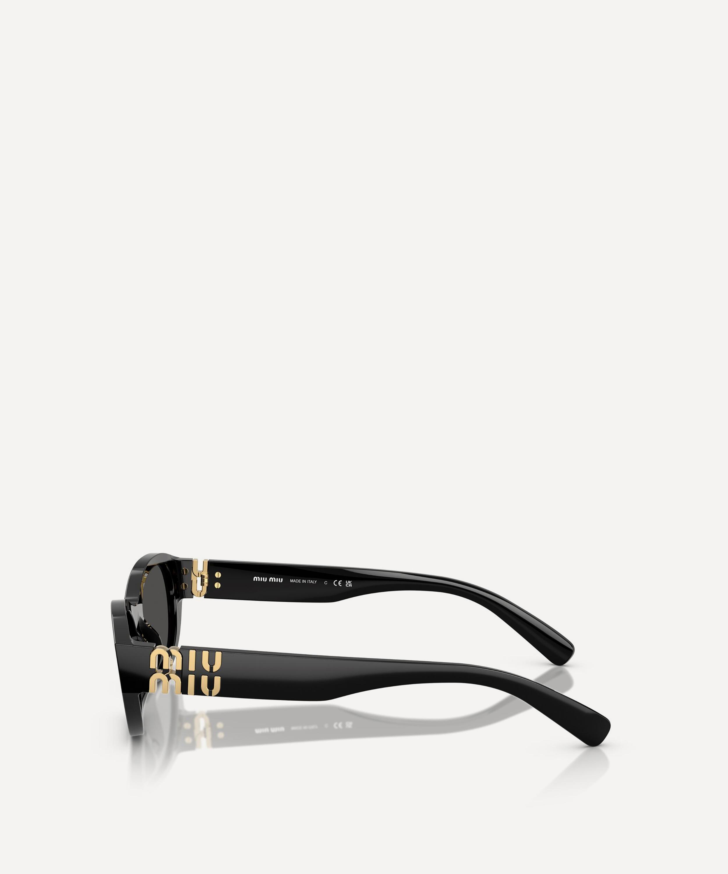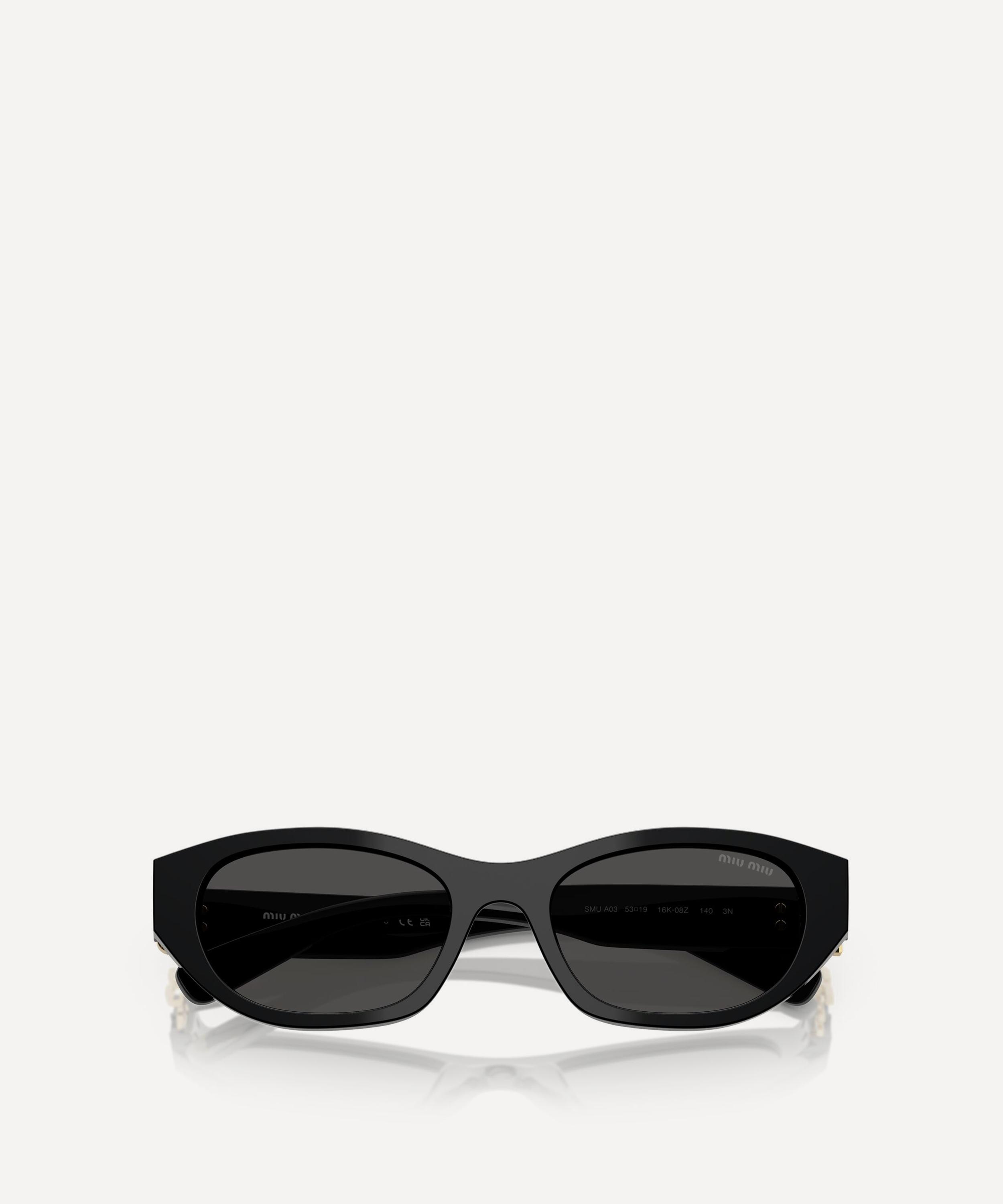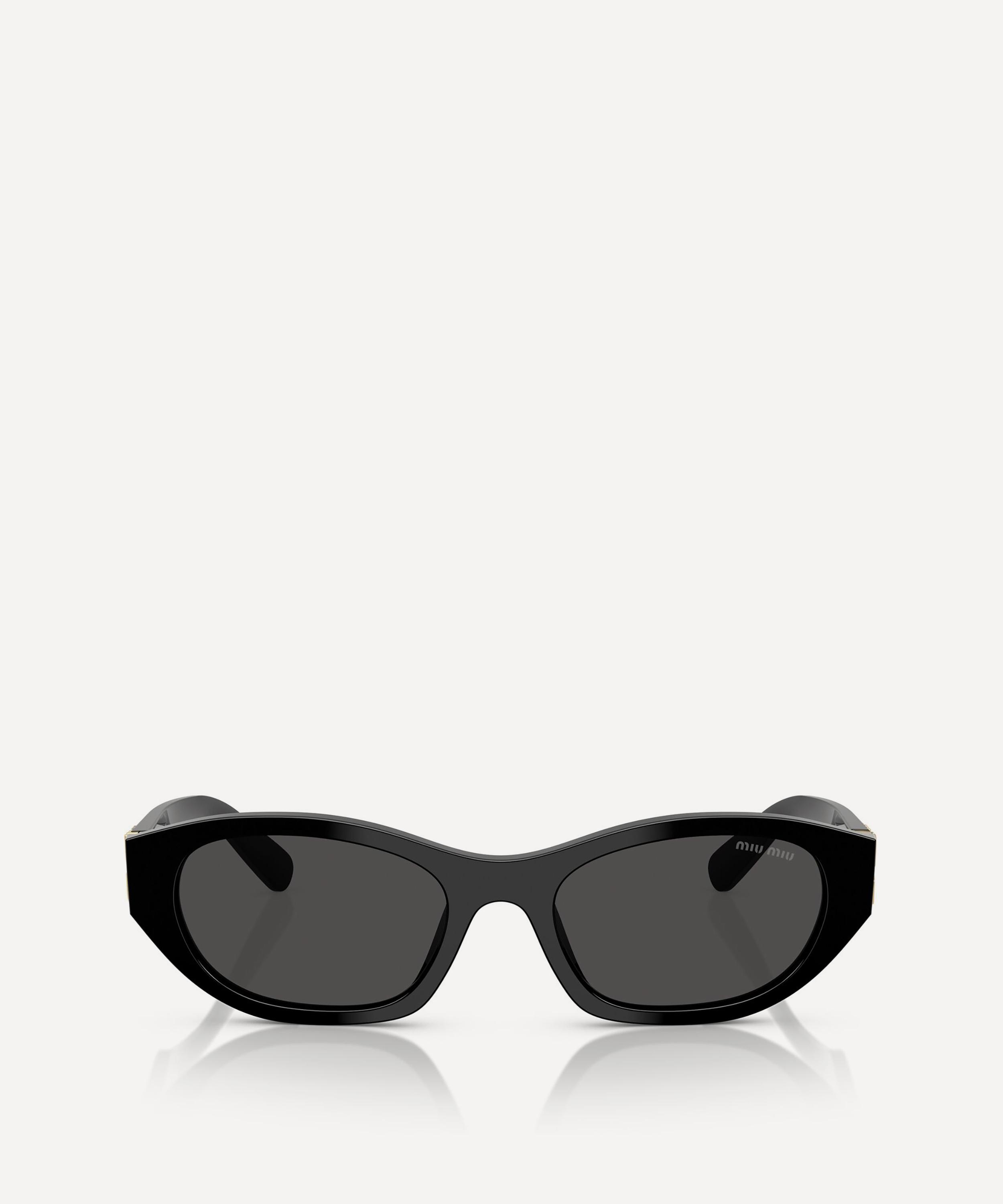 Heighten the impact of any attire with these angular sunglasses from Miu Miu. Expertly crafted from black acetate to create a statement pair that instantly draws the eye, these cat-eye-inspired sunnies are fitted with a comfortable saddle nose bridge and grey-tinted lenses to shade and protect your eyes from UV light. Complete with the signature branding at the temples, they make for an ultra-chic finish to your curated looks.