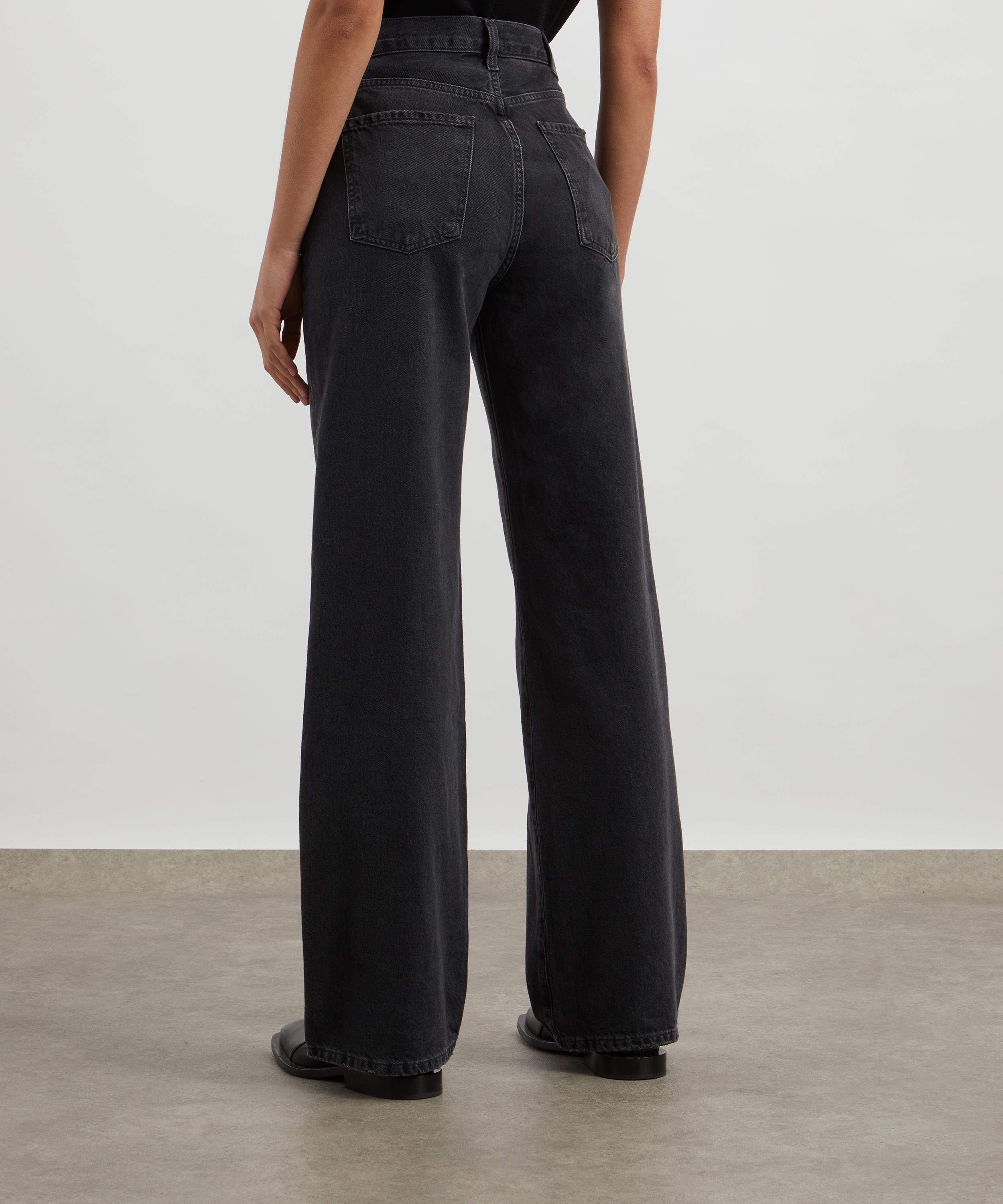 Crafted from midweight non-stretch cotton, these trouser-inspired silhouettes sit high on the waist, offering a flattering, ultra-relaxed wide-leg fit. Washed in a rich, saturated black hue, they’re the ultimate go-with-anything style, perfect for pairing with both casual and elevated pieces.