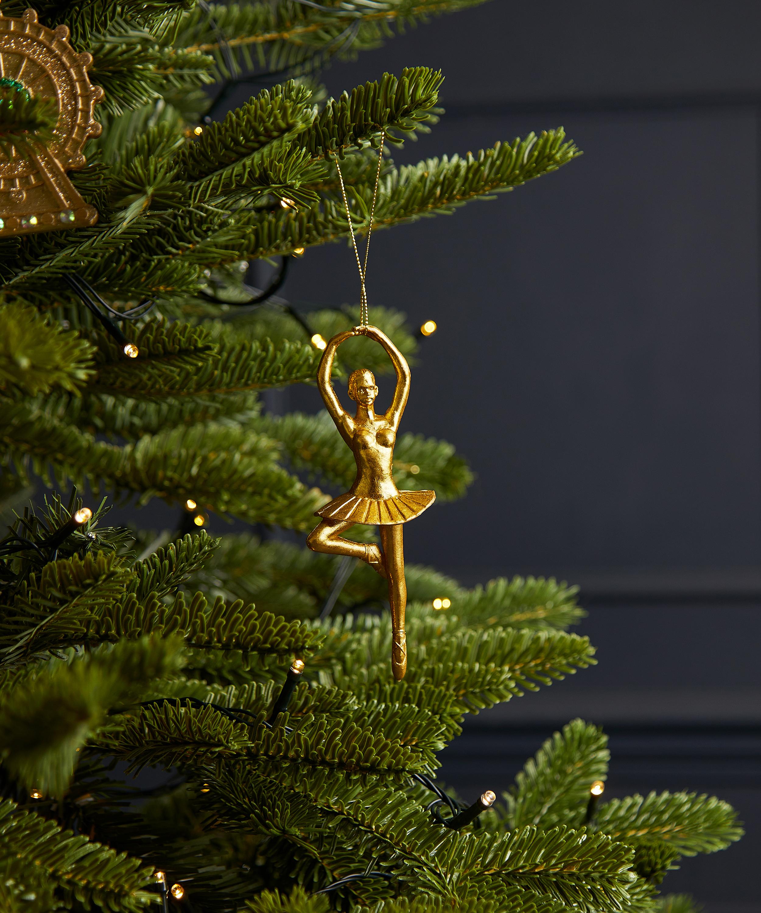 Add a flutter of grace to your evergreen pine this season with the Antique Ballerina ornament, exuding whimsical charm with a touch of opulence through its glittering gold details.