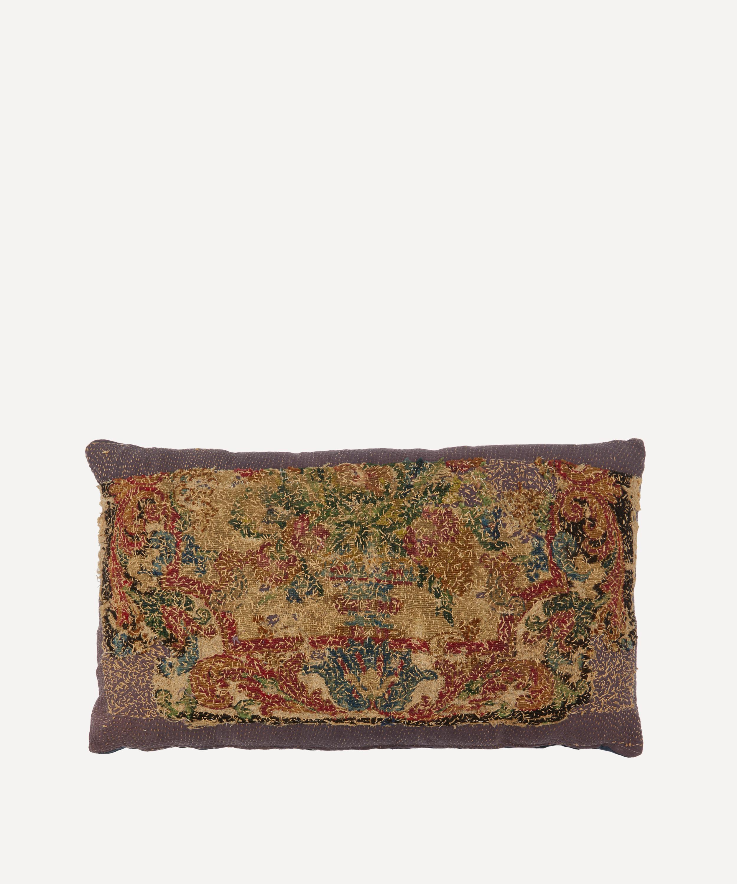 Meticulously crafted from 17th century French woollen needlepoint backed onto 19th century damask linen, this cushion is one of a kind – presenting the brand’s trademark for repurposing vintage textiles to infuse pieces with an artisanal history while minimising their environmental footprint. Style on soft furnishings to add a unique accent to artful interiors.
