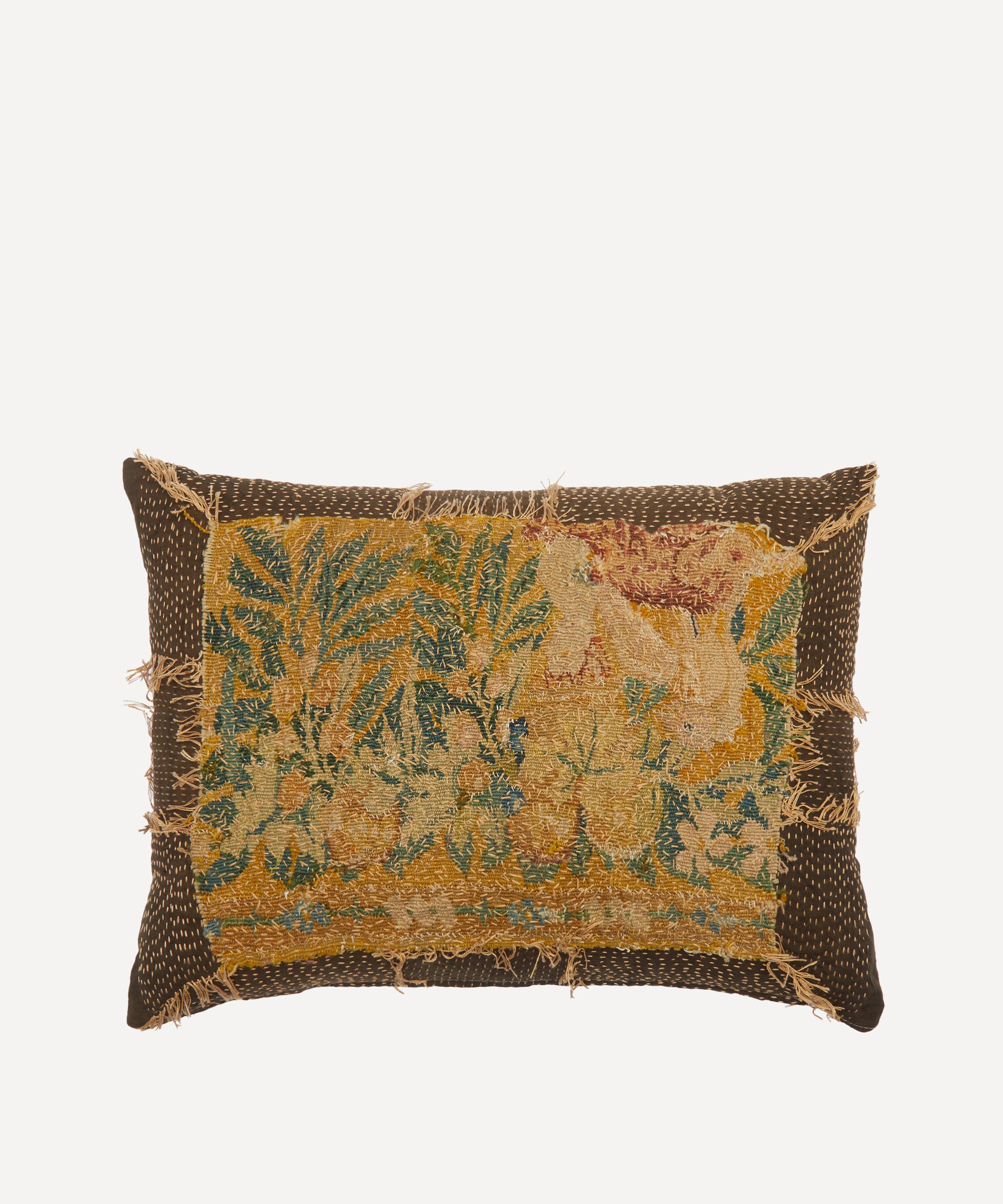 Meticulously crafted from 17th century Flemish tapestry hand stitched on 19th century hemp linen, this cushion is one of a kind – presenting the brand’s trademark for repurposing vintage textiles to infuse pieces with an artisanal history while minimising their environmental footprint. Style on soft furnishings to add a unique accent to artful interiors.