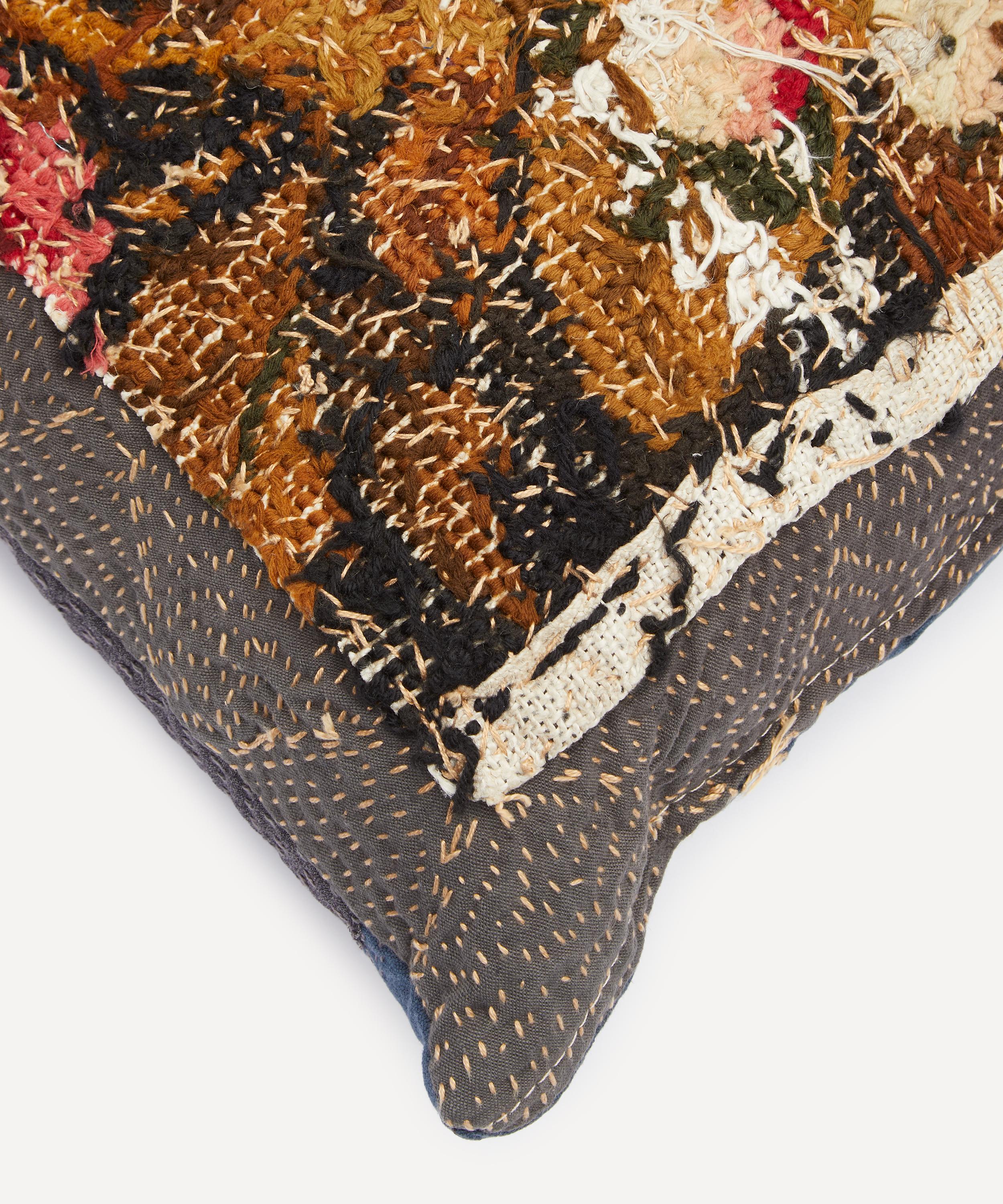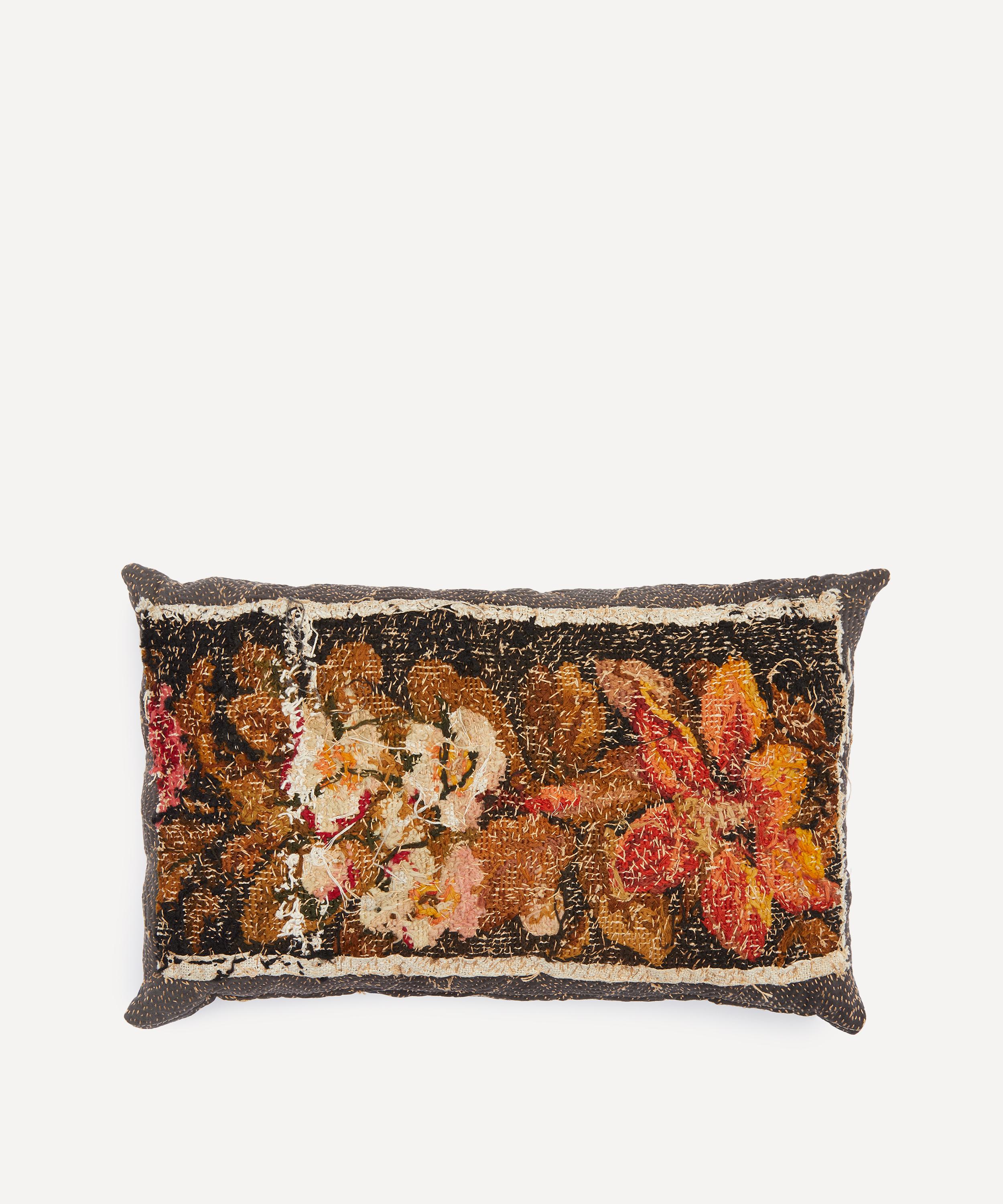 Meticulously crafted from 19th century woollen needlepoint backed onto 1920s linen, this cushion is one of a kind – presenting the brand’s trademark for repurposing vintage textiles to infuse pieces with an artisanal history while minimising their environmental footprint. Style on soft furnishings to add a unique accent to artful interiors.