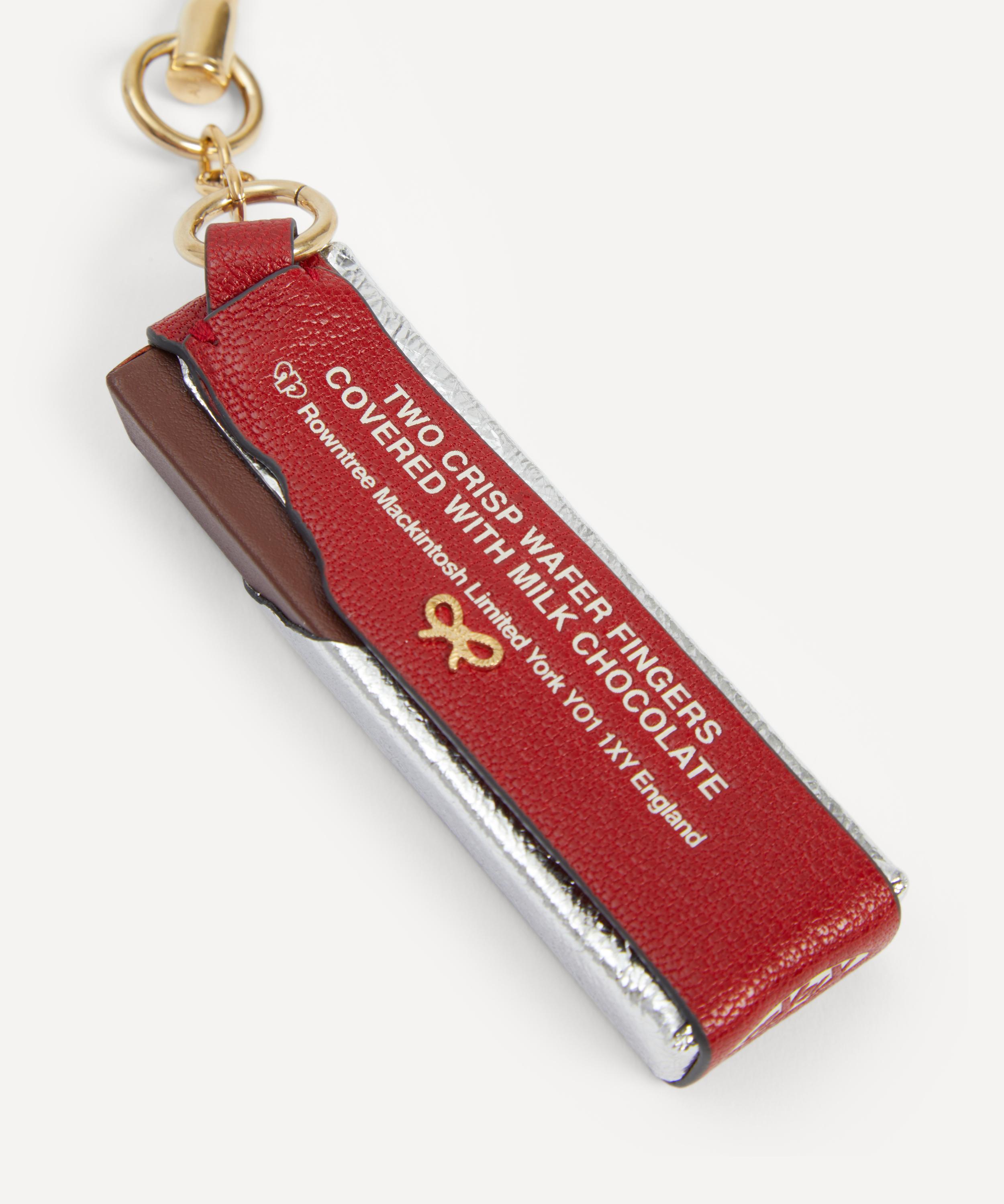 Crafted from glossy capra leather to look like a torn open packet of the chocolate wafers, this charm is finished with foiled appliqué and embossed detailing – complete with a gold-tone clasp reflecting the brand’s skill for fun, functional accessories.About Anya Hindmarch