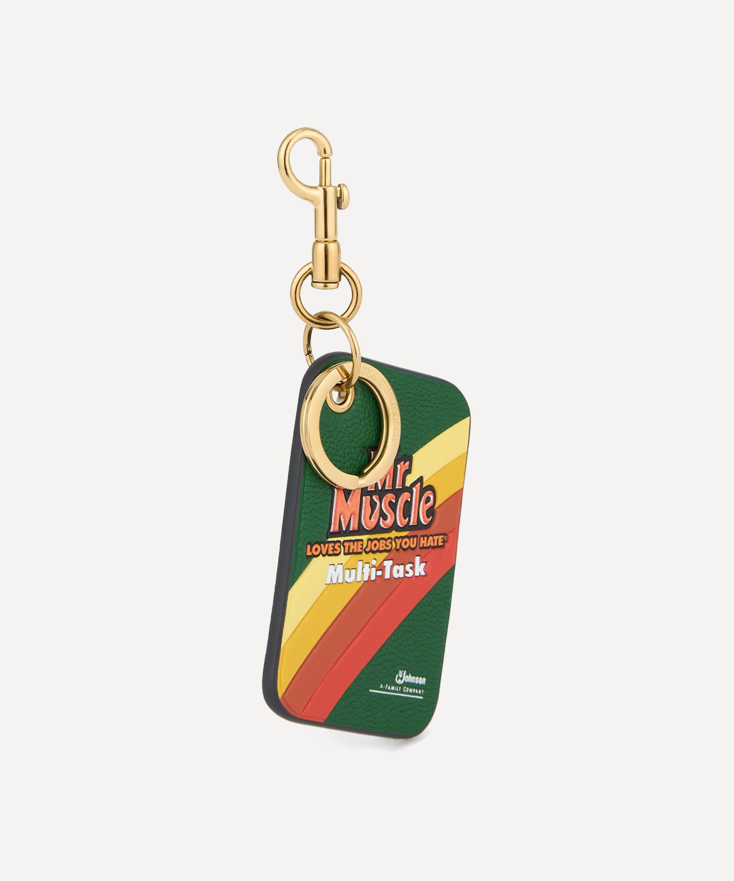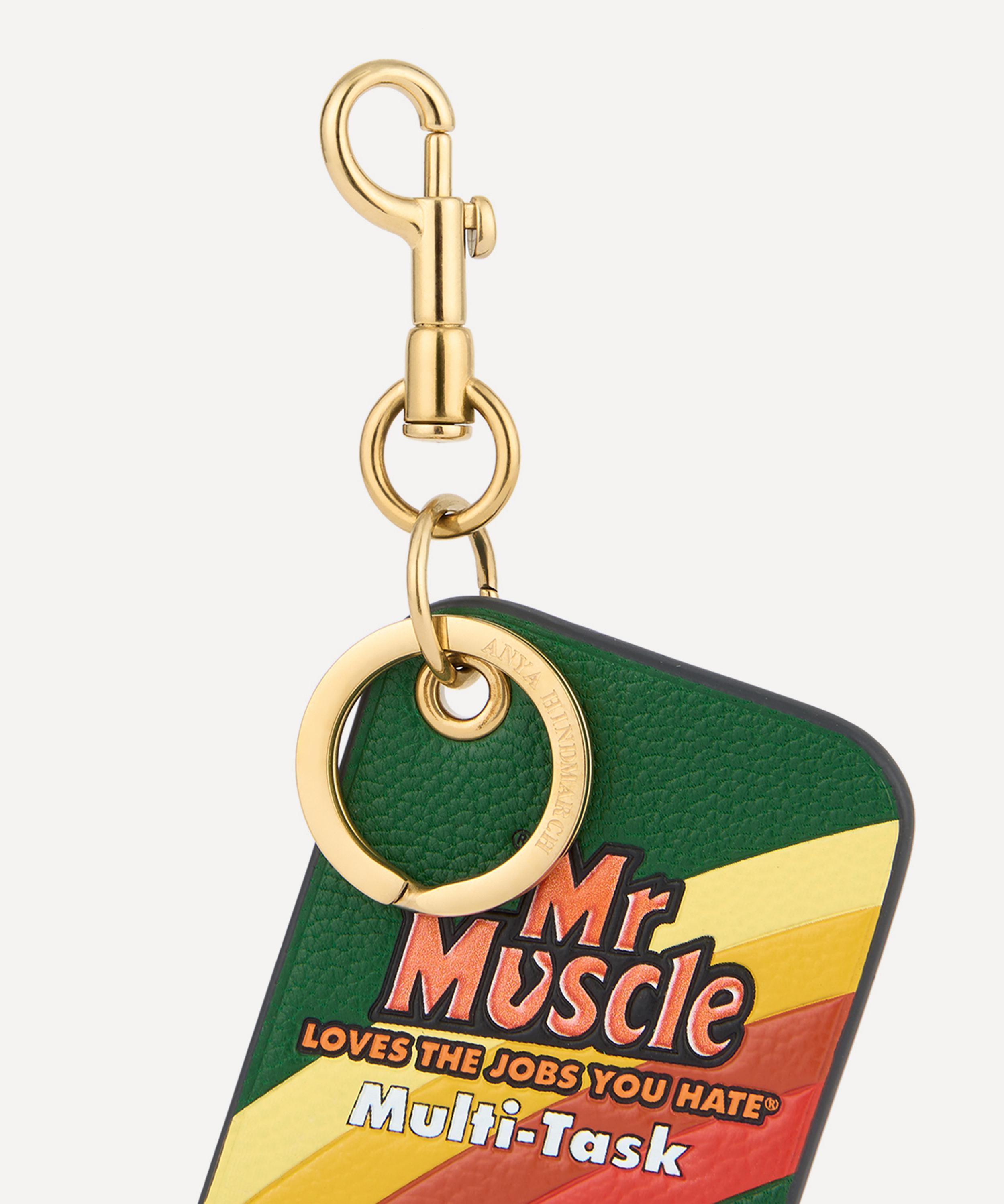 Crafted from textured leather and adorned with the Mr Muscle logo, this charm is finished with foiled appliqué and meticulous detailing – complete with a gold-tone clasp and keyring reflecting the brand’s skill for fun, functional accessories.About Anya Hindmarch