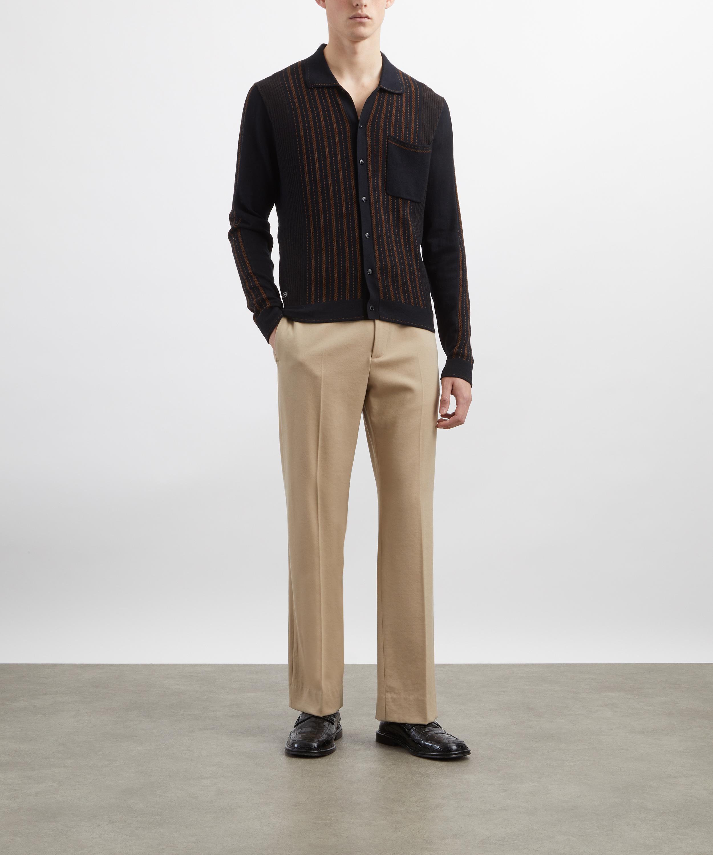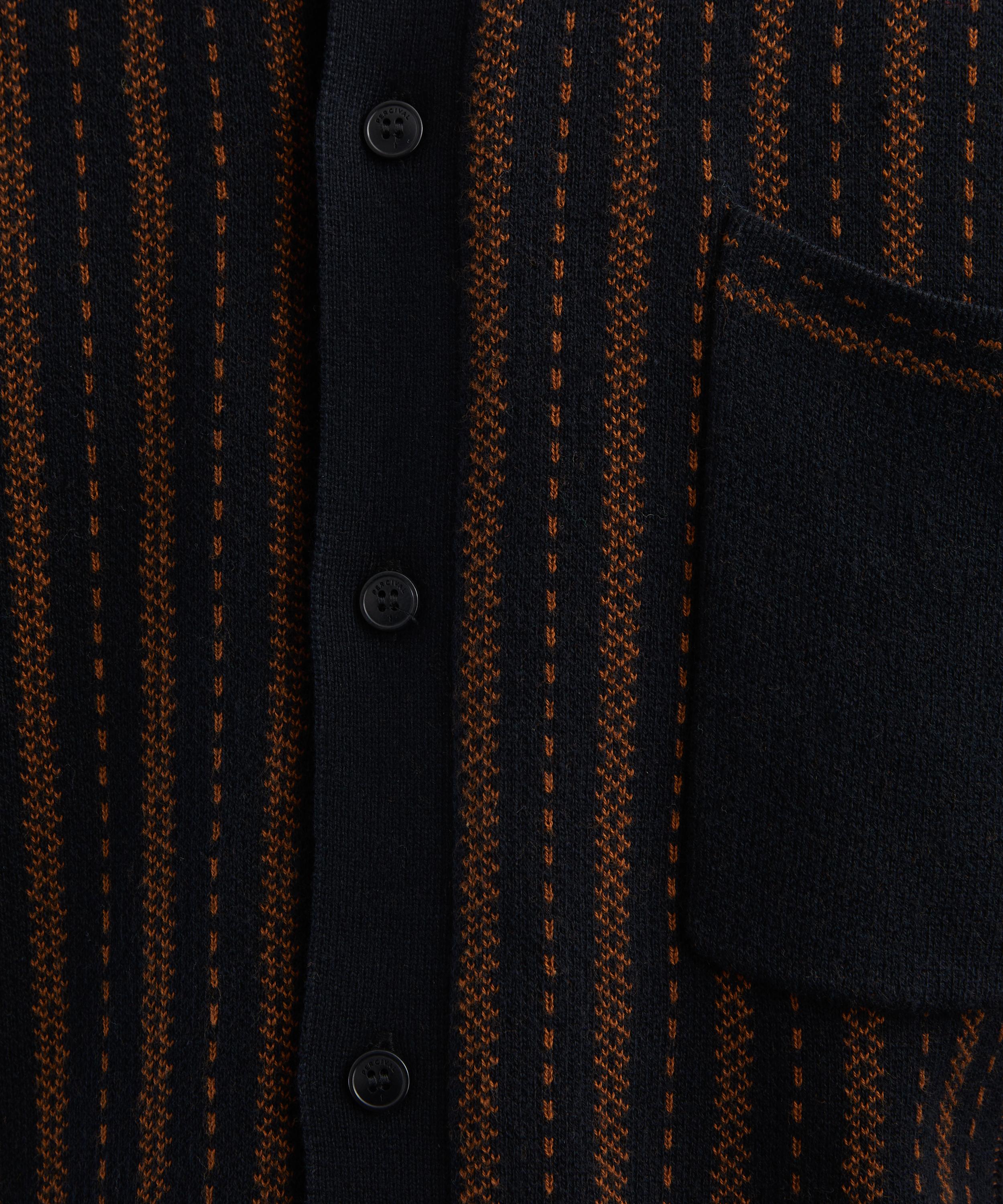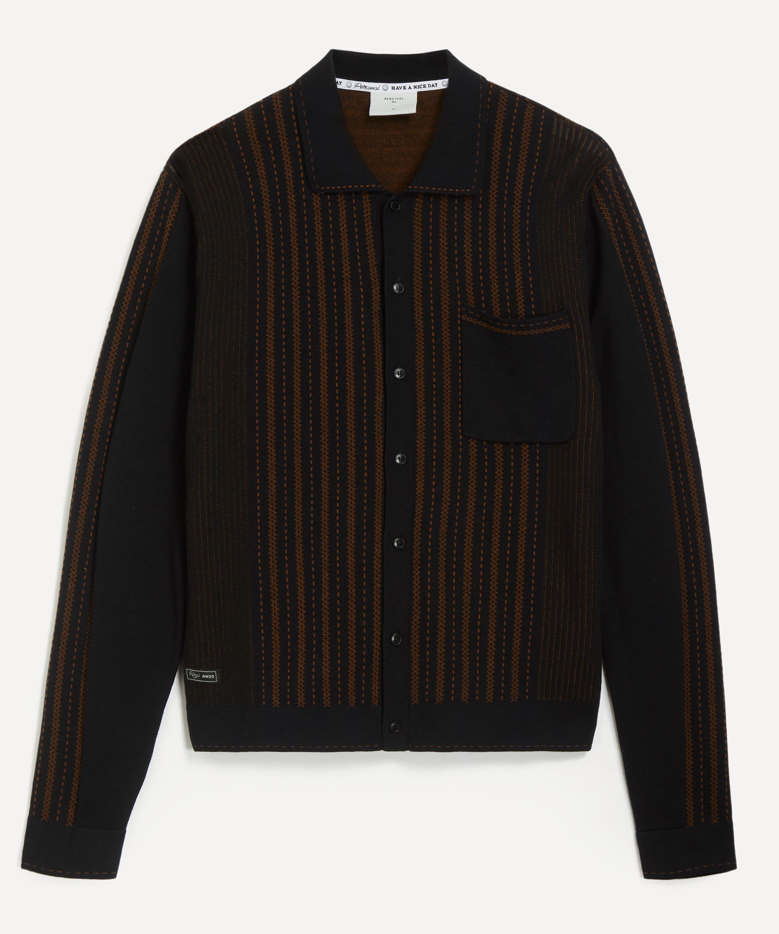 Knitted from cotton yarn with all-over intricate brown stitching, this versatile shirt features Percival’s signature relaxed fit, long cuffed sleeves, and a structured collar. A button front placket makes it perfect wearing open over a plain crewneck t-shirt, or for buttoning-up on cooler days.