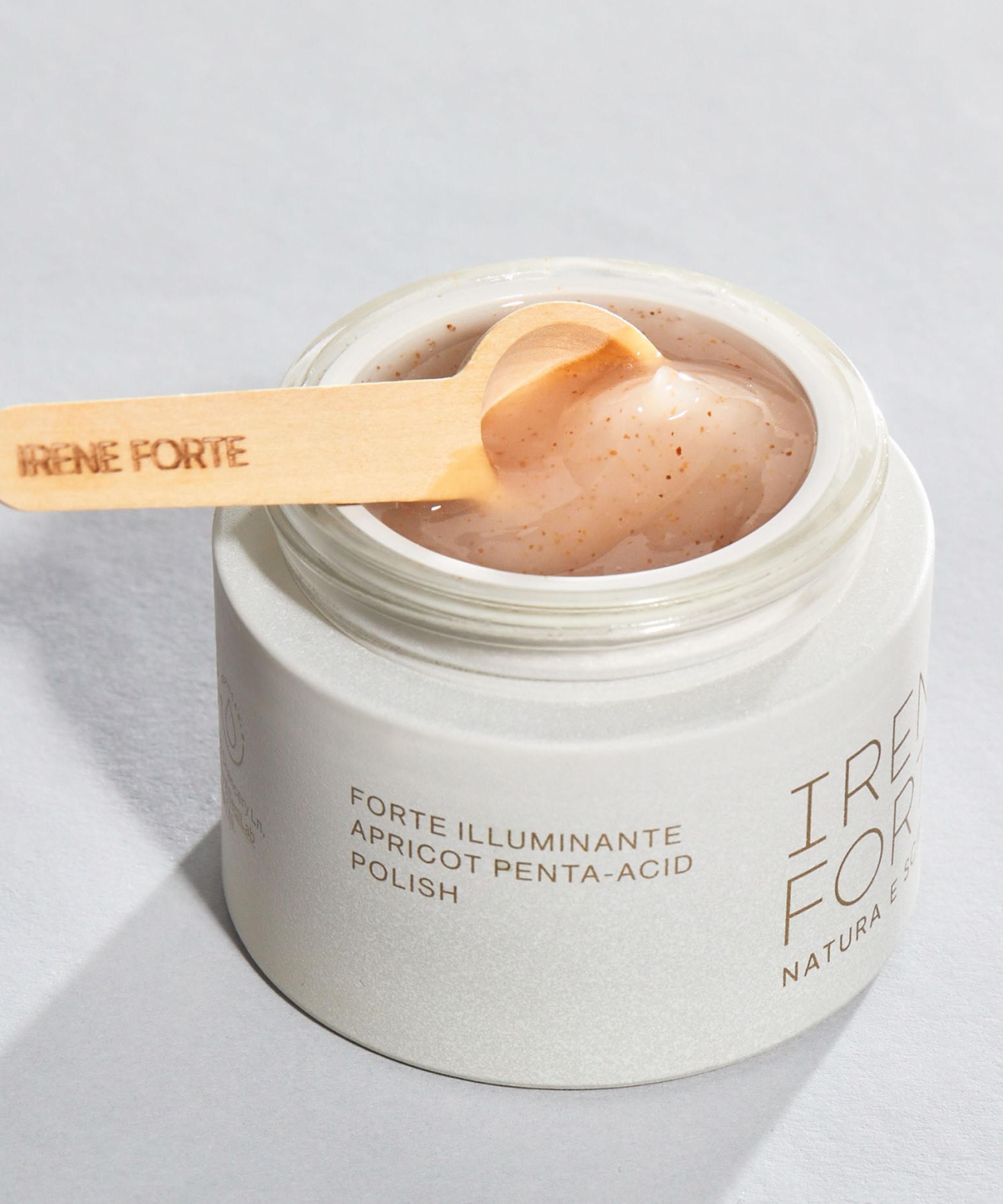 Irene Forte Skincare achieves outstanding results with the gentlest ingredients, selected for their time-honoured benefits and grown to traditional standards on Forte’s farm in sun-drenched Sicily. This enzymatic treatment is powered by apricot seed powder to effectively remove dead skin cells, while aloe leaf juice hydrates and soothes tired skin. The real magic is performed by an enzymatic Italian plant ferment, which leaves skin purified, smooth and bright. A game-changer for lacklustre complexions.